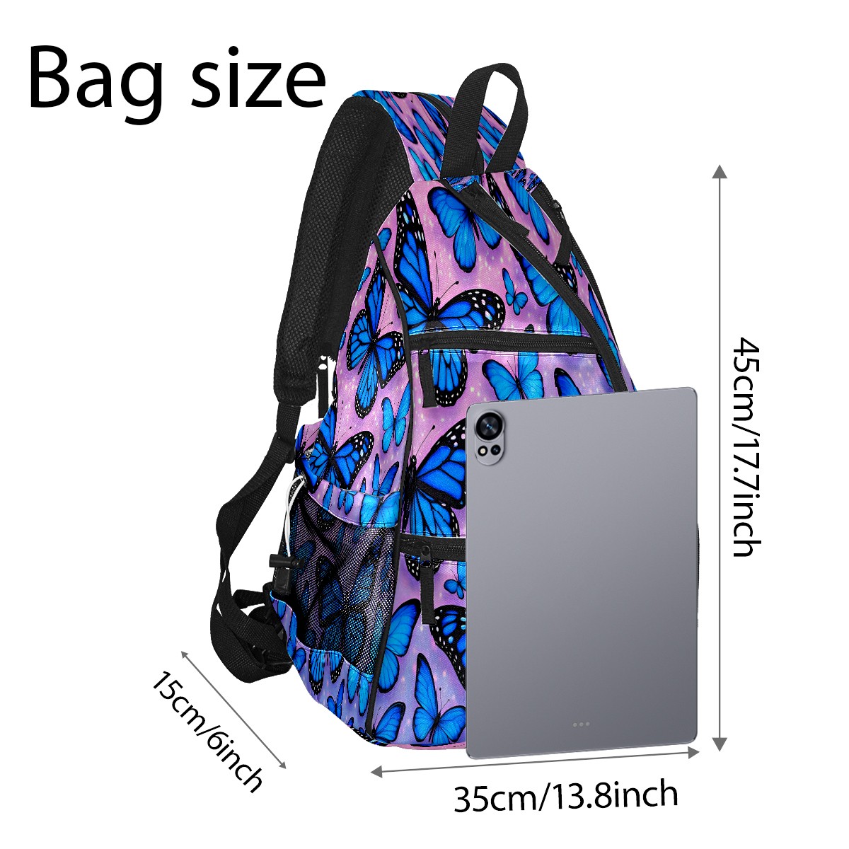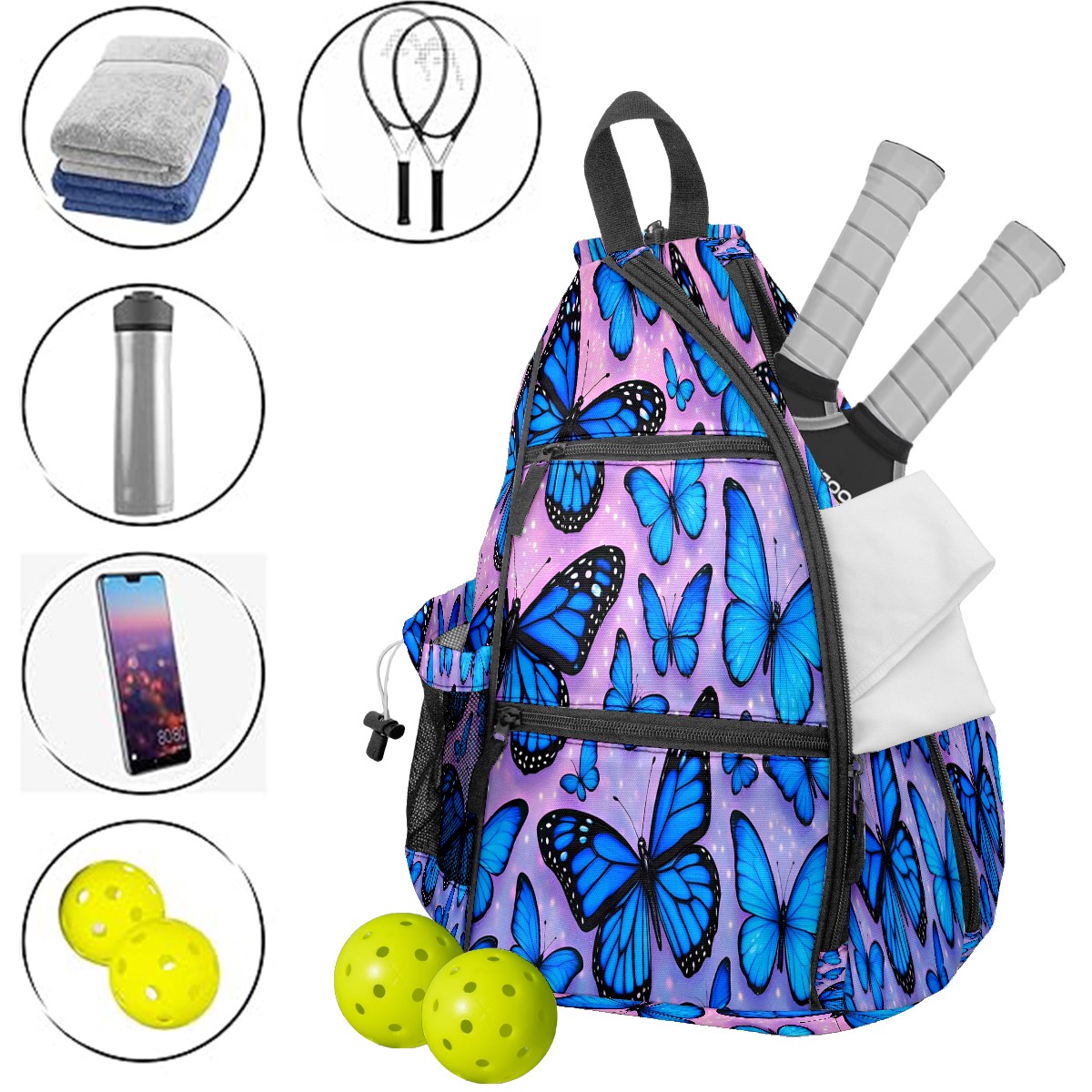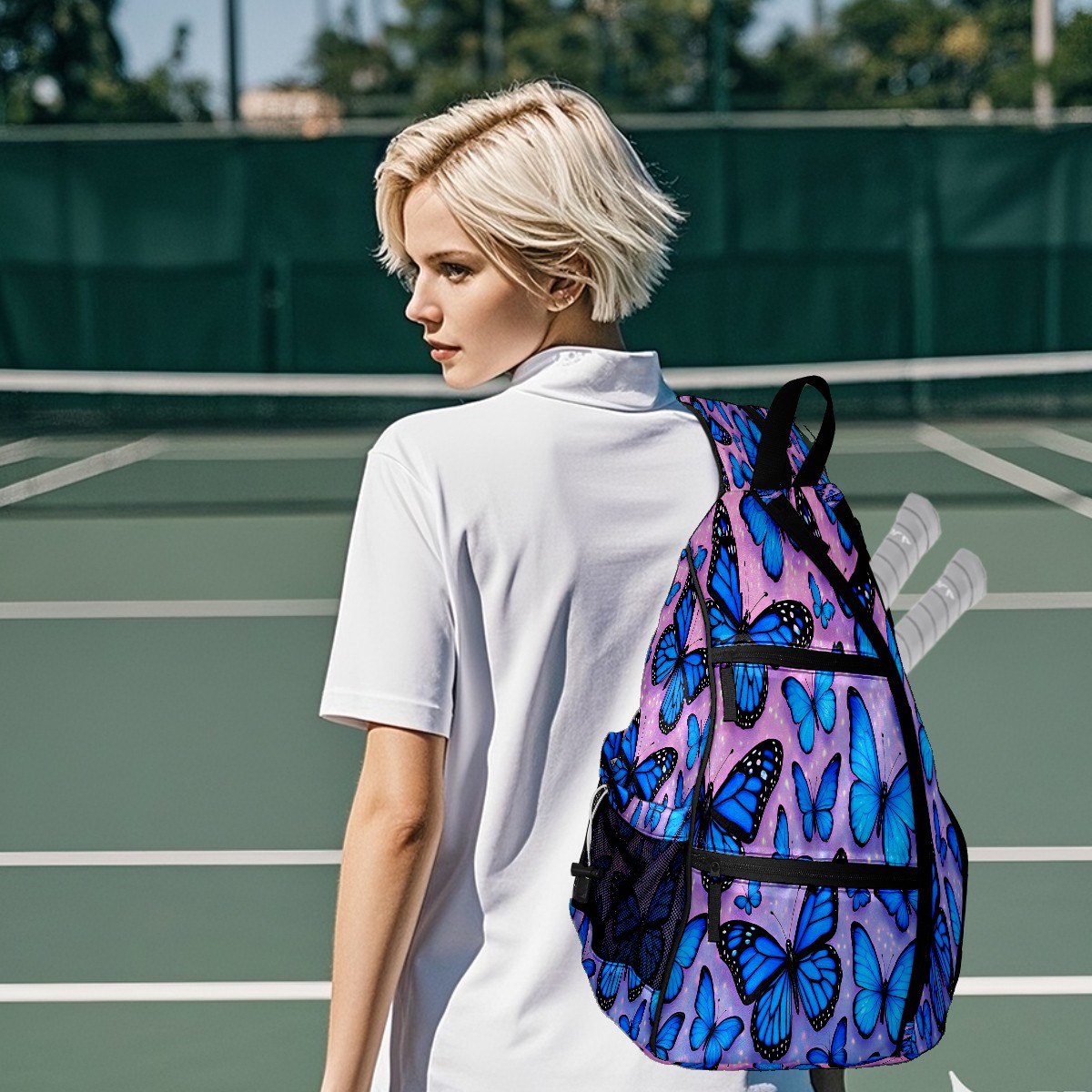 Pickleball Bag with Convertible Straps, Large Capacity Pickleball Backpack for Paddles, Balls & Gear, Ergonomic & Breathable Sports Bag, Blue Butterflies (1) for Men & Women