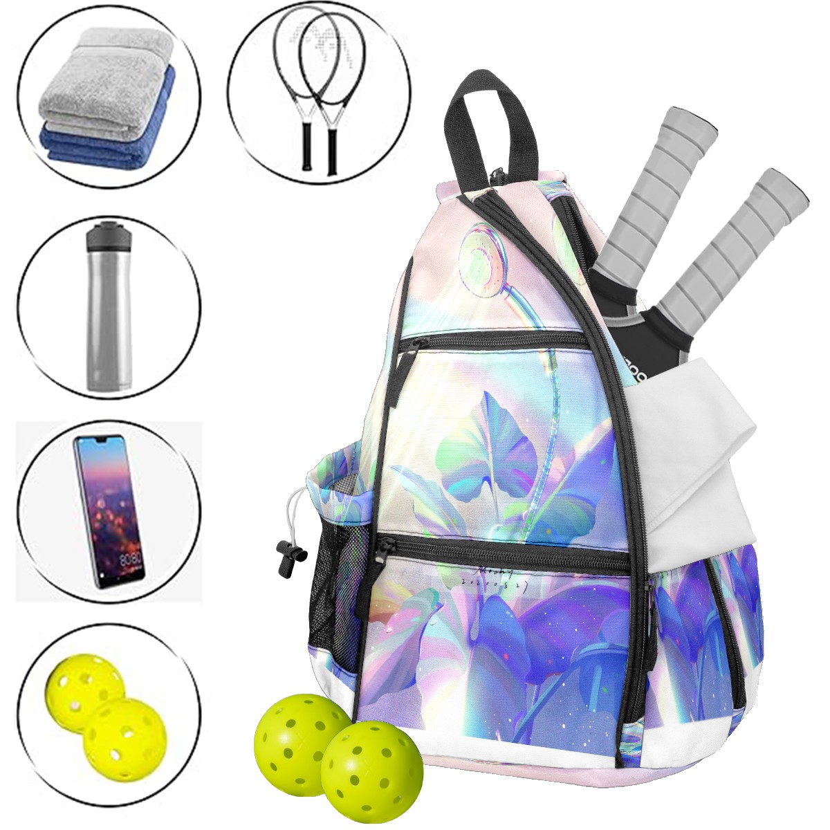 Multifunctional Pickleball Bag,Large Capacity Sports Pickleball Racket Bag, Water Bottle Holder and Fence Hook,Suitable for Both Men Women -Colorful2583