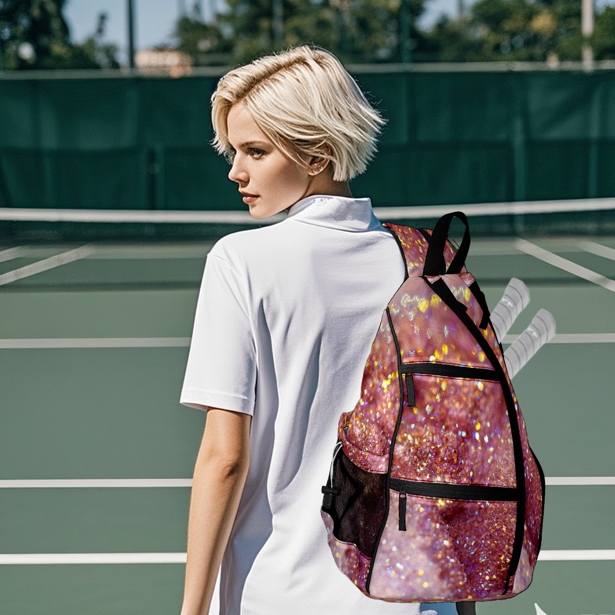 Multifunctional Pickleball Bag,Large Capacity Sports Pickleball Racket Bag, Water Bottle Holder and Fence Hook,Suitable for Both Men Women -Colorful2584