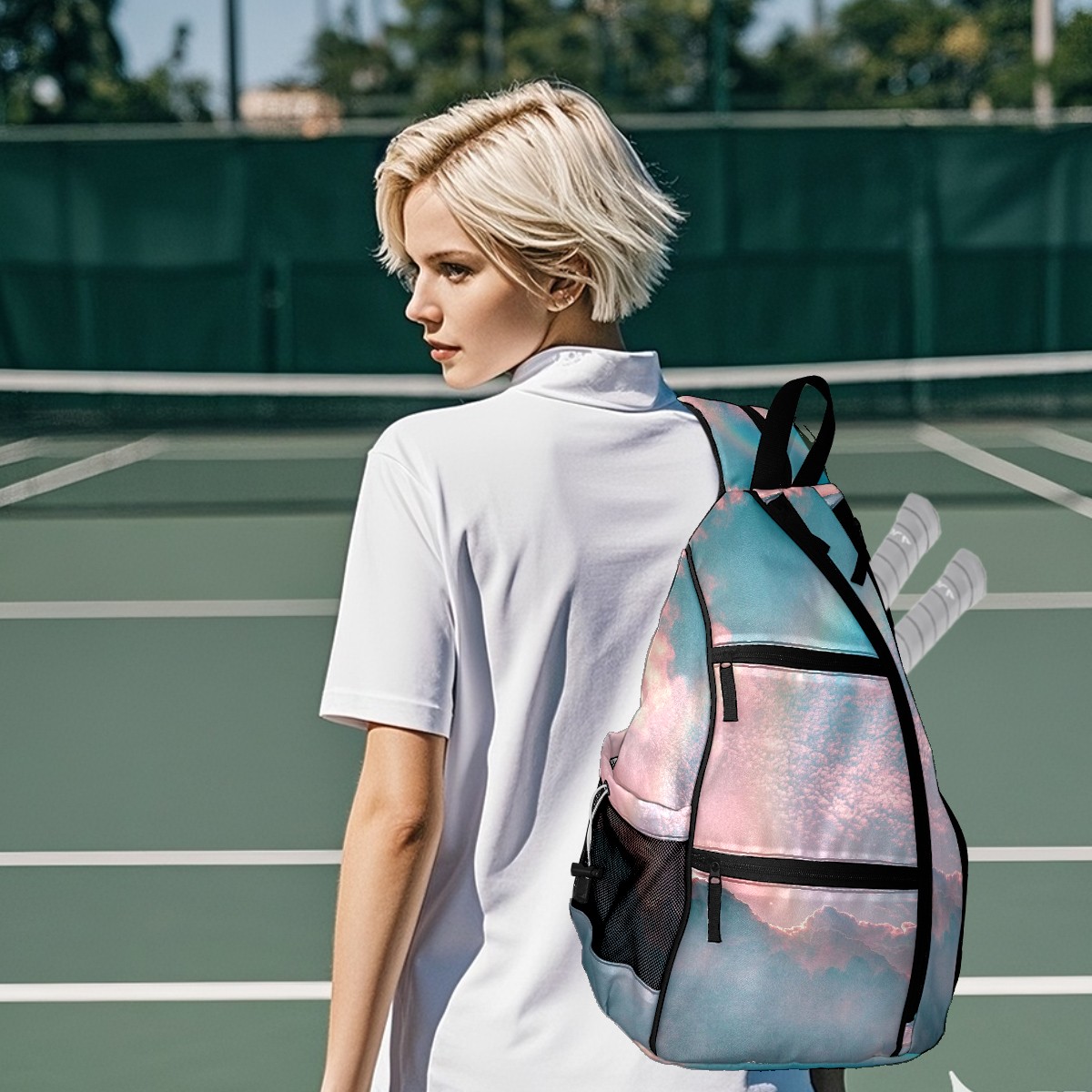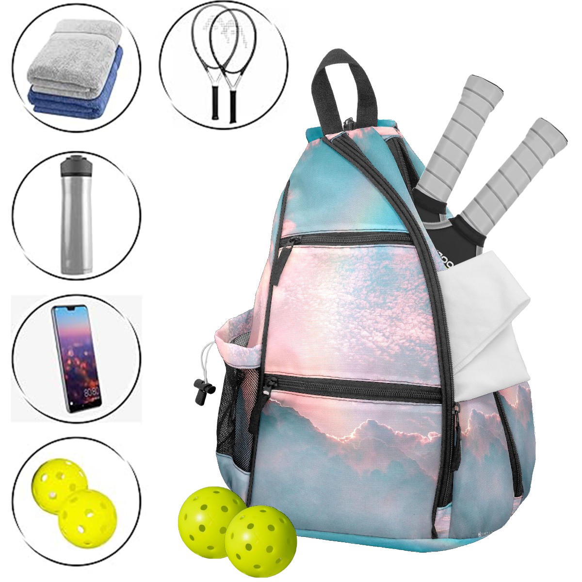 Multifunctional Pickleball Bag,Large Capacity Sports Pickleball Racket Bag, Water Bottle Holder and Fence Hook,Suitable for Both Men Women -Colorful2581