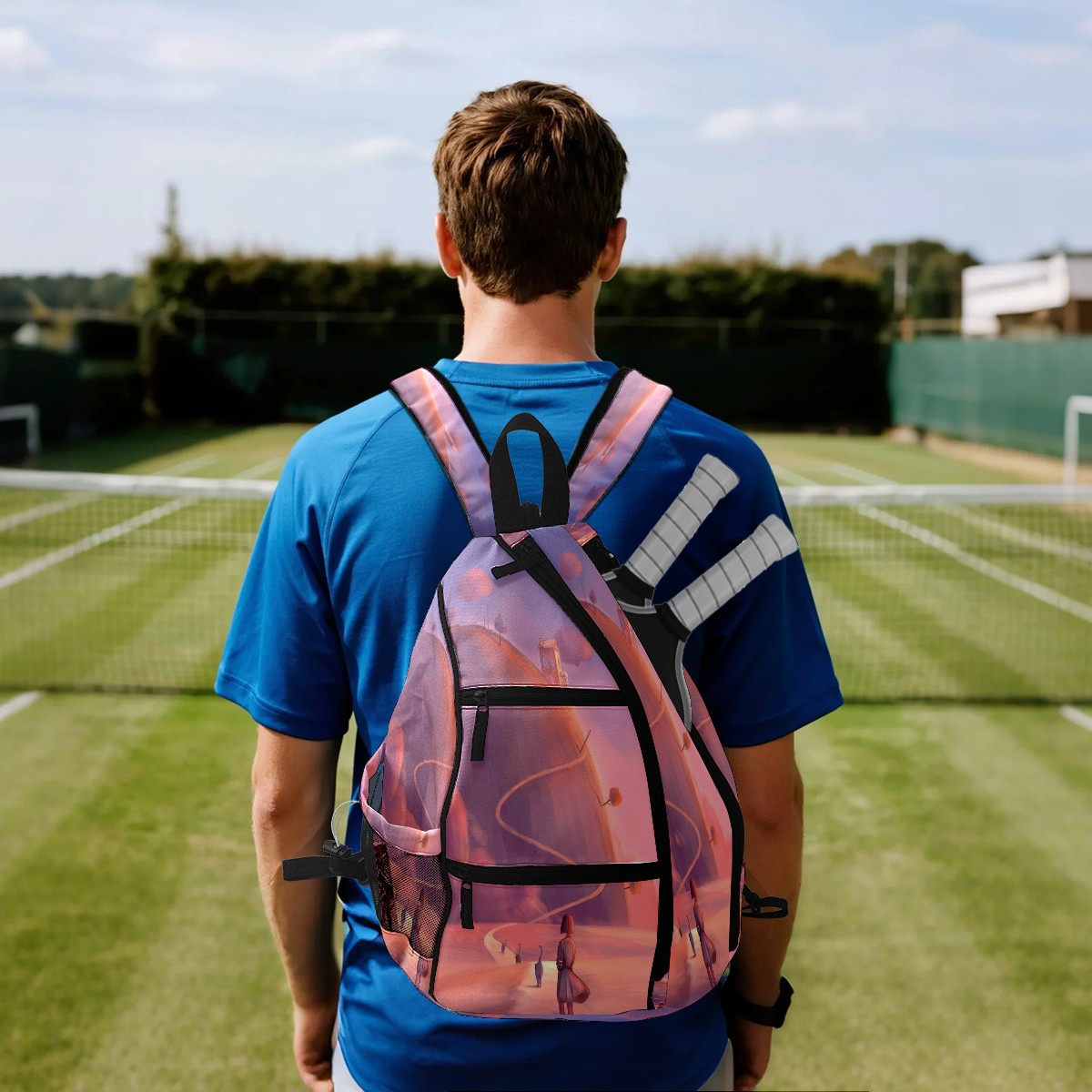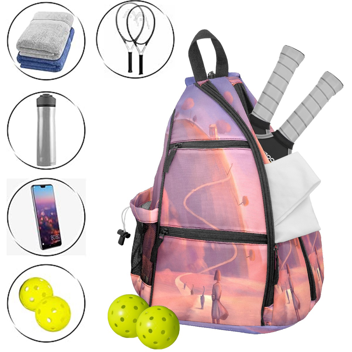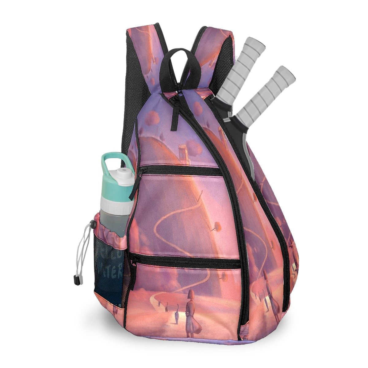 Multifunctional Pickleball Bag,Large Capacity Sports Pickleball Racket Bag, Water Bottle Holder and Fence Hook,Suitable for Both Men Women -Colorful2577