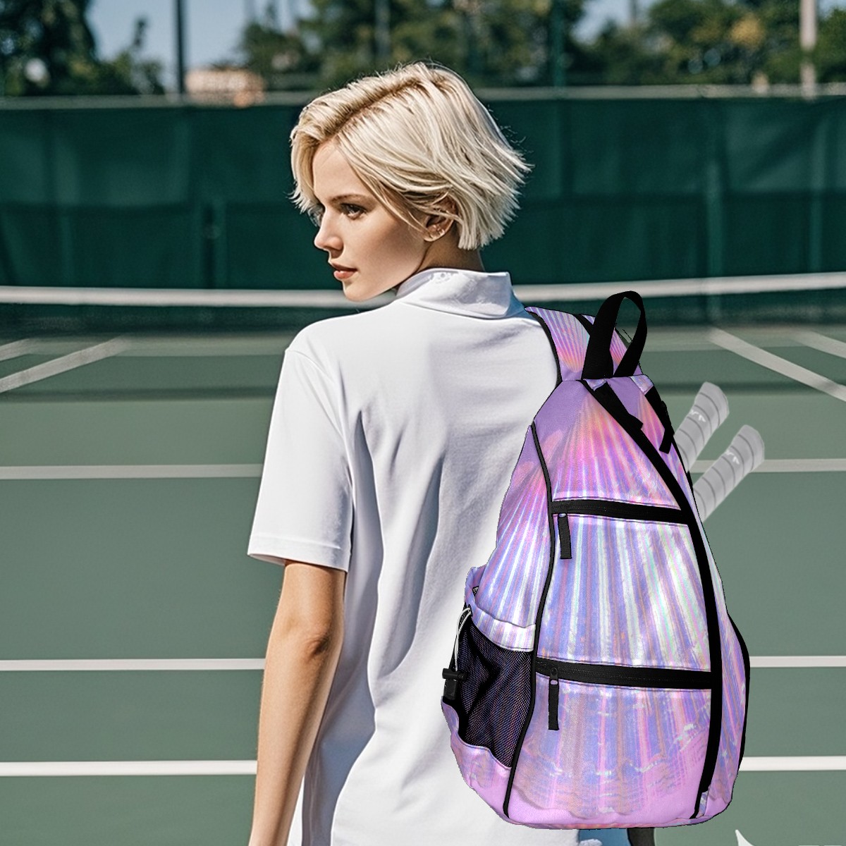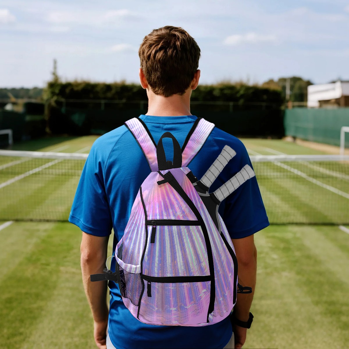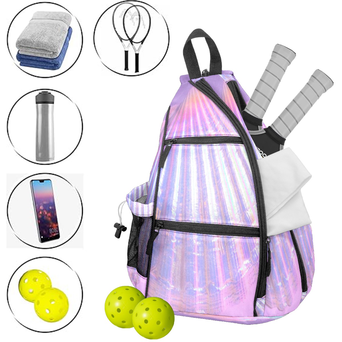 Multifunctional Pickleball Bag,Large Capacity Sports Pickleball Racket Bag, Water Bottle Holder and Fence Hook,Suitable for Both Men Women -Colorful2572