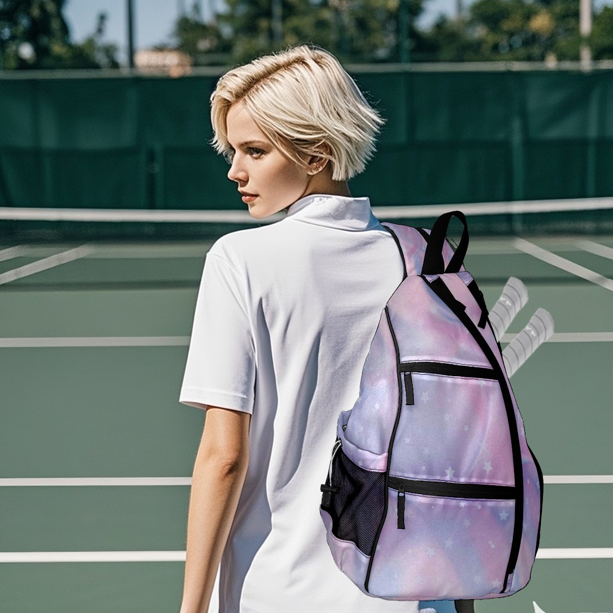 Multifunctional Pickleball Bag,Large Capacity Sports Pickleball Racket Bag, Water Bottle Holder and Fence Hook,Suitable for Both Men Women -Colorful2569