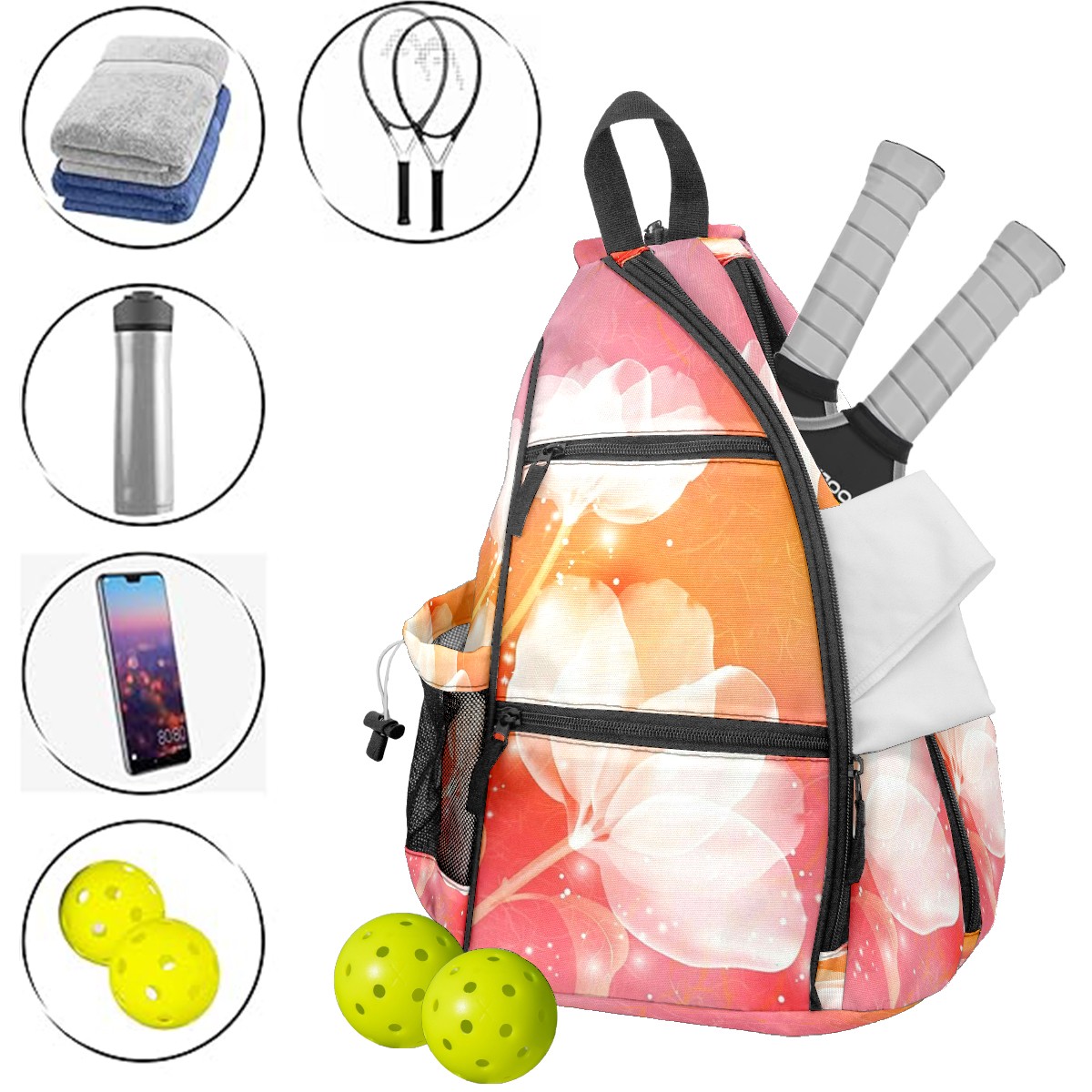 Multifunctional Pickleball Bag,Large Capacity Sports Pickleball Racket Bag, Water Bottle Holder and Fence Hook,Suitable for Both Men Women -Colorful2564