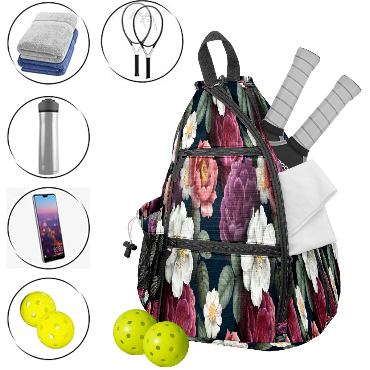 Multifunctional Pickleball Bag,Large Capacity Sports Pickleball Racket Bag, Water Bottle Holder and Fence Hook,Suitable for Both Men Women -Peony小像素