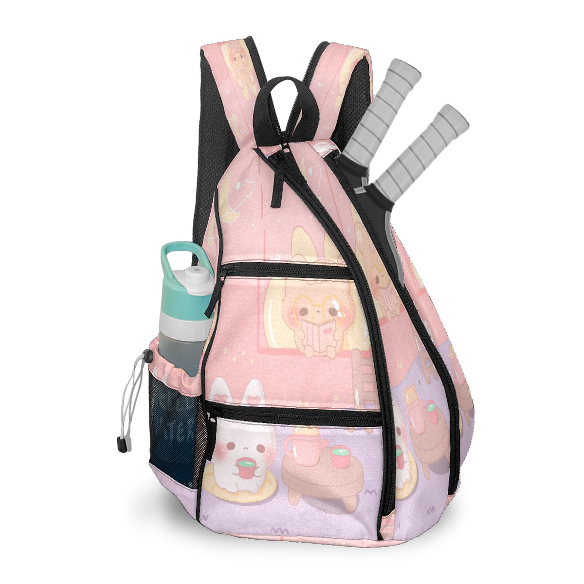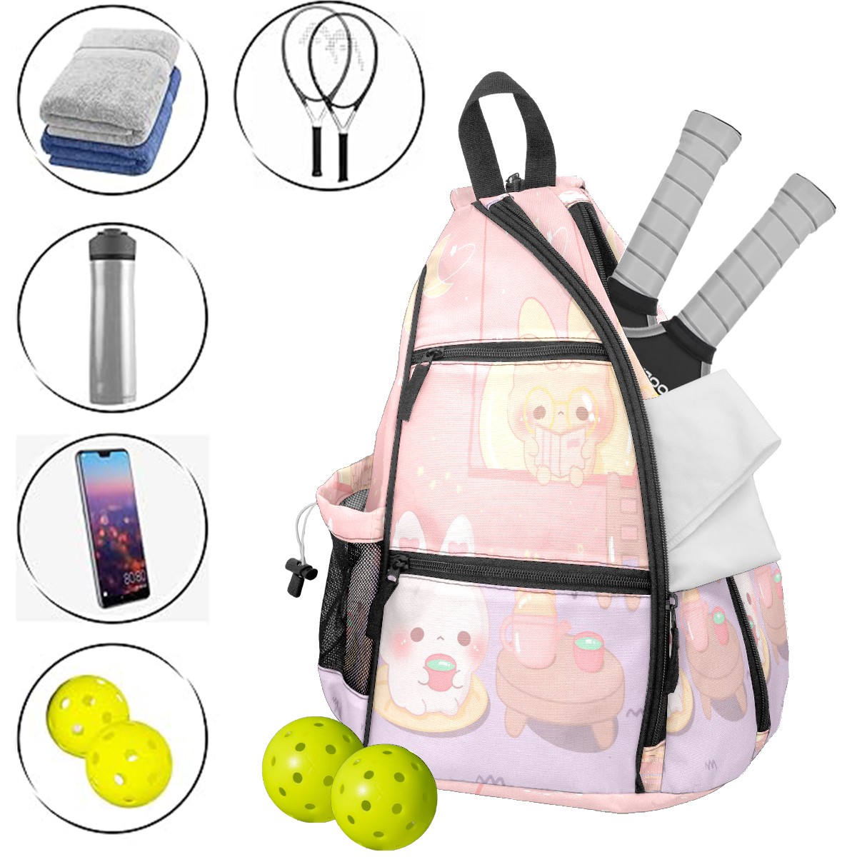 Multifunctional Pickleball Bag,Large Capacity Sports Pickleball Racket Bag, Water Bottle Holder and Fence Hook,Suitable for Both Men Women -Pastel