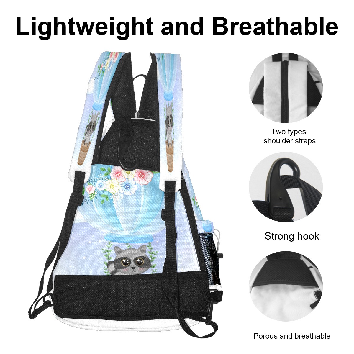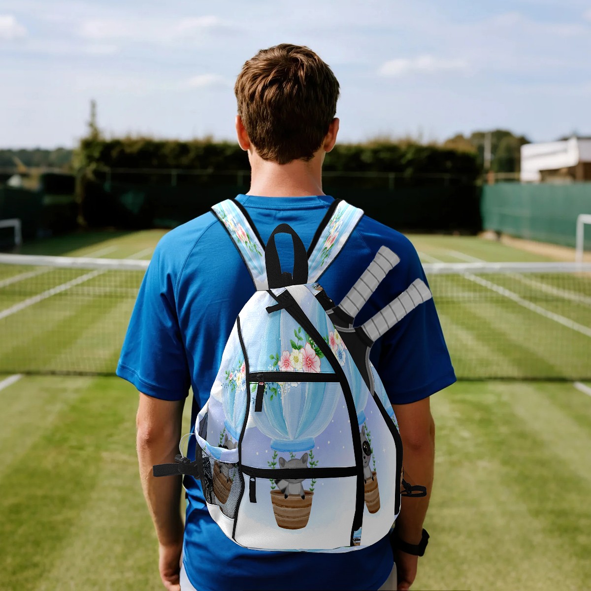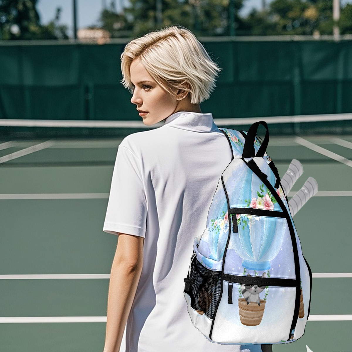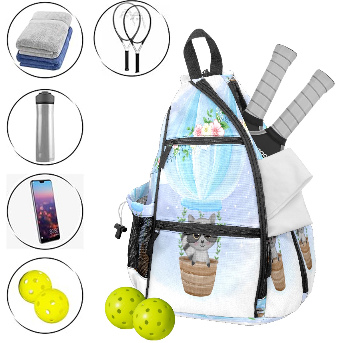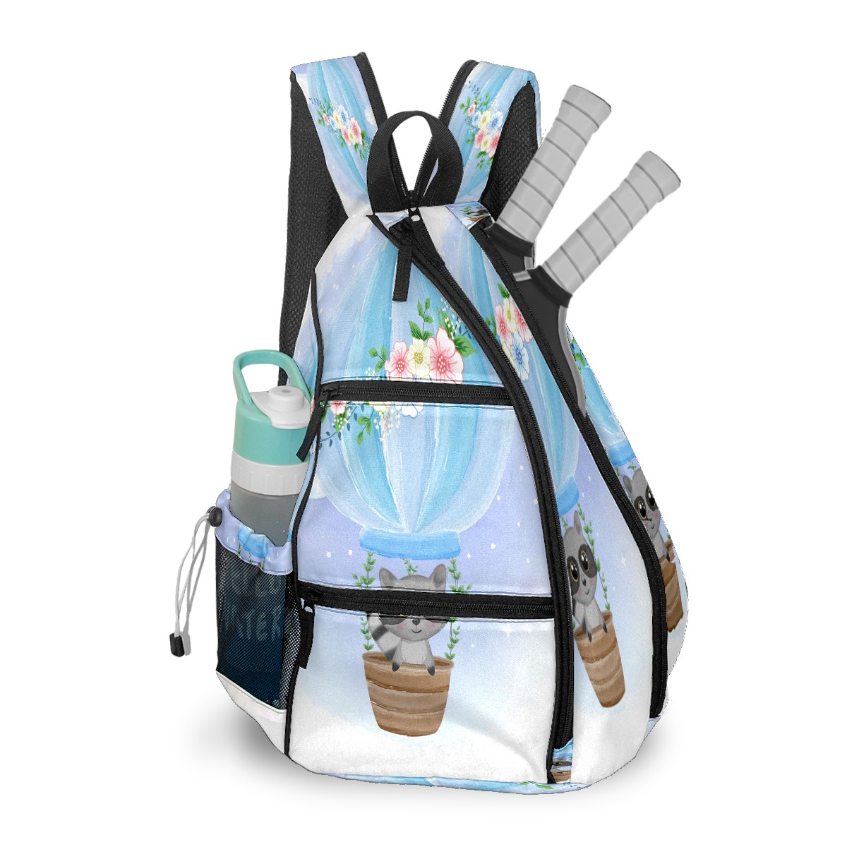 Multifunctional Pickleball Bag,Large Capacity Sports Pickleball Racket Bag, Water Bottle Holder and Fence Hook,Suitable for Both Men Women -Cute Raccoon