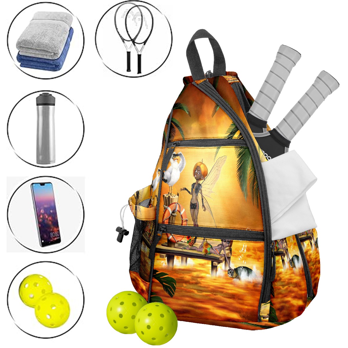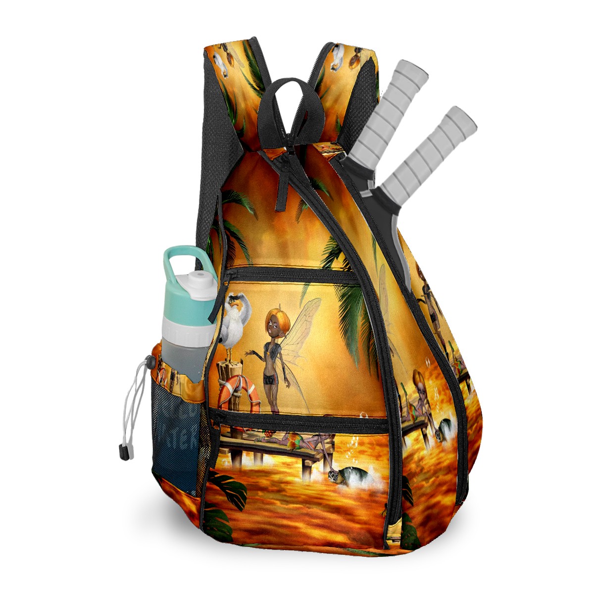Multifunctional Pickleball Bag,Large Capacity Sports Pickleball Racket Bag, Water Bottle Holder and Fence Hook,Suitable for Both Men Women -Cute Little Fairys
