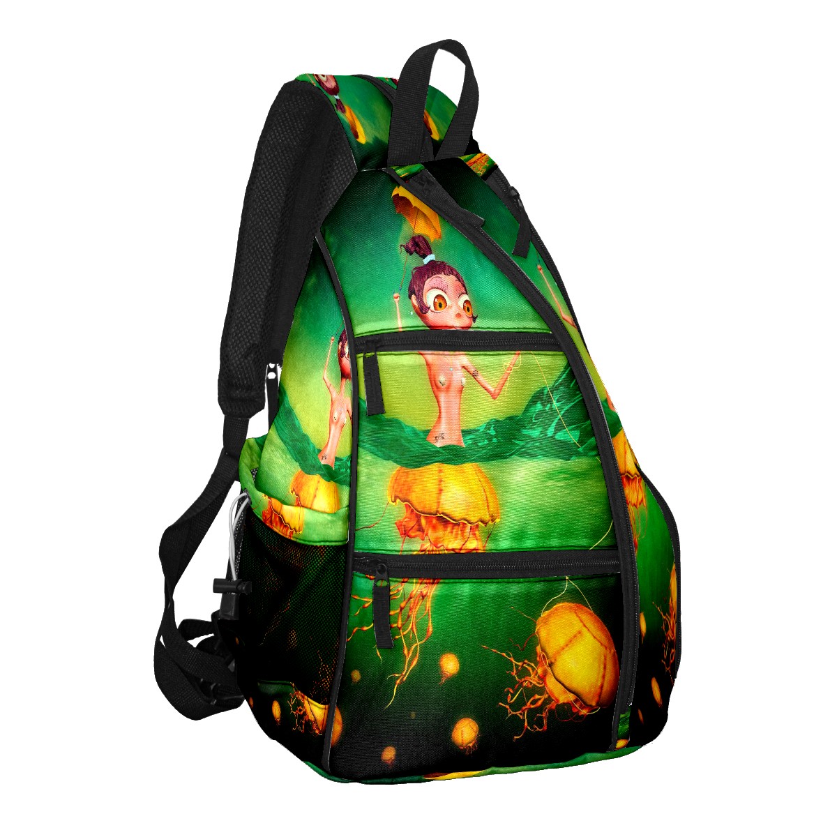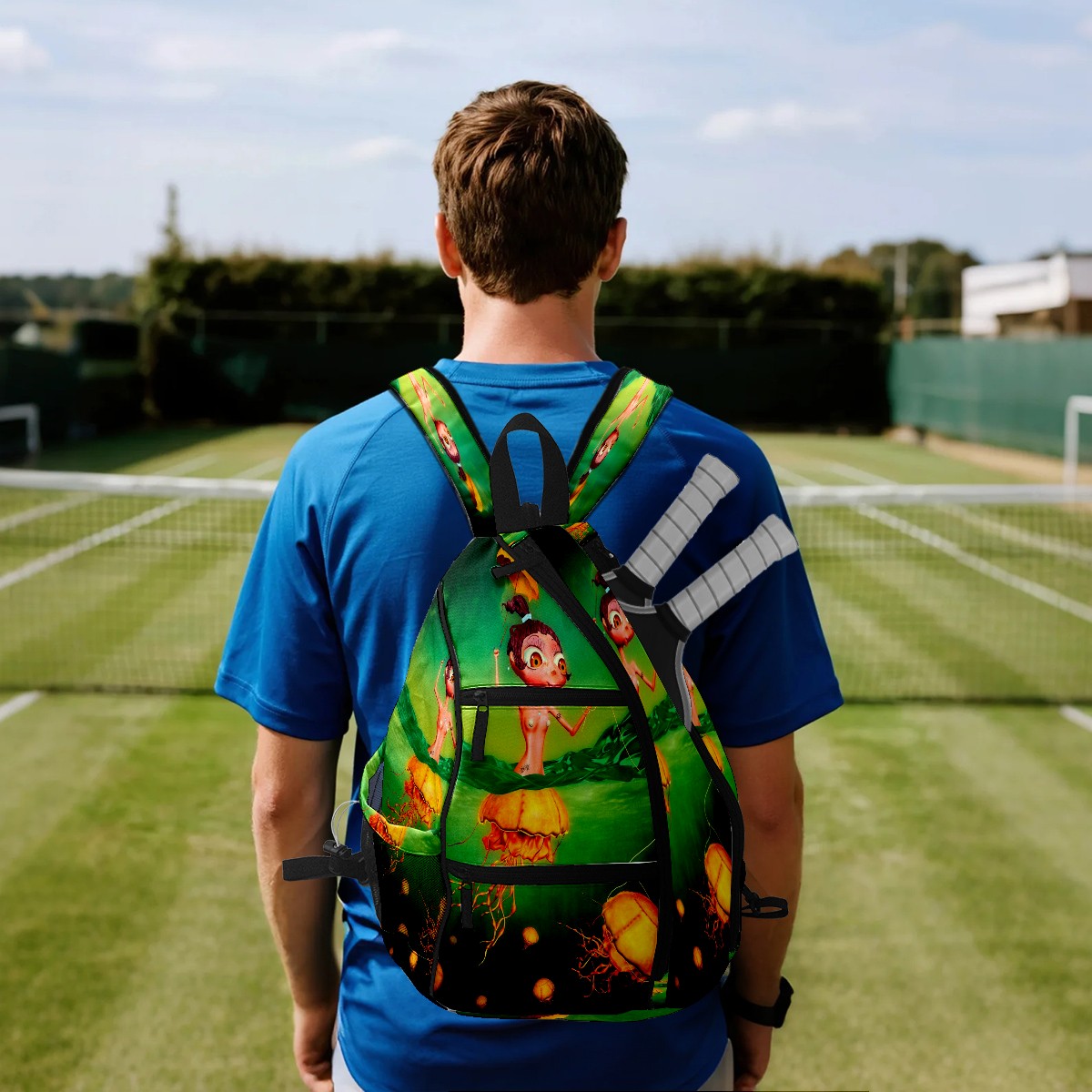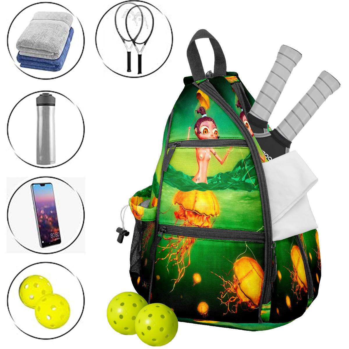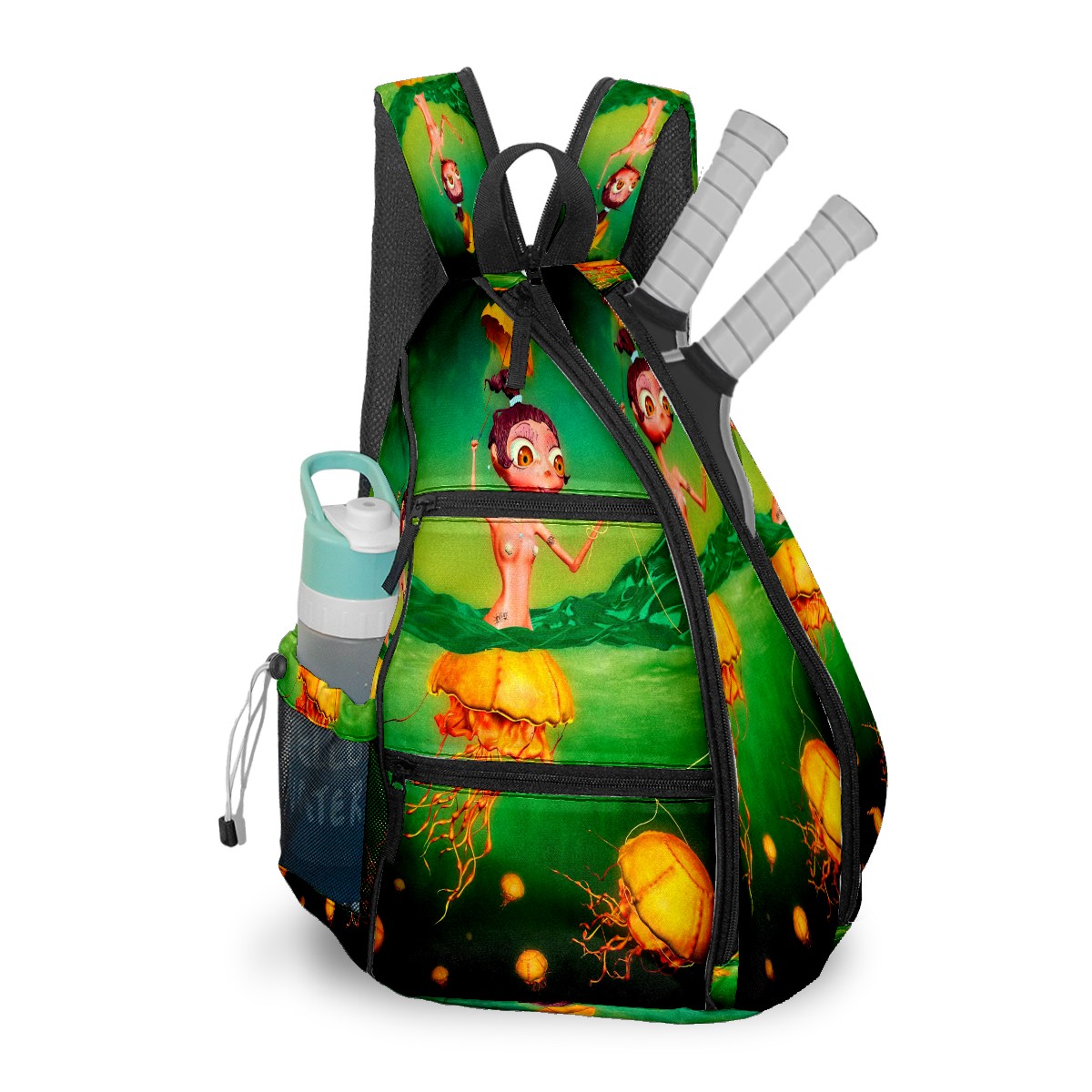 Multifunctional Pickleball Bag,Large Capacity Sports Pickleball Racket Bag, Water Bottle Holder and Fence Hook,Suitable for Both Men Women -Cute Jellyfish Princess