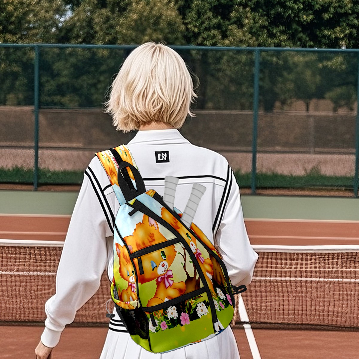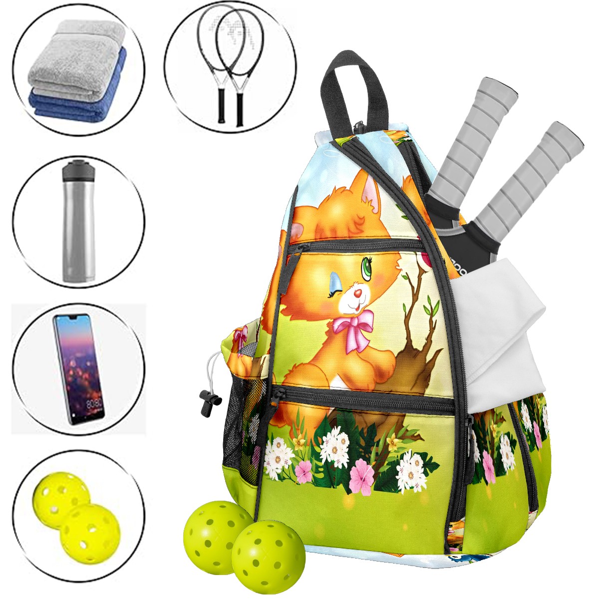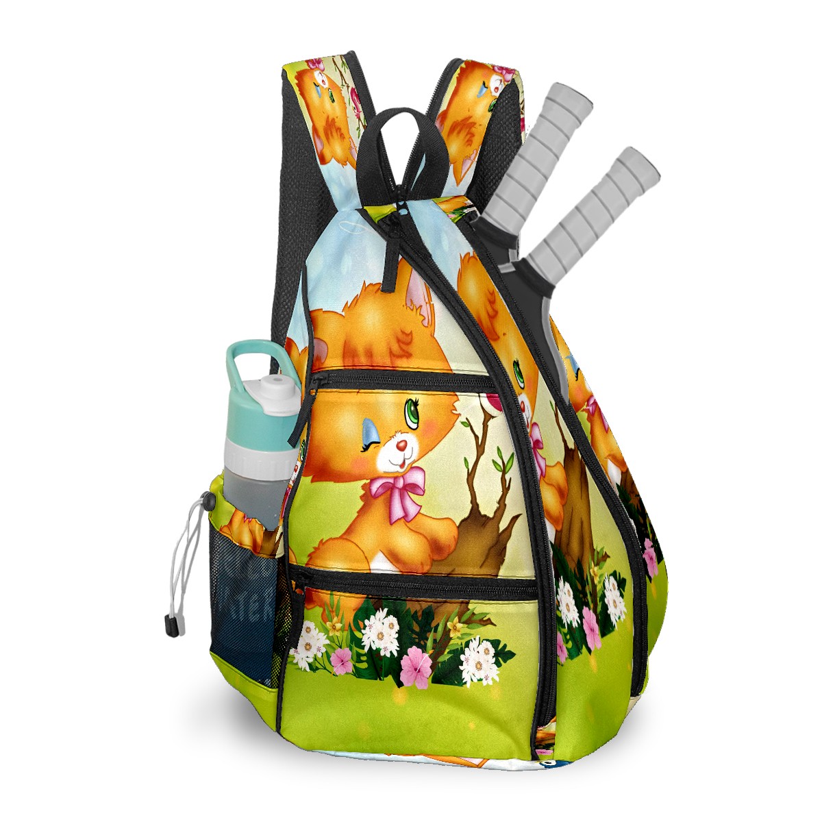 Multifunctional Pickleball Bag,Large Capacity Sports Pickleball Racket Bag, Water Bottle Holder and Fence Hook,Suitable for Both Men Women -Cute Cat Forest