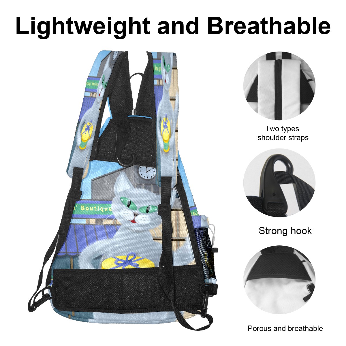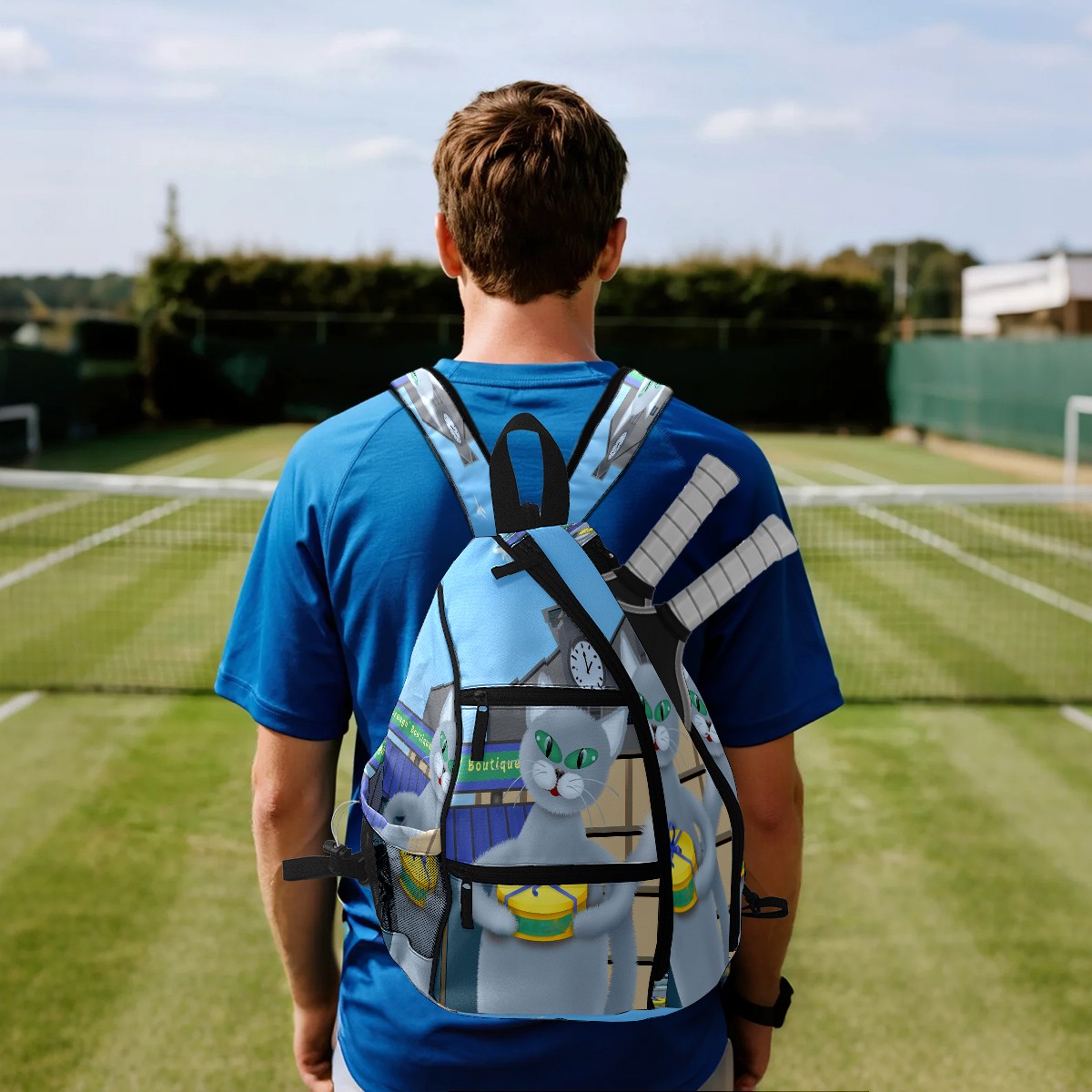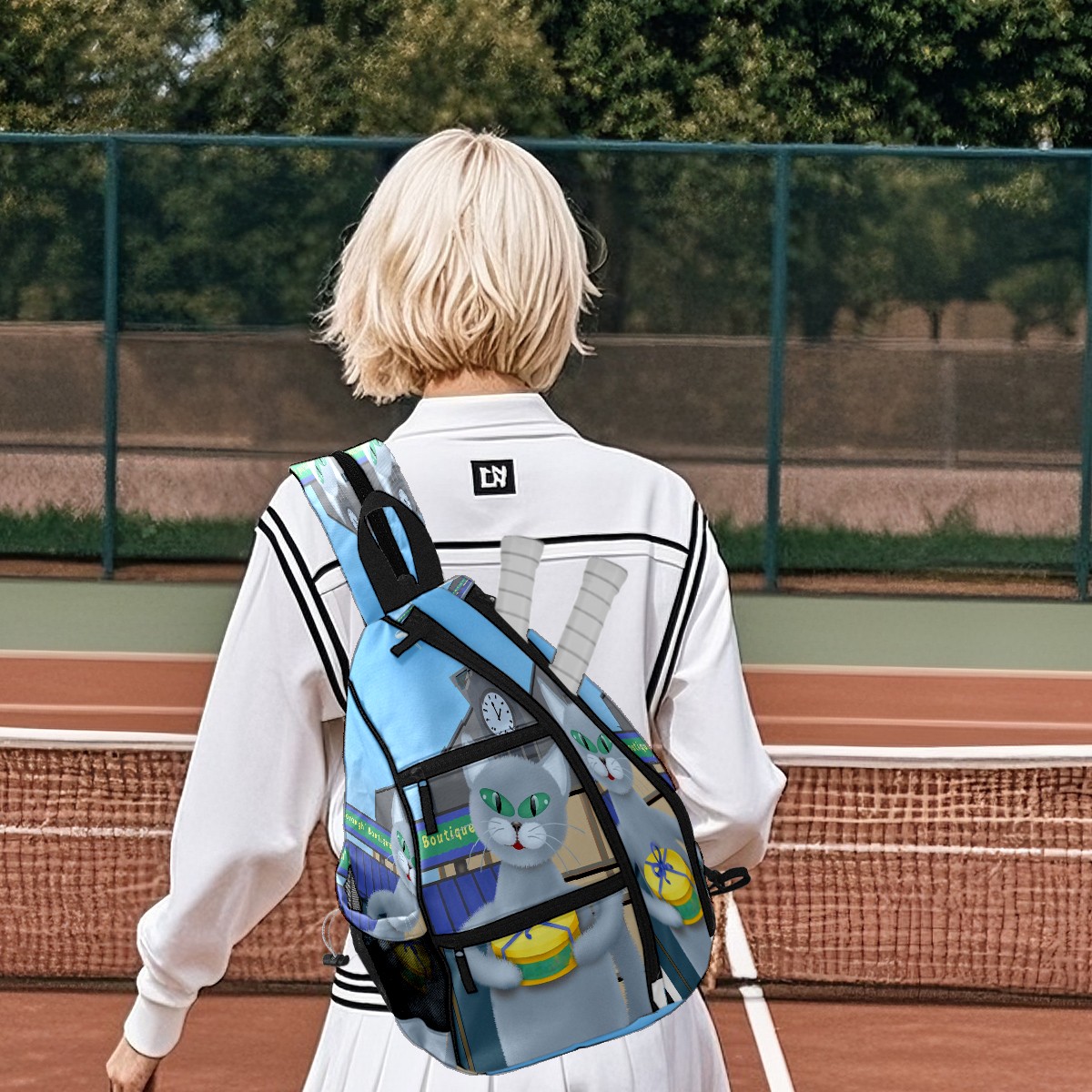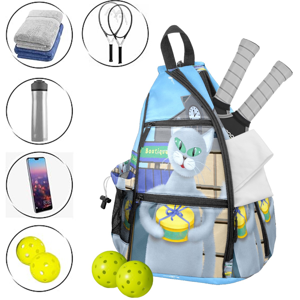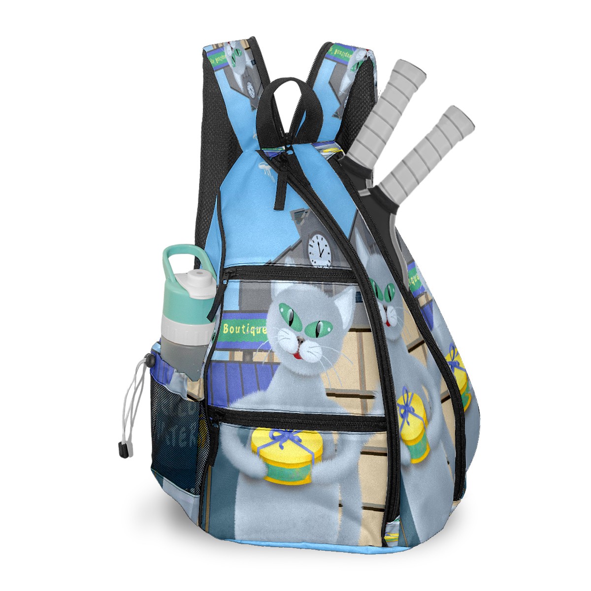Multifunctional Pickleball Bag,Large Capacity Sports Pickleball Racket Bag, Water Bottle Holder and Fence Hook,Suitable for Both Men Women -Cat In The Town 2