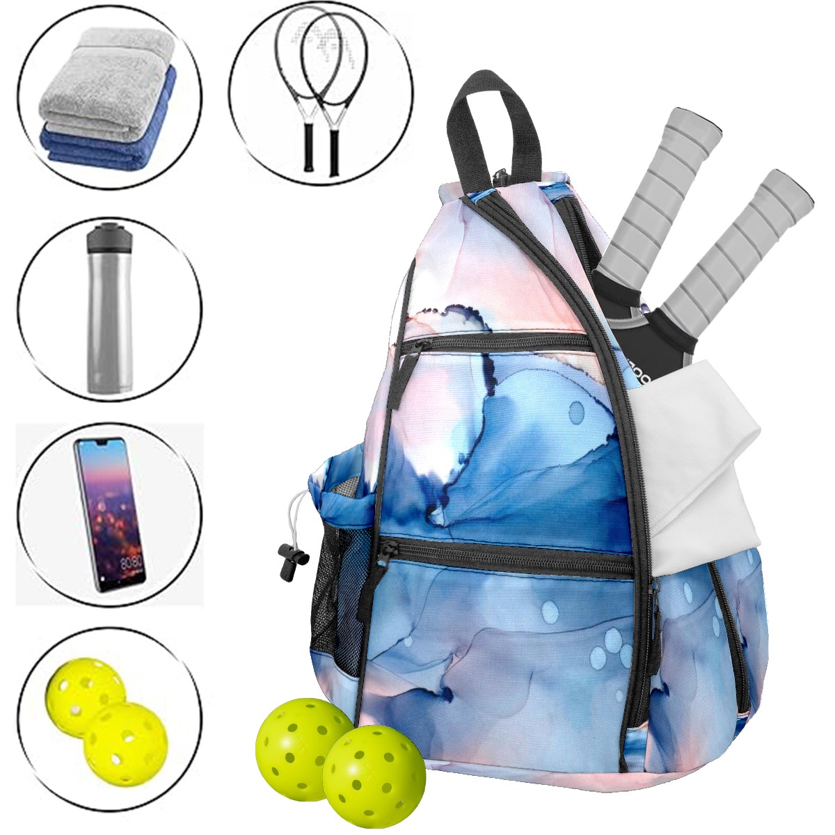 Multifunctional Pickleball Bag,Large Capacity Sports Pickleball Racket Bag, Water Bottle Holder and Fence Hook,Suitable for Both Men Women -Comics23