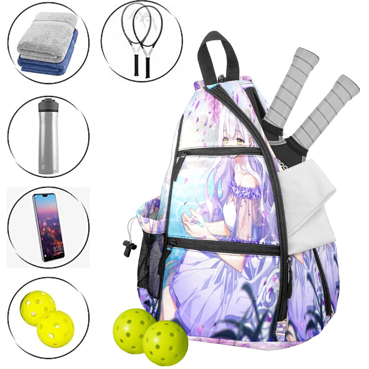 Multifunctional Pickleball Bag,Large Capacity Sports Pickleball Racket Bag, Water Bottle Holder and Fence Hook,Suitable for Both Men Women -Comics20
