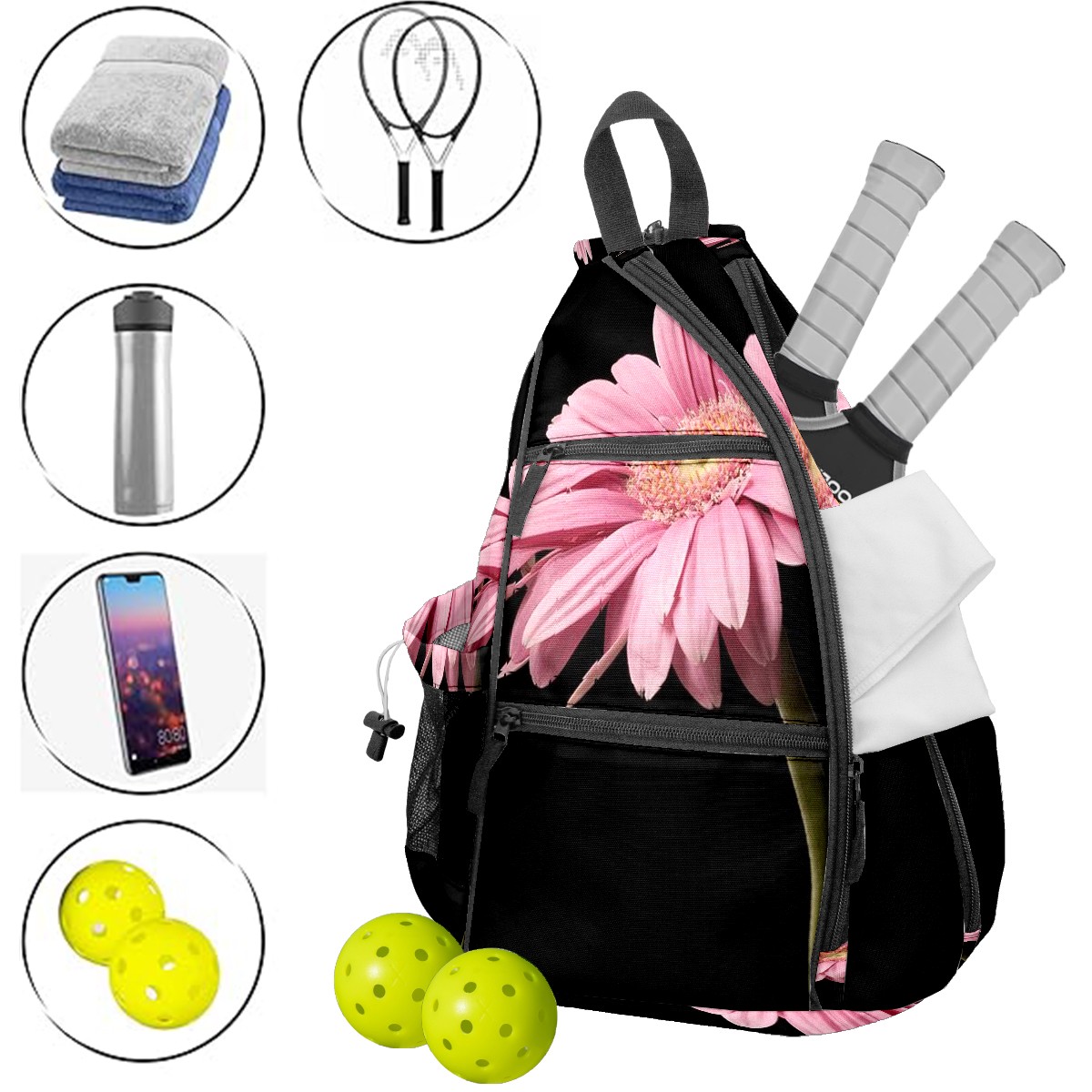 Multifunctional Pickleball Bag,Large Capacity Sports Pickleball Racket Bag, Water Bottle Holder and Fence Hook,Suitable for Both Men Women -Simplicity123