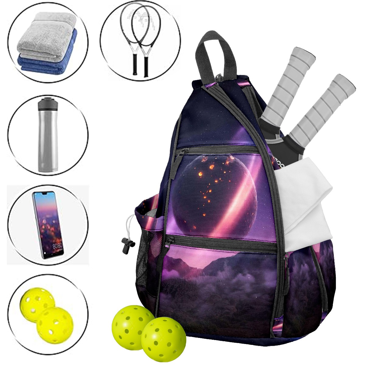 Multifunctional Pickleball Bag,Large Capacity Sports Pickleball Racket Bag, Water Bottle Holder and Fence Hook,Suitable for Both Men Women -Simplicity94