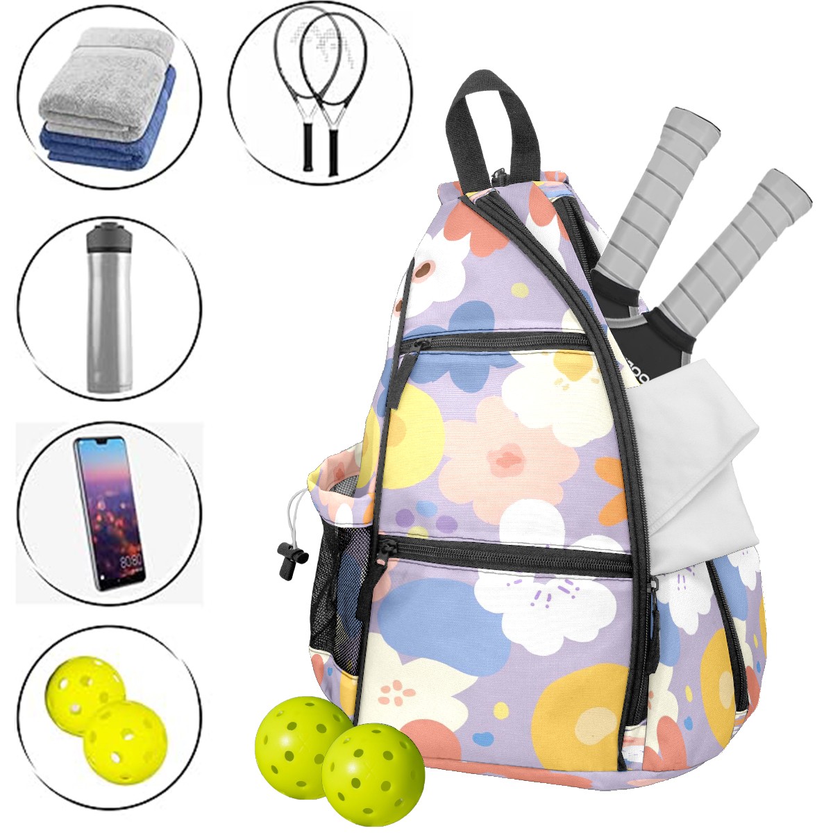 Multifunctional Pickleball Bag,Large Capacity Sports Pickleball Racket Bag, Water Bottle Holder and Fence Hook,Suitable for Both Men Women -Simplicity72