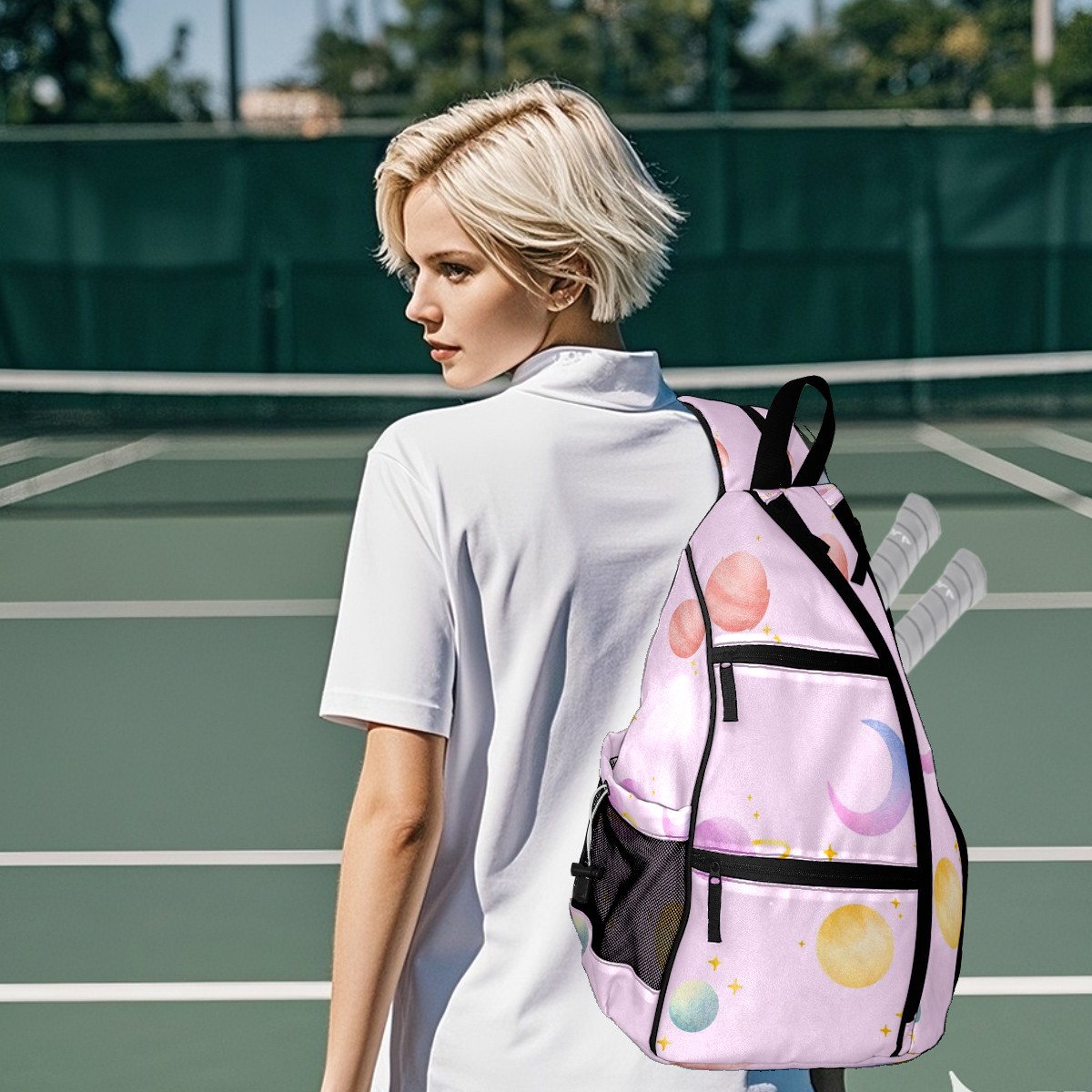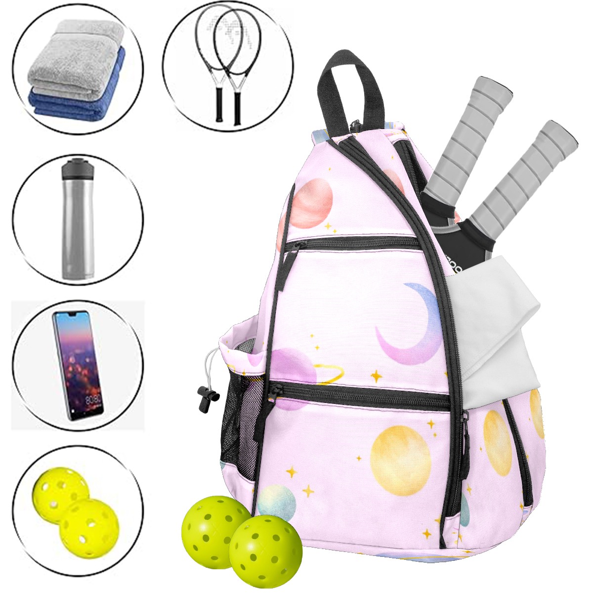 Multifunctional Pickleball Bag,Large Capacity Sports Pickleball Racket Bag, Water Bottle Holder and Fence Hook,Suitable for Both Men Women -Round4