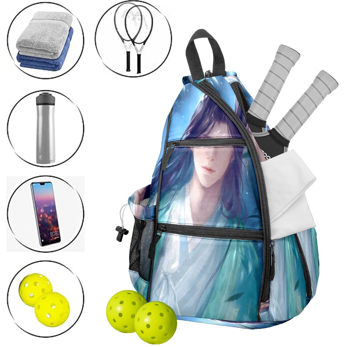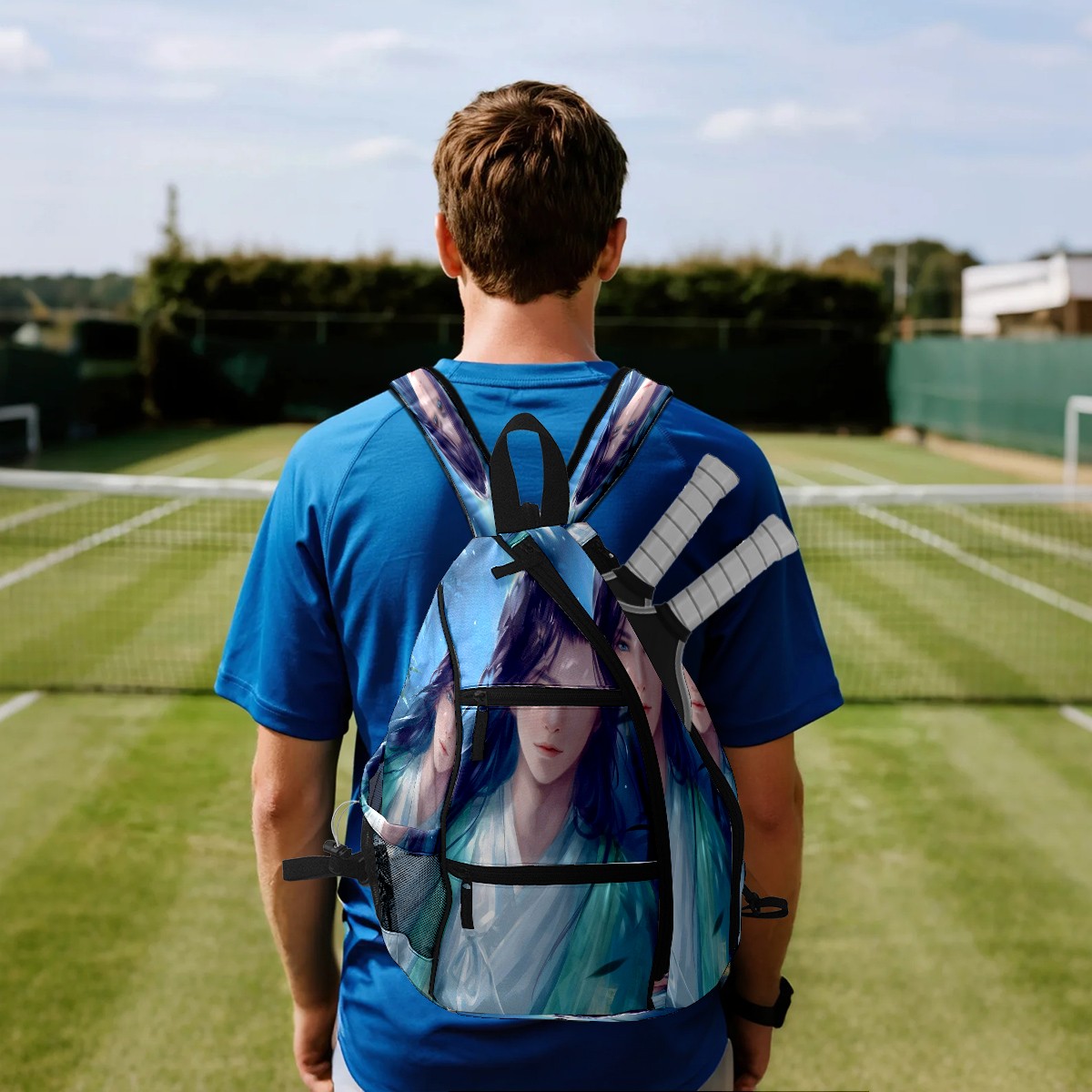 Multifunctional Pickleball Bag,Large Capacity Sports Pickleball Racket Bag, Water Bottle Holder and Fence Hook,Suitable for Both Men Women -Grass9