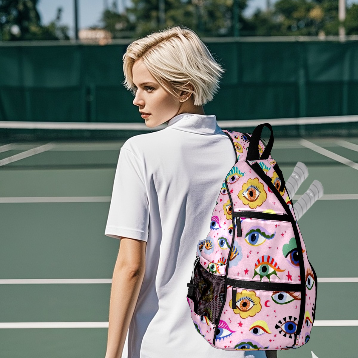 Multifunctional Pickleball Bag,Large Capacity Sports Pickleball Racket Bag, Water Bottle Holder and Fence Hook,Suitable for Both Men Women -Grass6