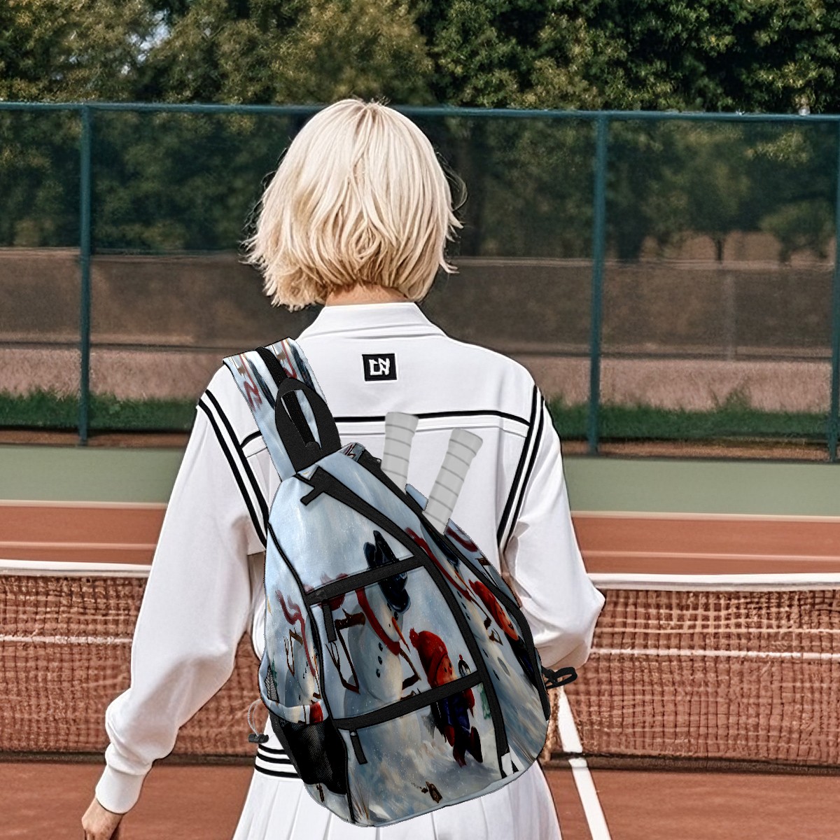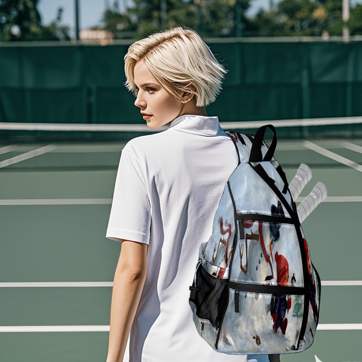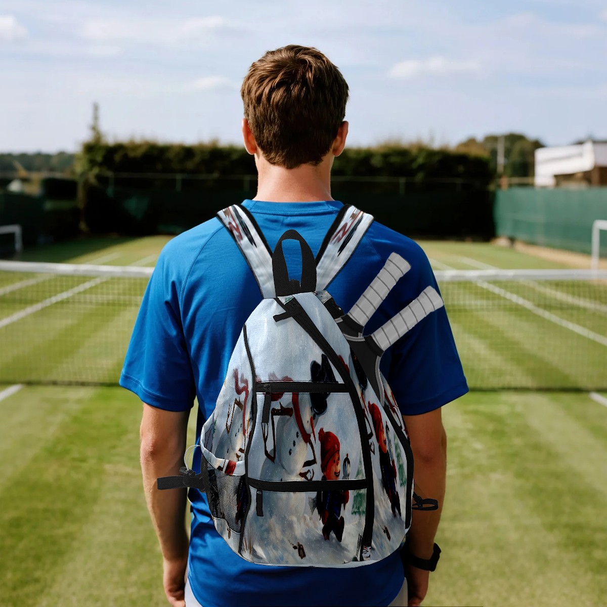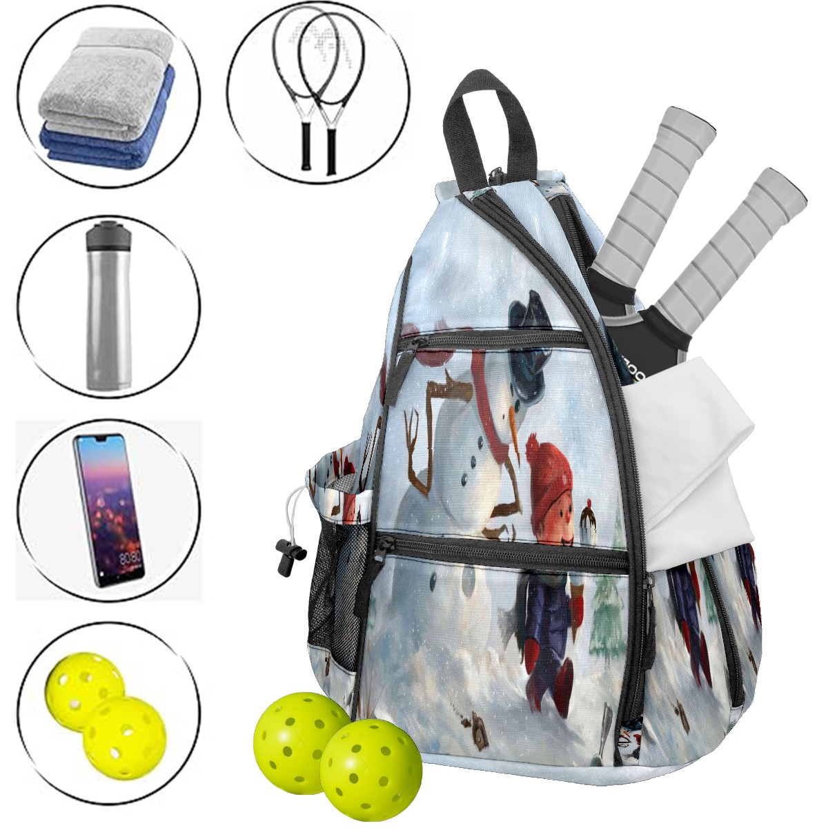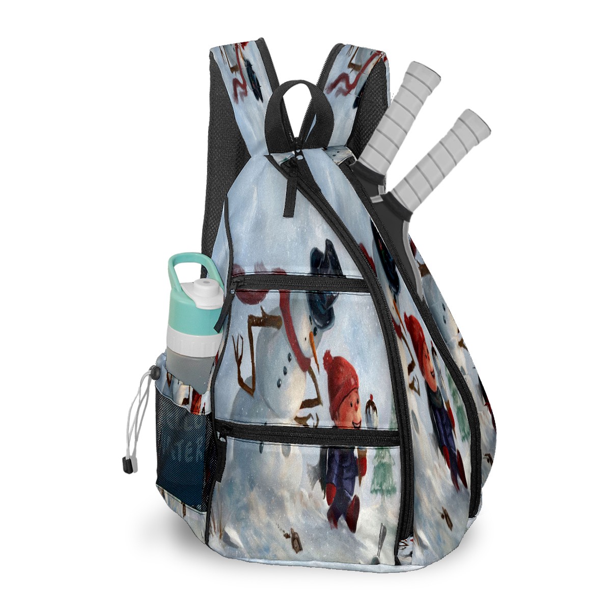 Multifunctional Pickleball Bag,Large Capacity Sports Pickleball Racket Bag, Water Bottle Holder and Fence Hook,Suitable for Both Men Women -Let It Snow