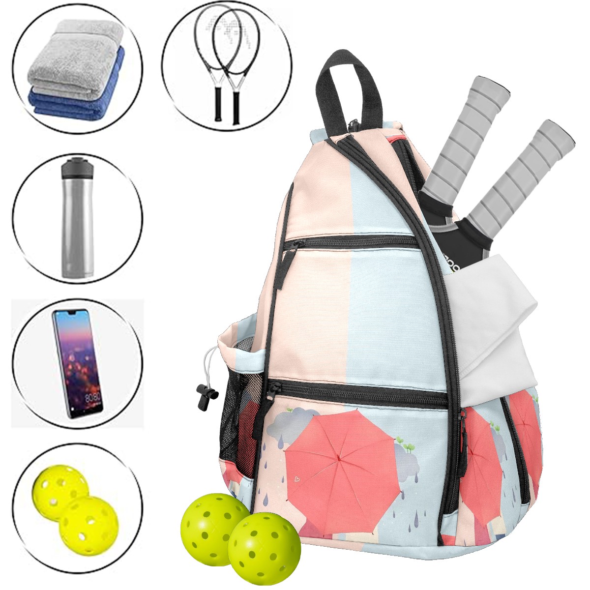 <p>This peakball backpack boasts a spacious 14-inch x 10-inch x 19-inch interior. The main compartment is clearly divided, easily accommodating 2-3 rackets and 6-8 peakballs. A side pocket can hold a water bottle, and an inner pocket provides storage for small items like phones and keys. The adjustable, thickened shoulder straps can be adjusted to fit different body types, effectively distributing weight and preventing shoulder and back pain even when fully loaded and worn for extended periods. Its convenience is particularly outstanding – all peakball accessories can be neatly stored in one bag, making travel easy. Moreover, its versatility is incredibly broad. Besides peakballs, it can also be used as a badminton or table tennis racket bag, and is perfect for carrying clothes and personal items when going to the gym or on short trips. One bag, multiple uses, and super convenient. For pickleball players of all ages and genders, this is not just an essential equipment storage bag, but also a thoughtful gift—its simple and durable design suits everyone, making it perfect for birthdays, holidays, or as a team reward for teammates. Almost every sports enthusiast who has used it praises its practicality and versatility.</p>
