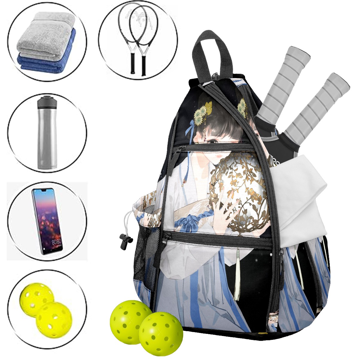 Multifunctional Pickleball Bag,Large Capacity Sports Pickleball Racket Bag, Water Bottle Holder and Fence Hook,Suitable for Both Men Women -Good Luck10