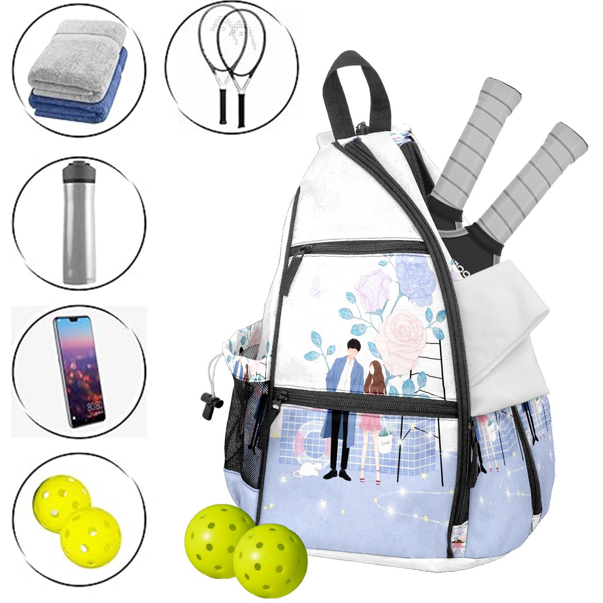 Multifunctional Pickleball Bag,Large Capacity Sports Pickleball Racket Bag, Water Bottle Holder and Fence Hook,Suitable for Both Men Women -Good Luck1235