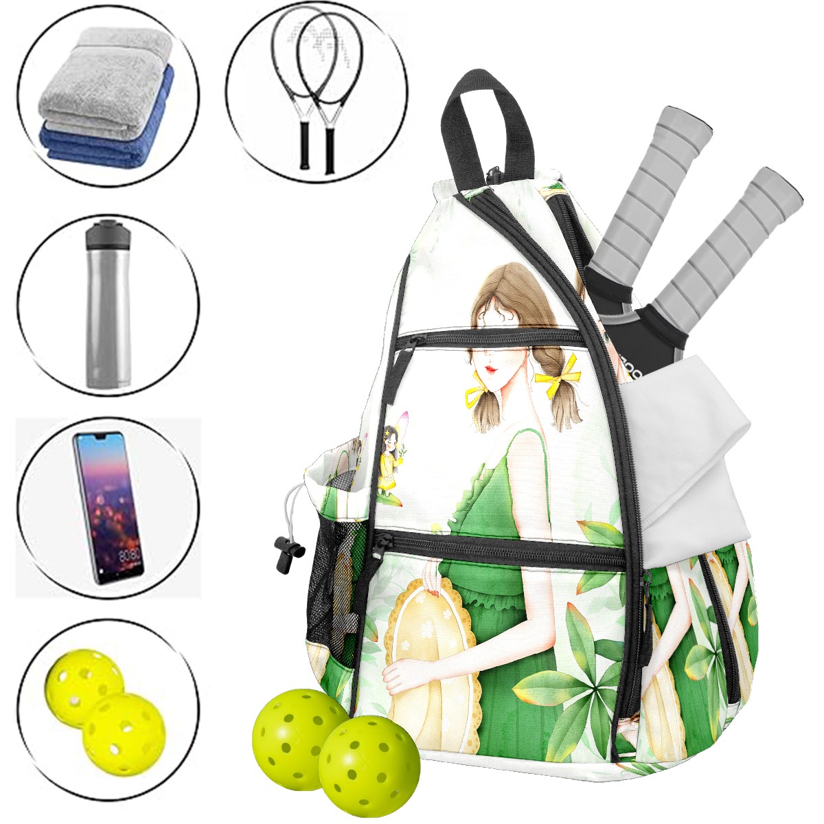 Multifunctional Pickleball Bag,Large Capacity Sports Pickleball Racket Bag, Water Bottle Holder and Fence Hook,Suitable for Both Men Women -Good Luck1232