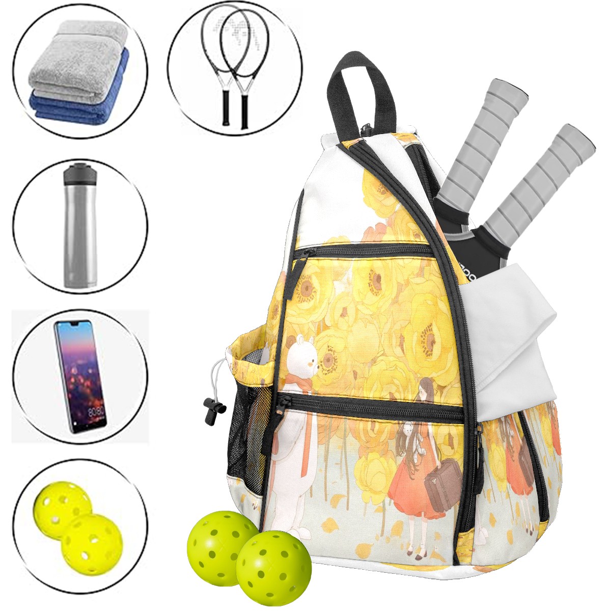 Multifunctional Pickleball Bag,Large Capacity Sports Pickleball Racket Bag, Water Bottle Holder and Fence Hook,Suitable for Both Men Women -Good Luck143
