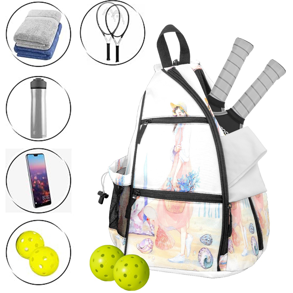 Multifunctional Pickleball Bag,Large Capacity Sports Pickleball Racket Bag, Water Bottle Holder and Fence Hook,Suitable for Both Men Women -Good Luck145