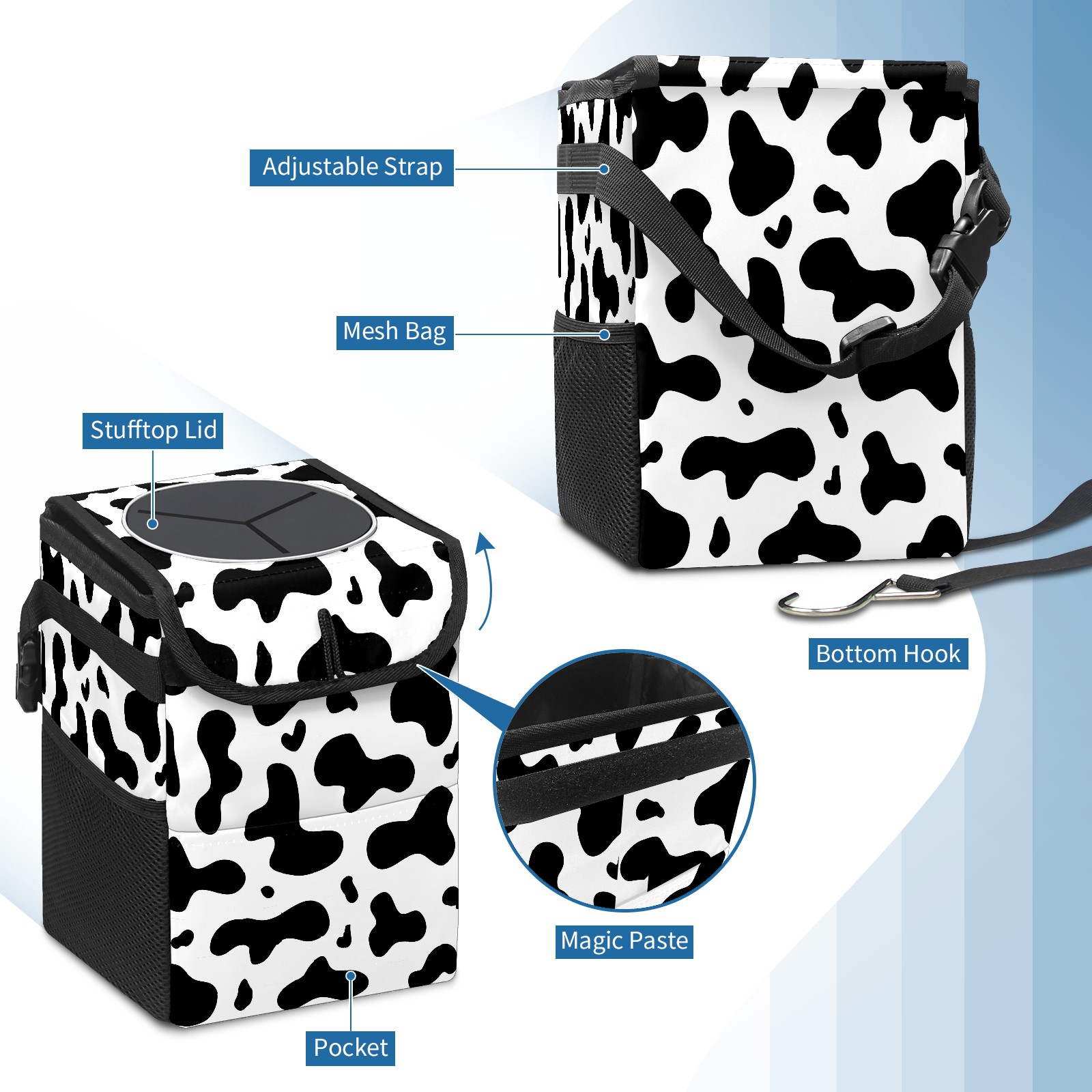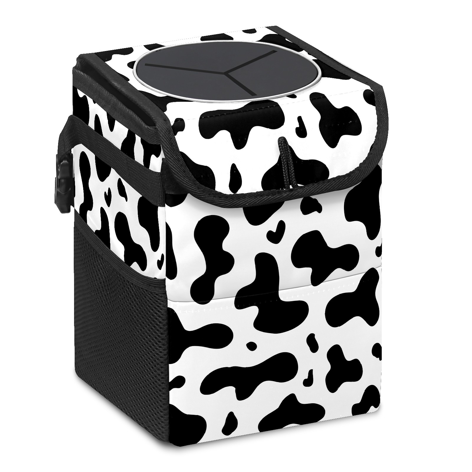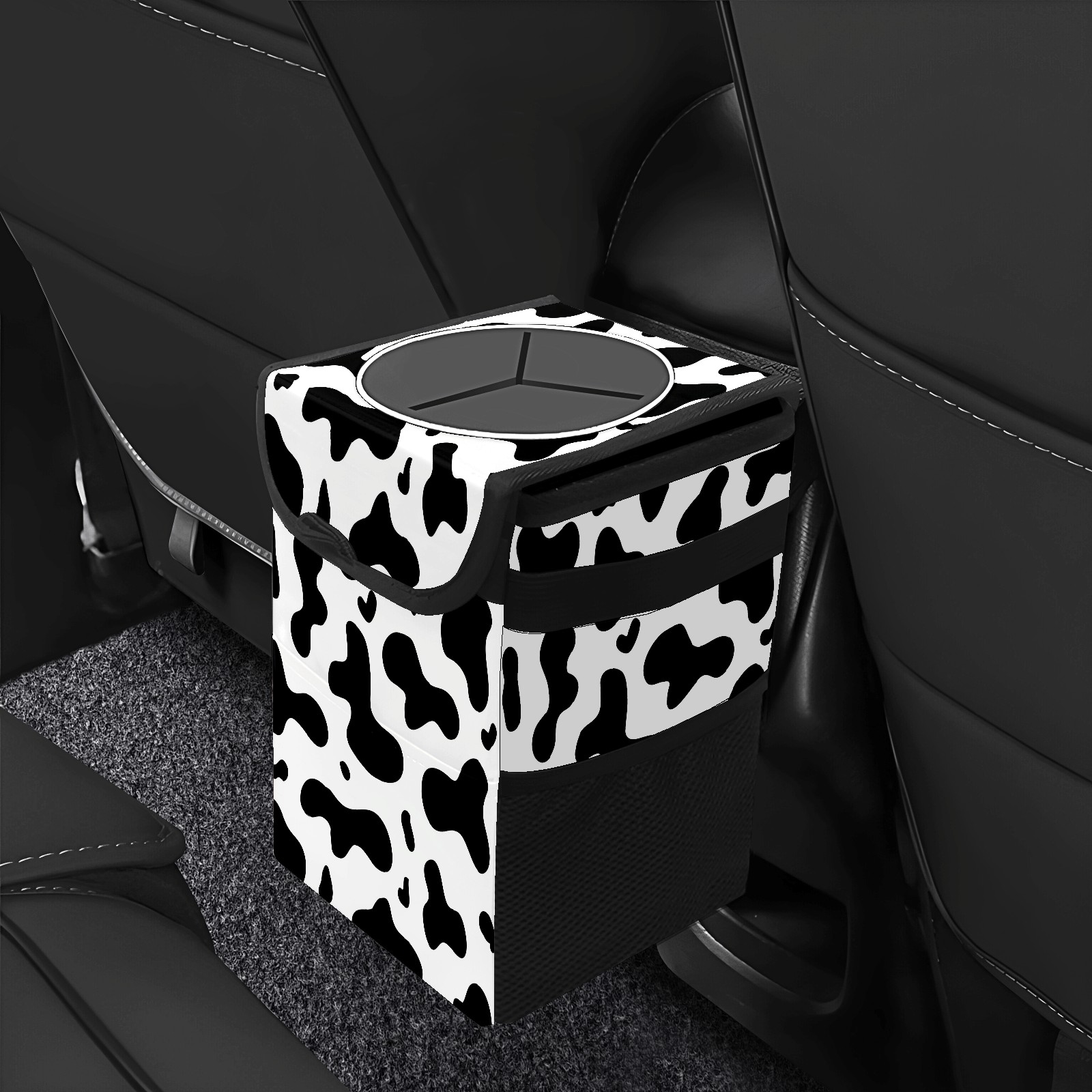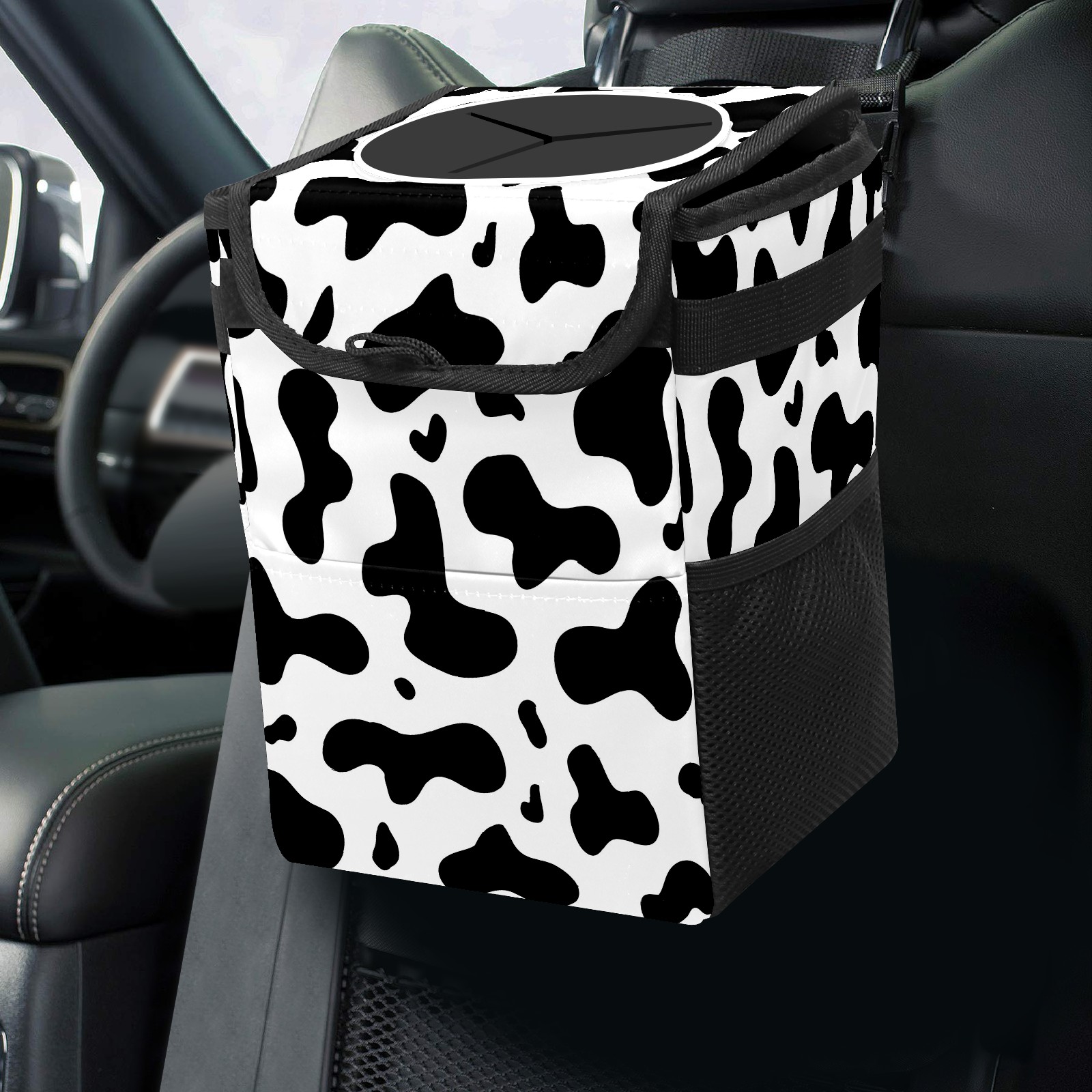 MSINMKOK Car Trash Bin with Lid Auto Garbage Bag Hanging for Back Seat - Leakproof Trash Can for Cars SUVs Trucks Vehicle Car Accessories (Cow Print)