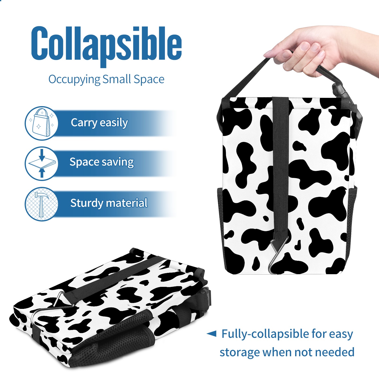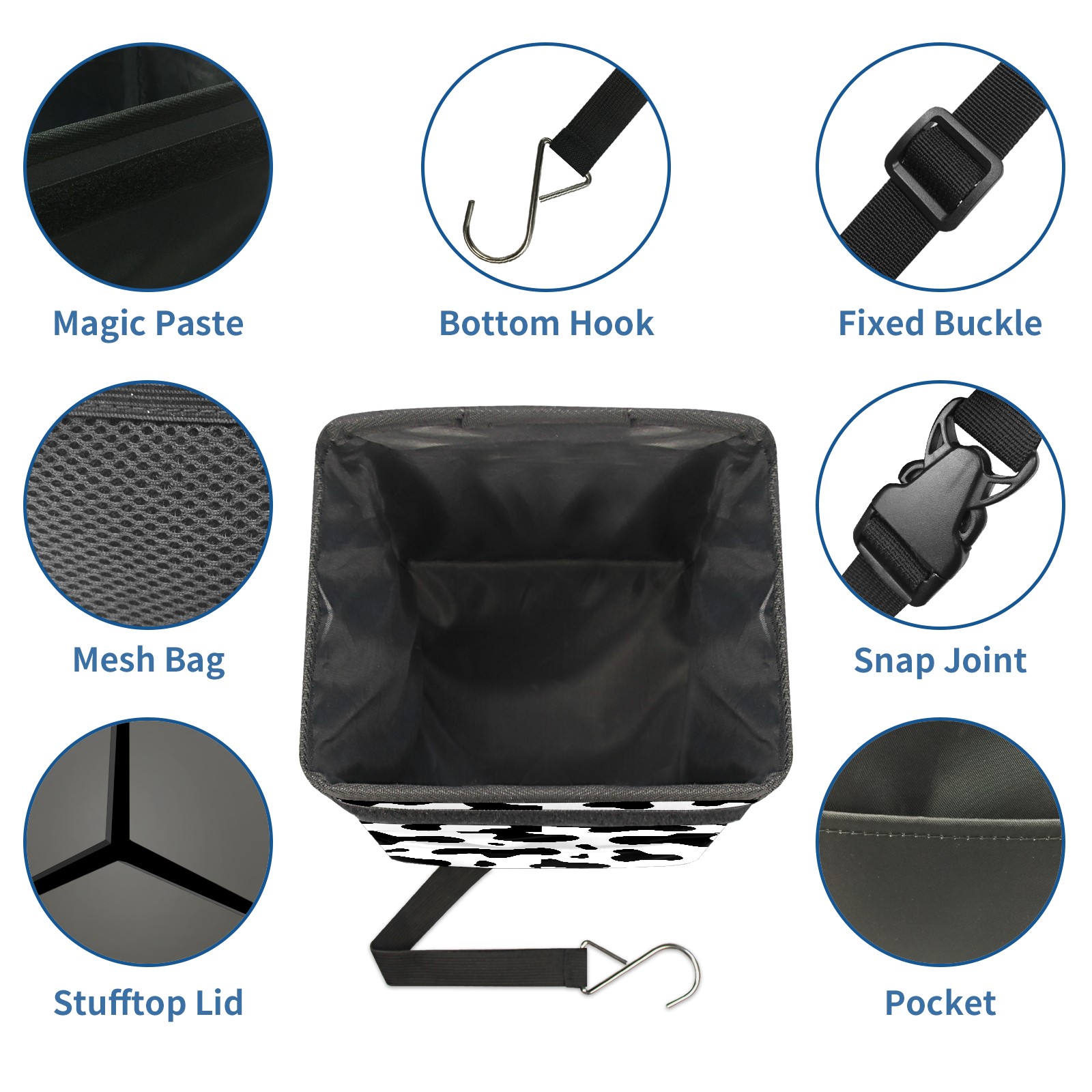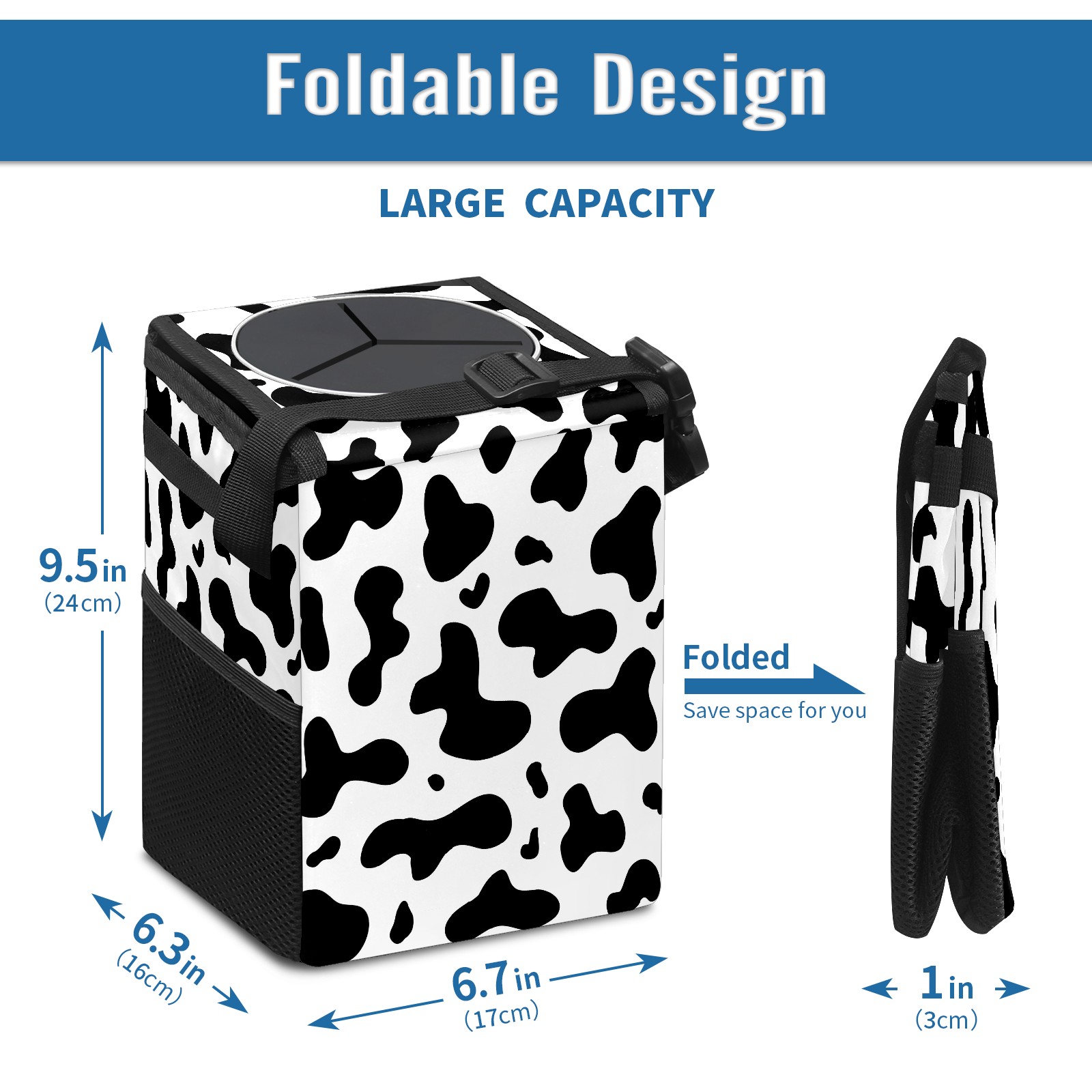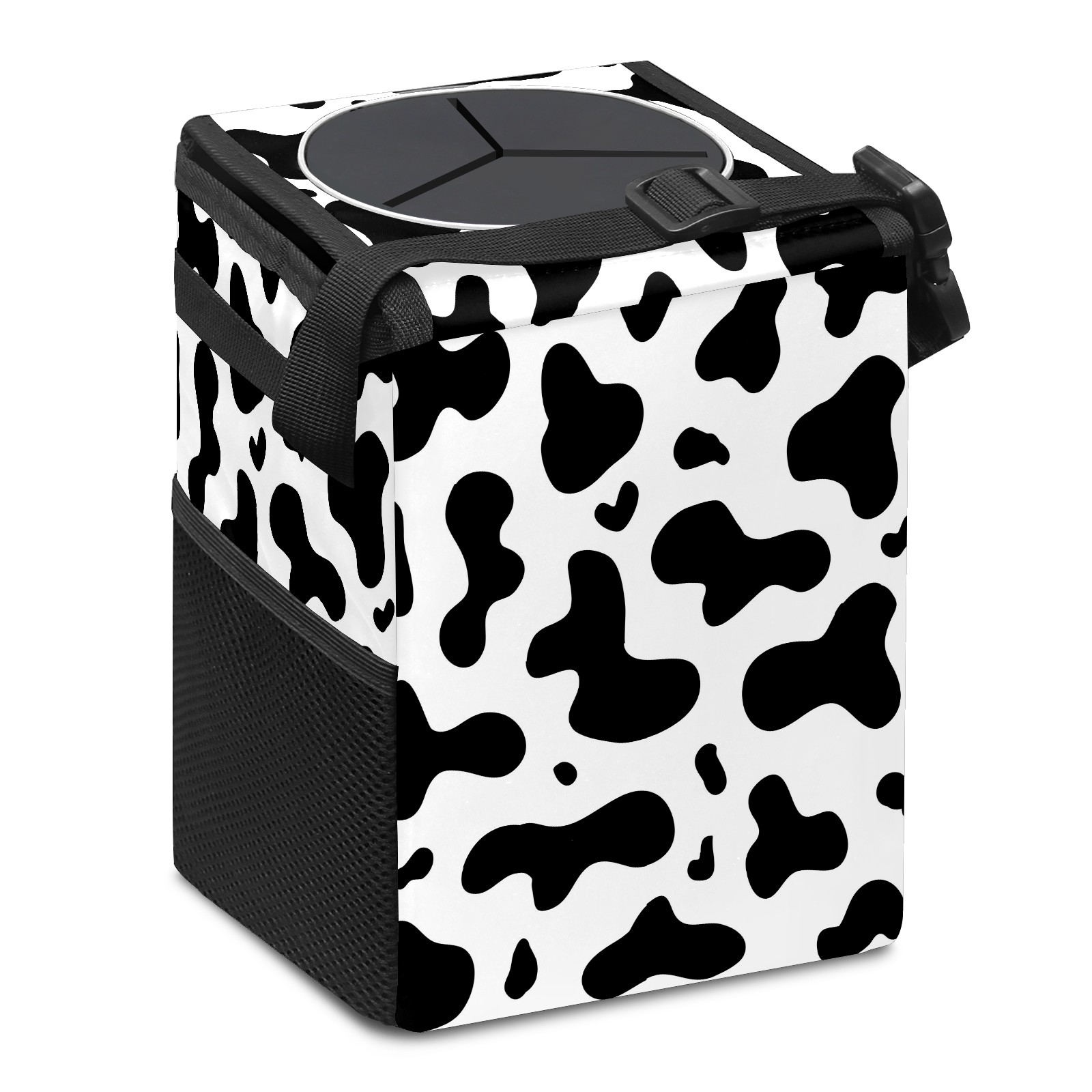 MSINMKOK Car Trash Bin with Lid Auto Garbage Bag Hanging for Back Seat - Leakproof Trash Can for Cars SUVs Trucks Vehicle Car Accessories (Cow Print)