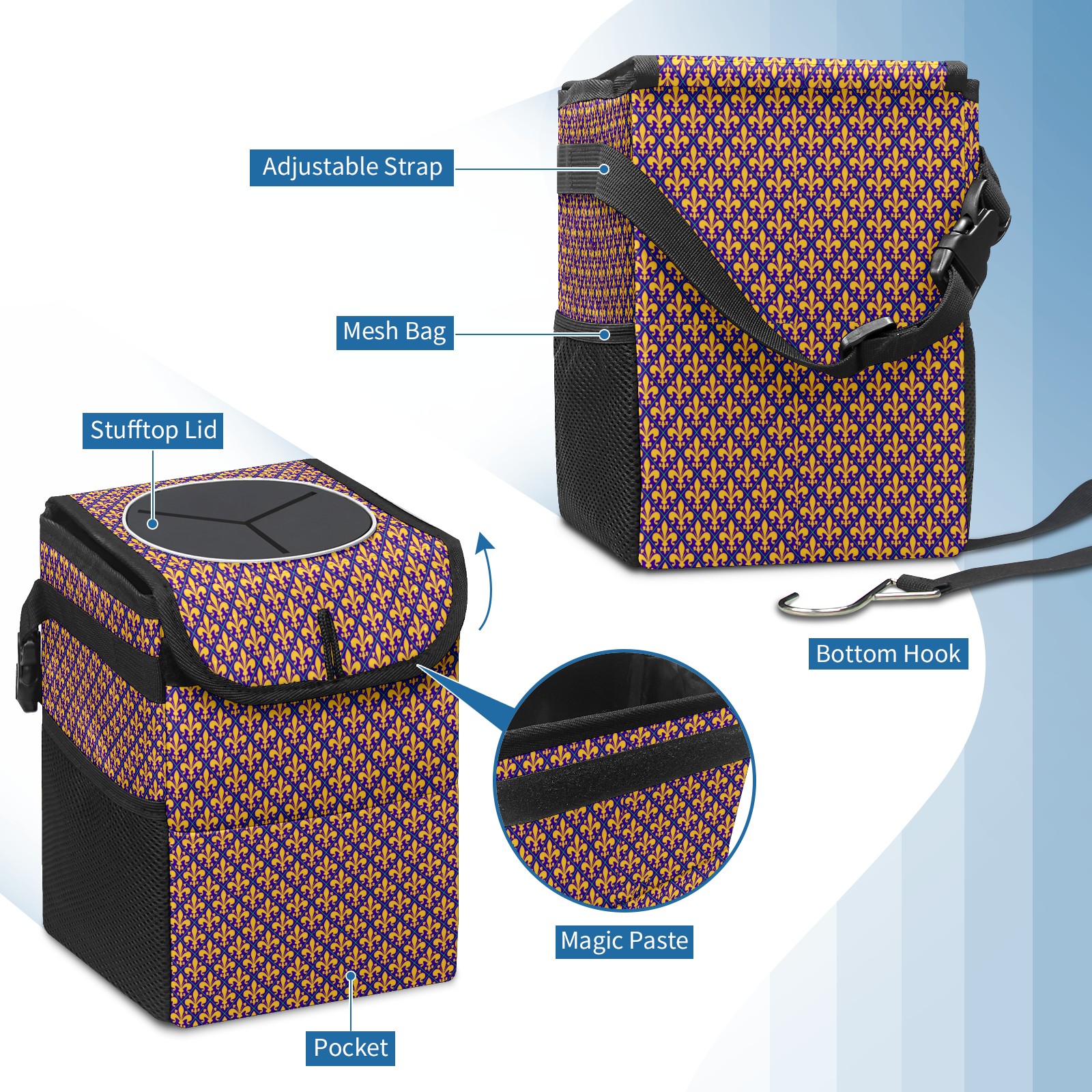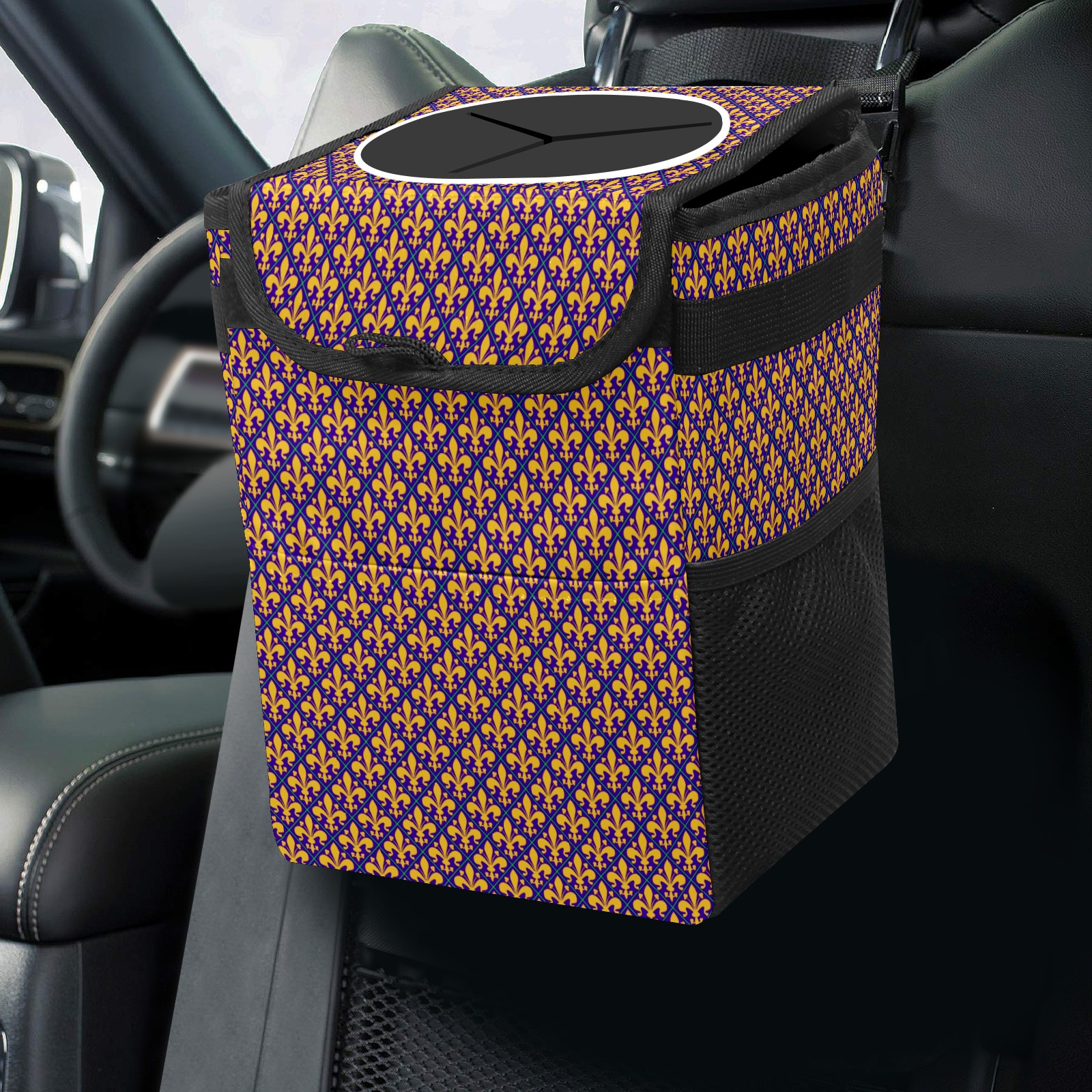 Car Garbage Can — Multi-functional, Lightweight Portable, Reusable Vehicle Trash Can, Waterproof with Sufficient Storage Capacity New Orleans Mardi Gras Fleur De Lis