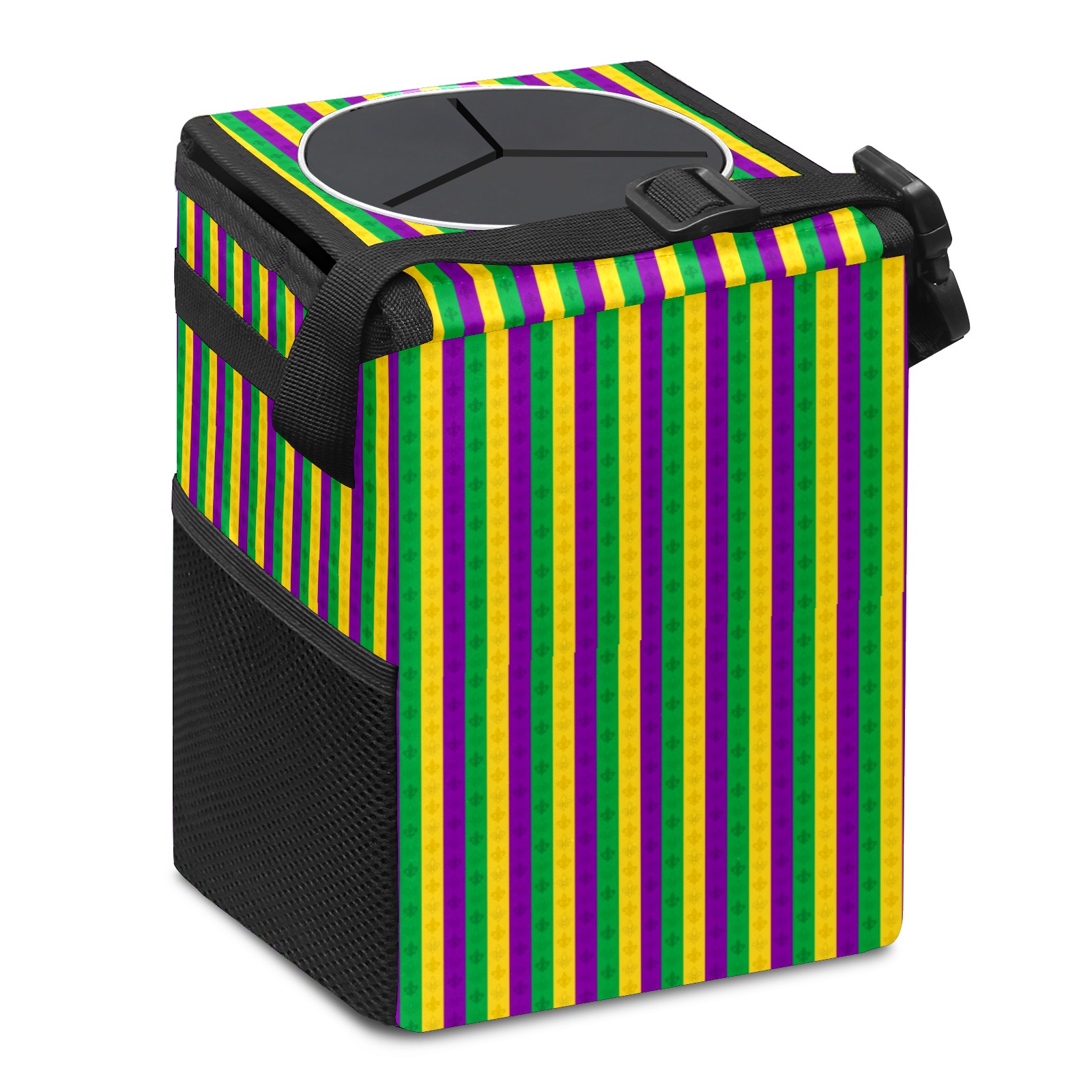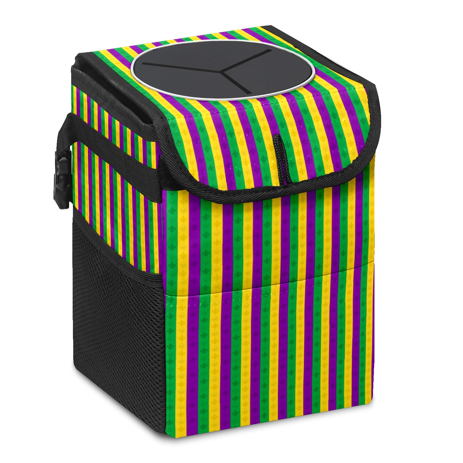 Car Garbage Can — Multi-functional, Lightweight Portable, Reusable Vehicle Trash Can, Waterproof with Sufficient Storage Capacity Purple Yellow Green Stripes Fleur-de-Lis Pattern