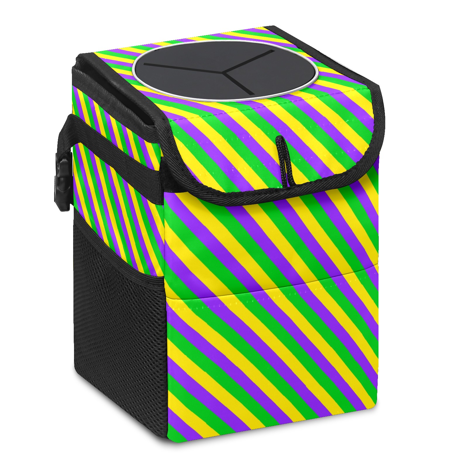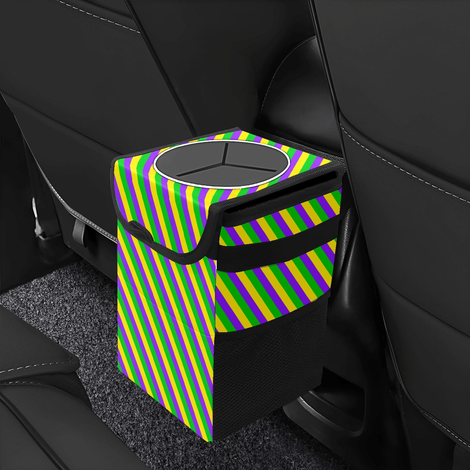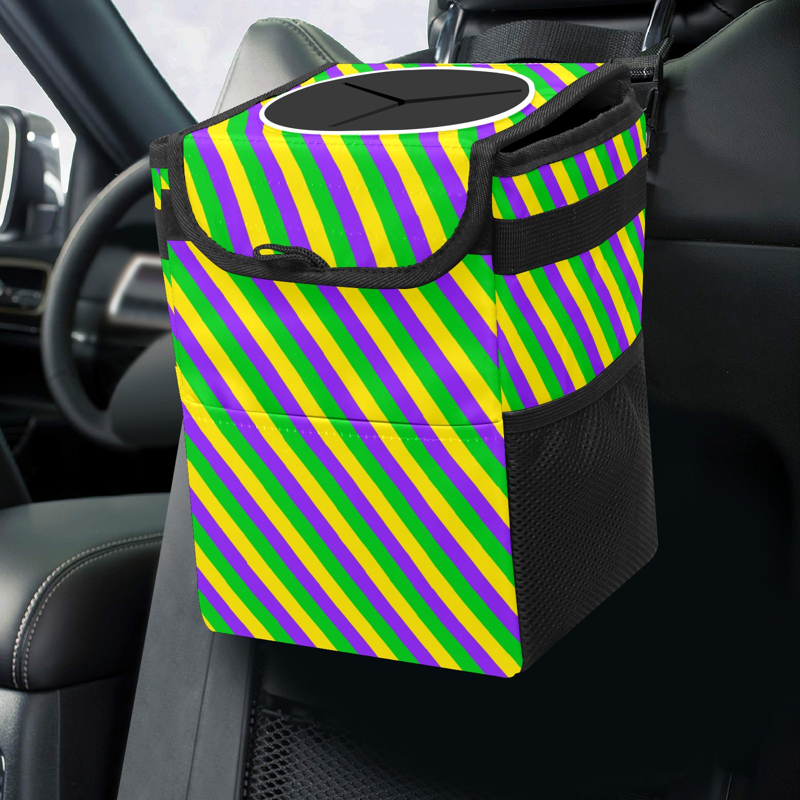 Car Garbage Can — Multi-functional, Lightweight Portable, Reusable Vehicle Trash Can, Waterproof with Sufficient Storage Capacity Mardi Gras New Orleans Carnival Stripes Colorful