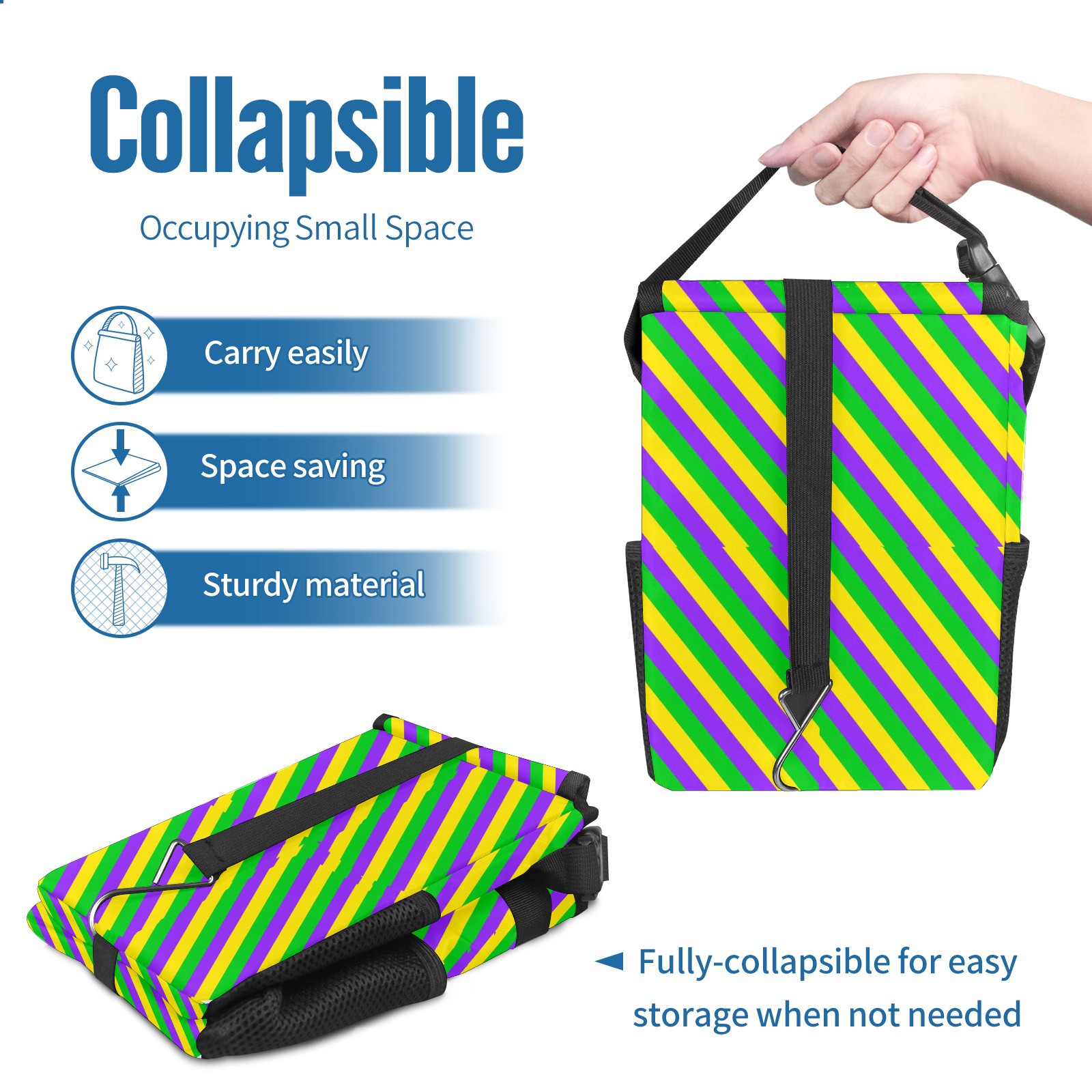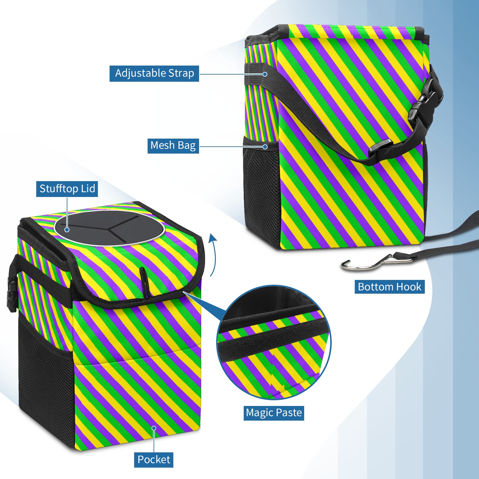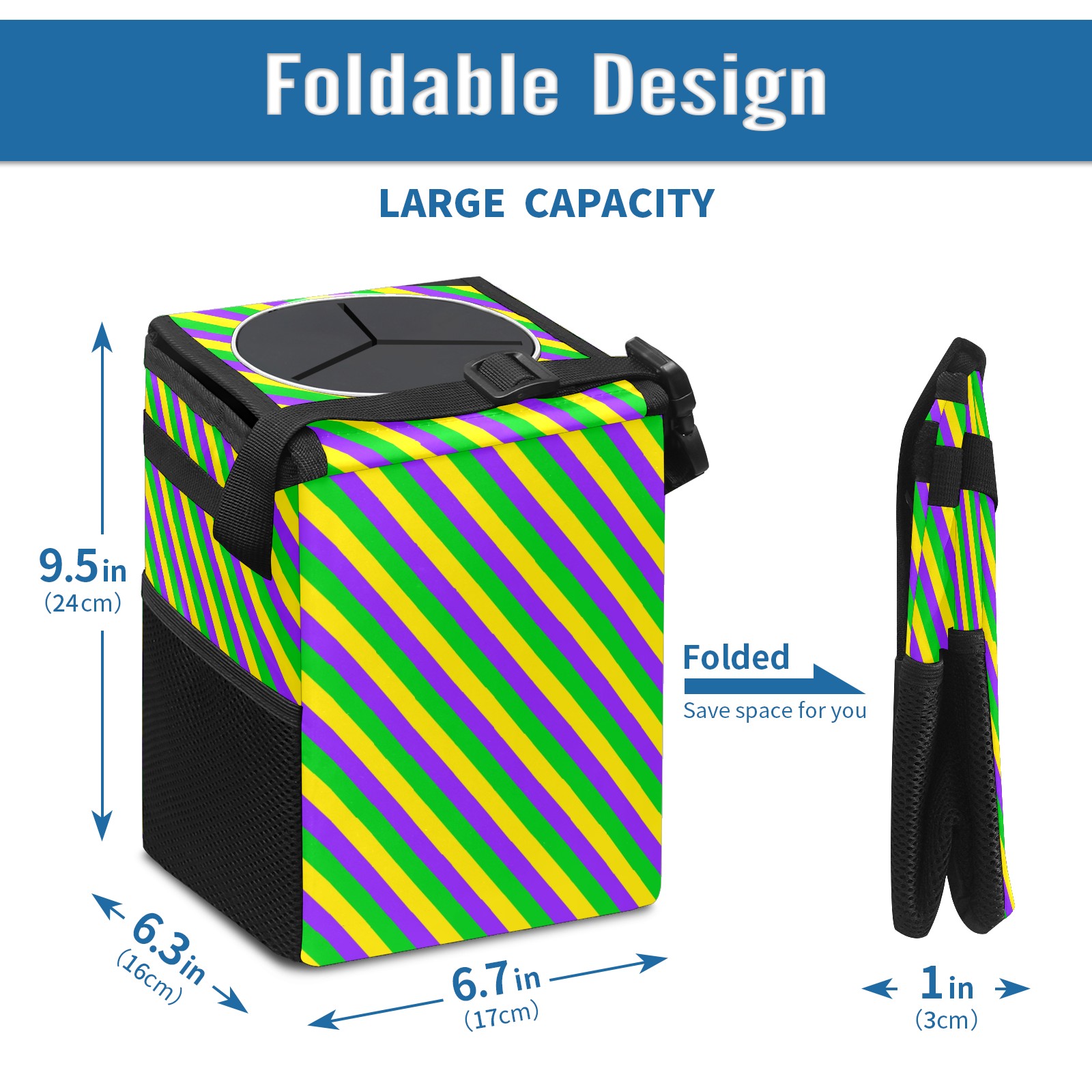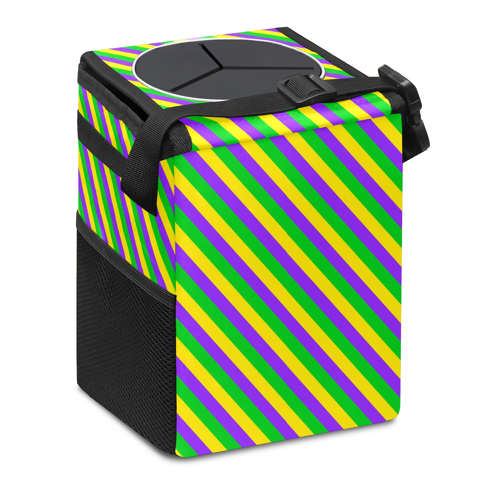 Car Garbage Can — Multi-functional, Lightweight Portable, Reusable Vehicle Trash Can, Waterproof with Sufficient Storage Capacity Mardi Gras New Orleans Carnival Stripes Colorful