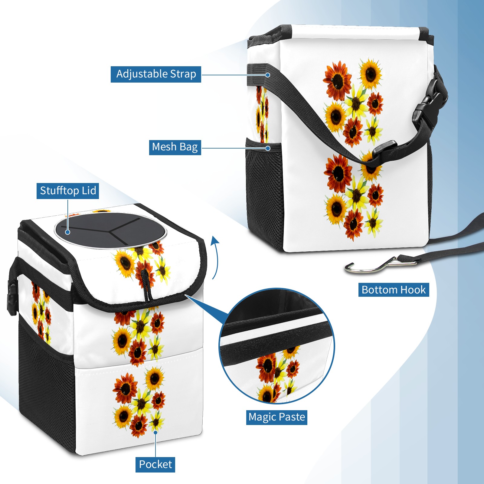 Car Garbage Can — Multi-functional, Lightweight Portable, Reusable Vehicle Trash Can, Waterproof with Sufficient Storage Capacity Colorful Autumn Sunflowers Photos