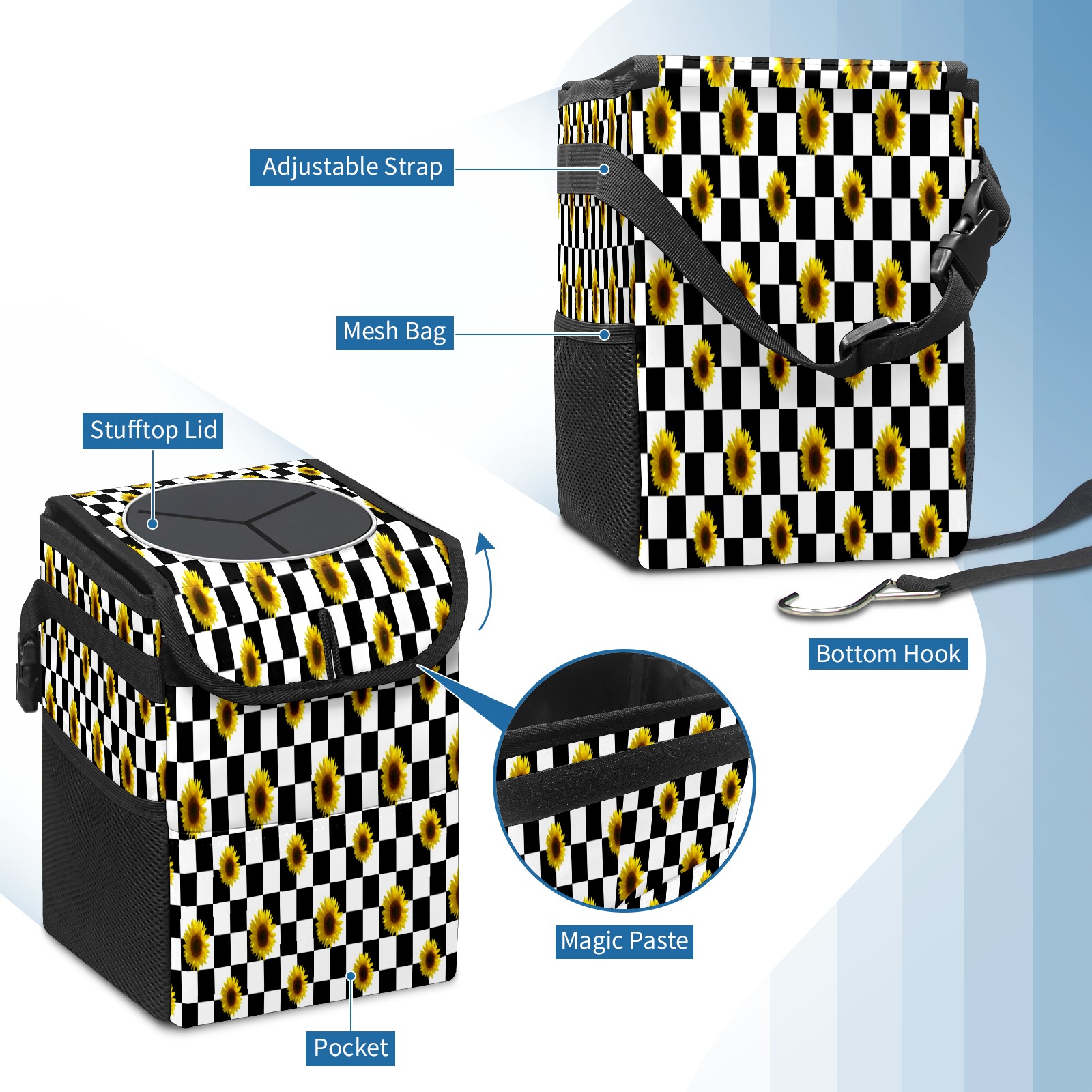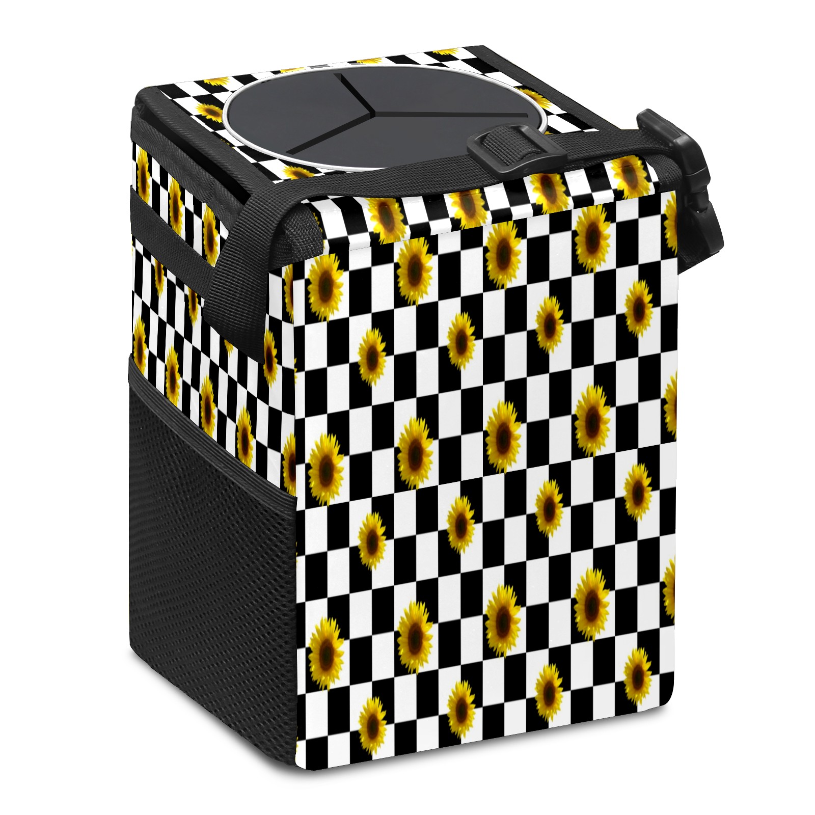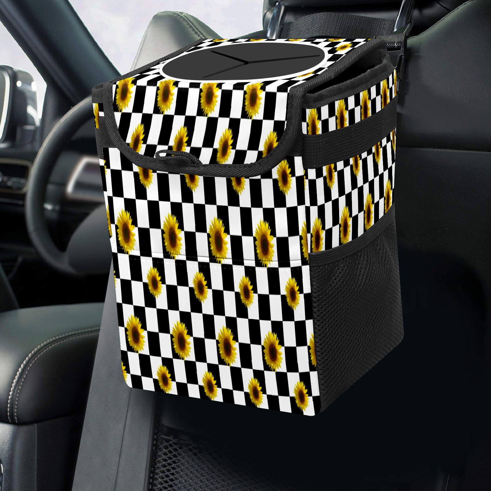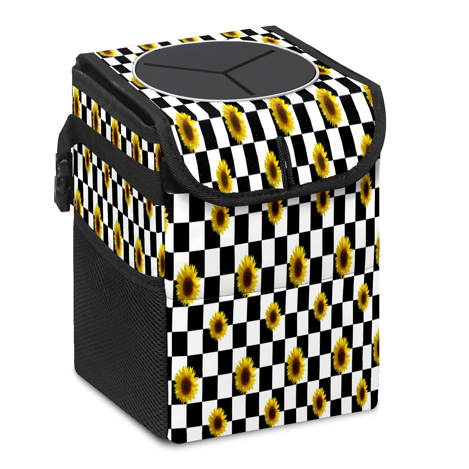 Car Garbage Can — Multi-functional, Lightweight Portable, Reusable Vehicle Trash Can, Waterproof with Sufficient Storage Capacity Black And White Checkered & Sunflower Print