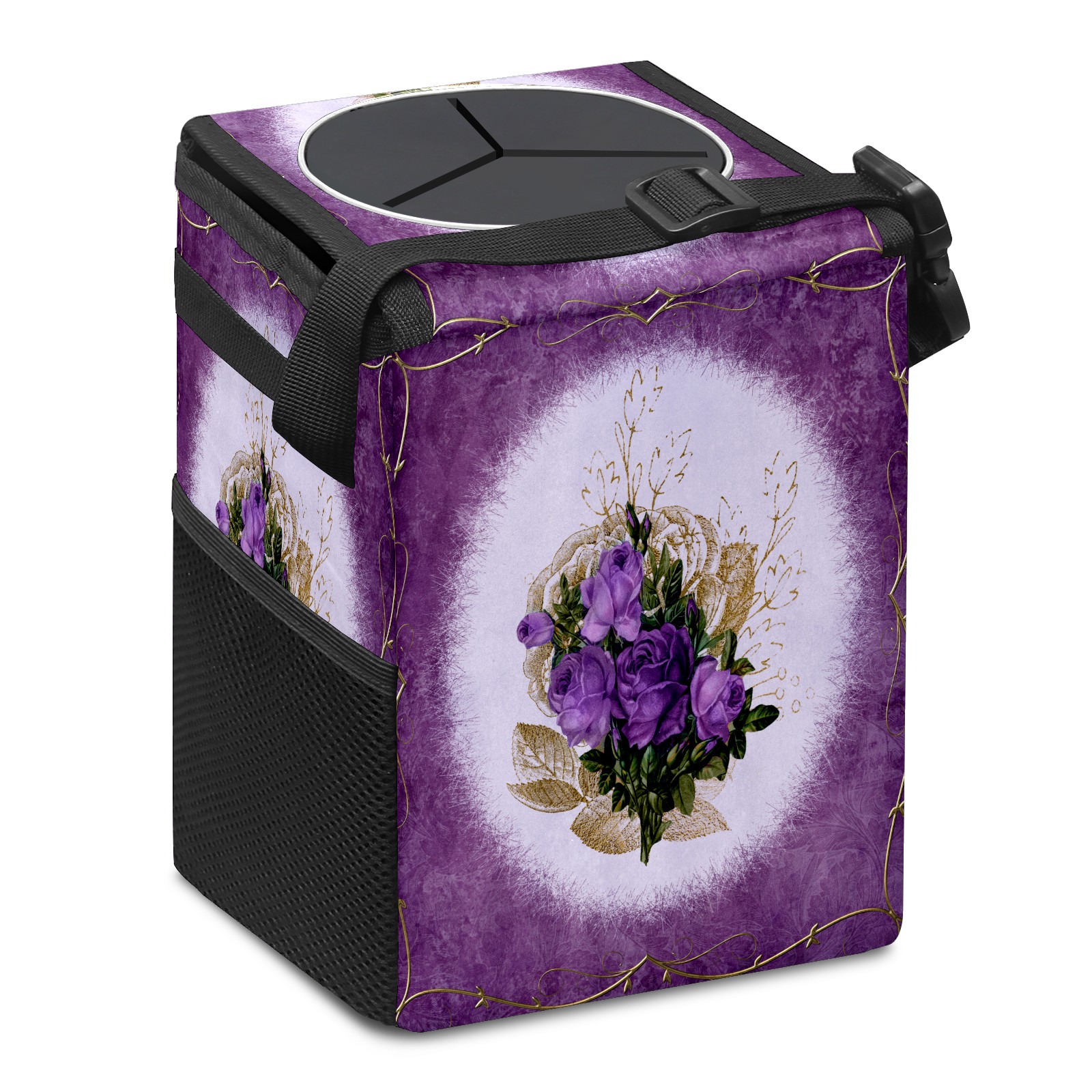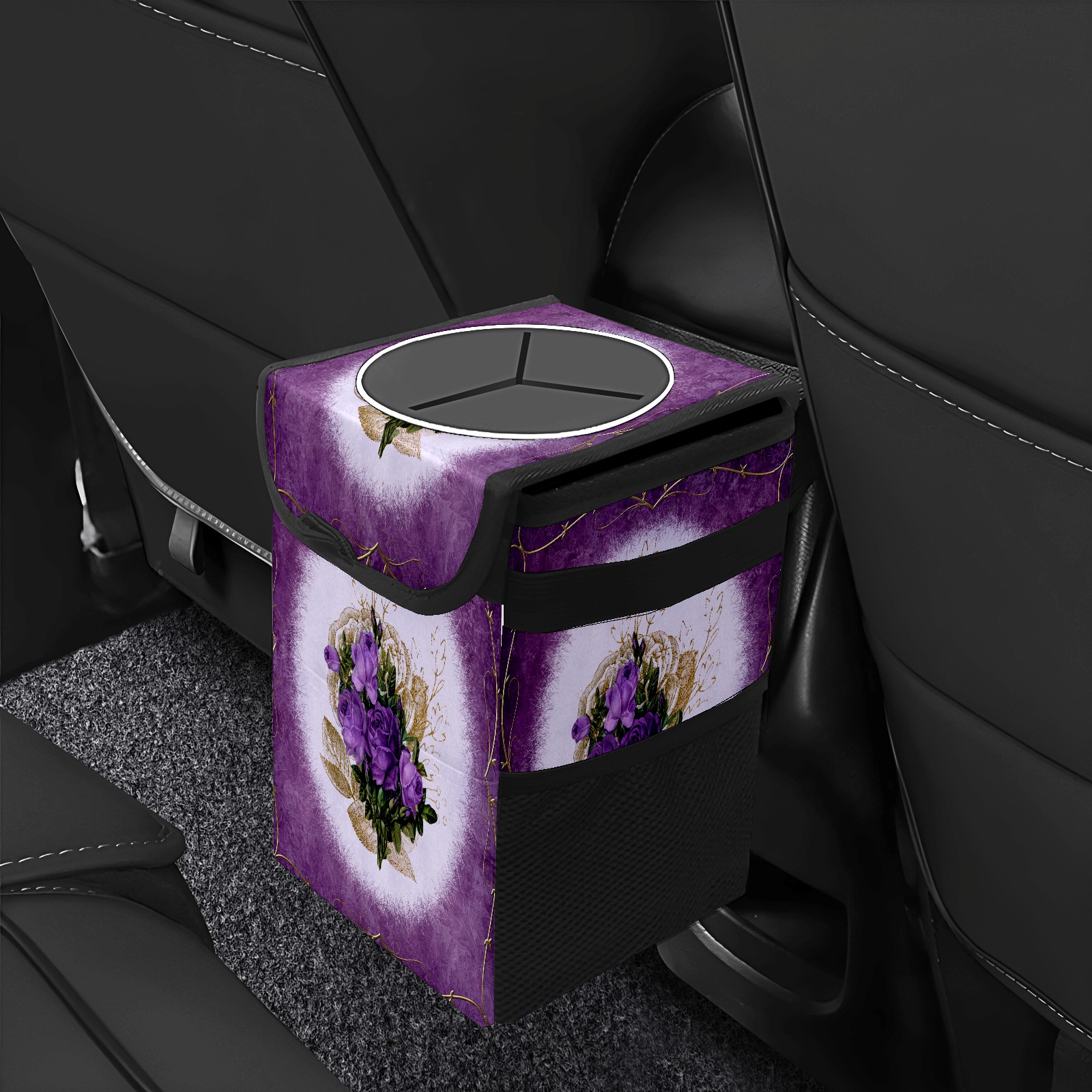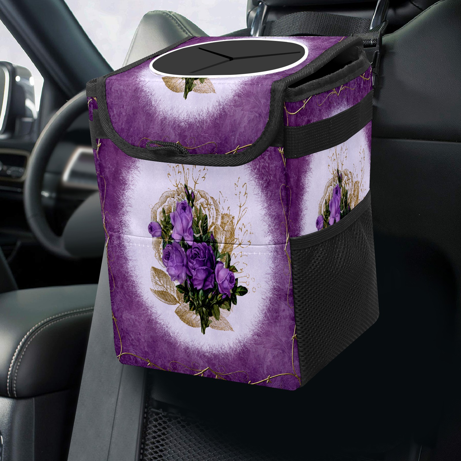 Car Garbage Can — Multi-functional, Lightweight Portable, Reusable Vehicle Trash Can, Waterproof with Sufficient Storage Capacity Vintage Purple Floral