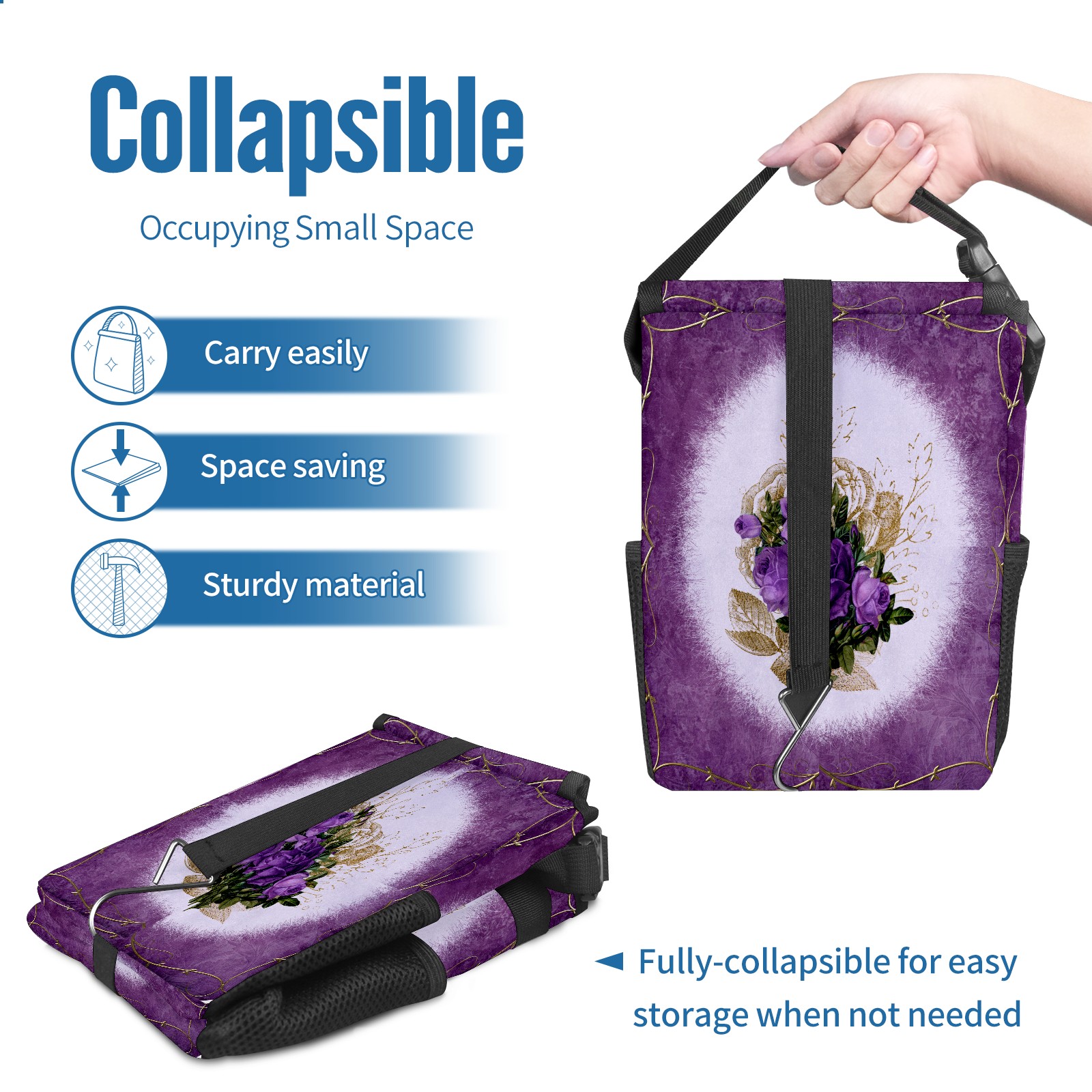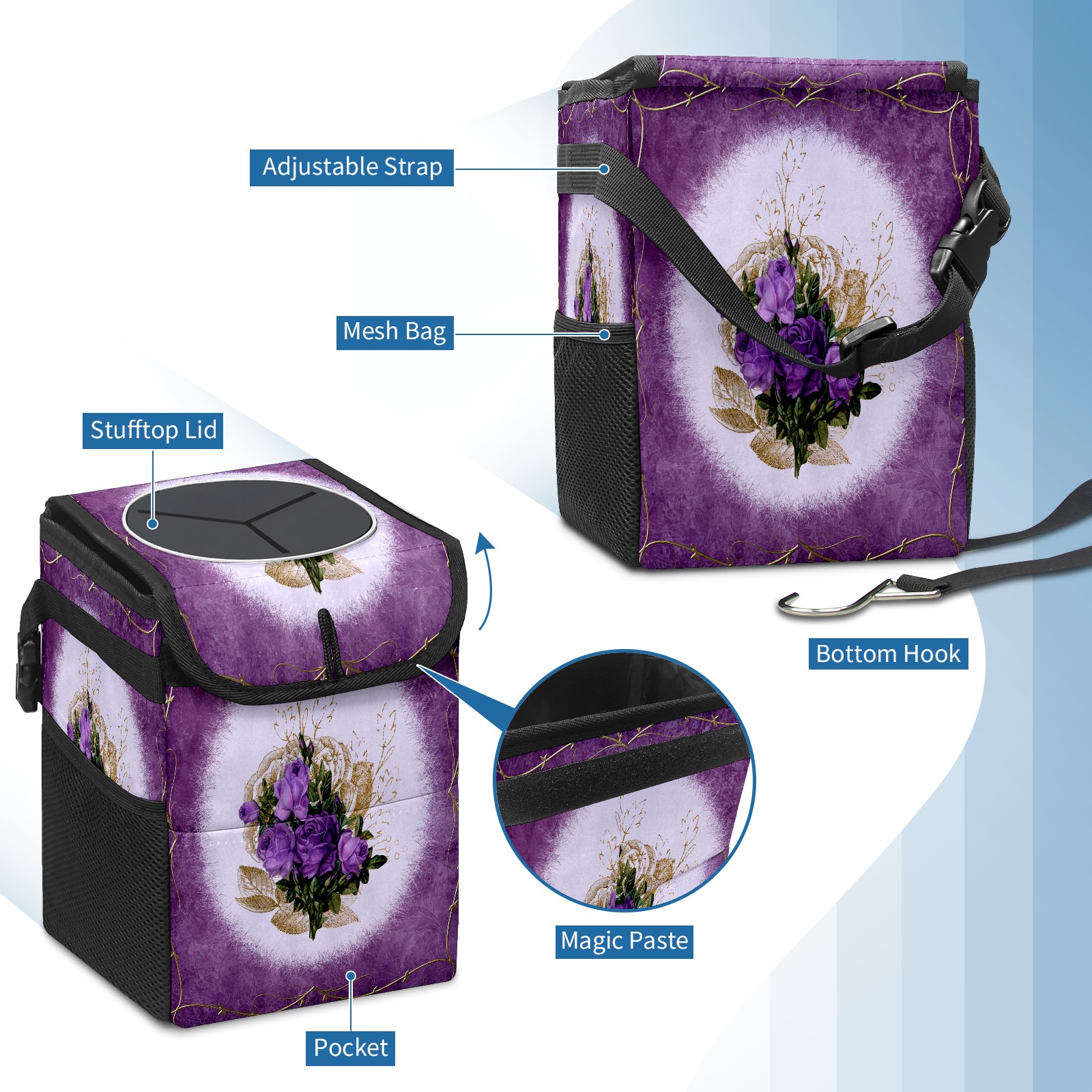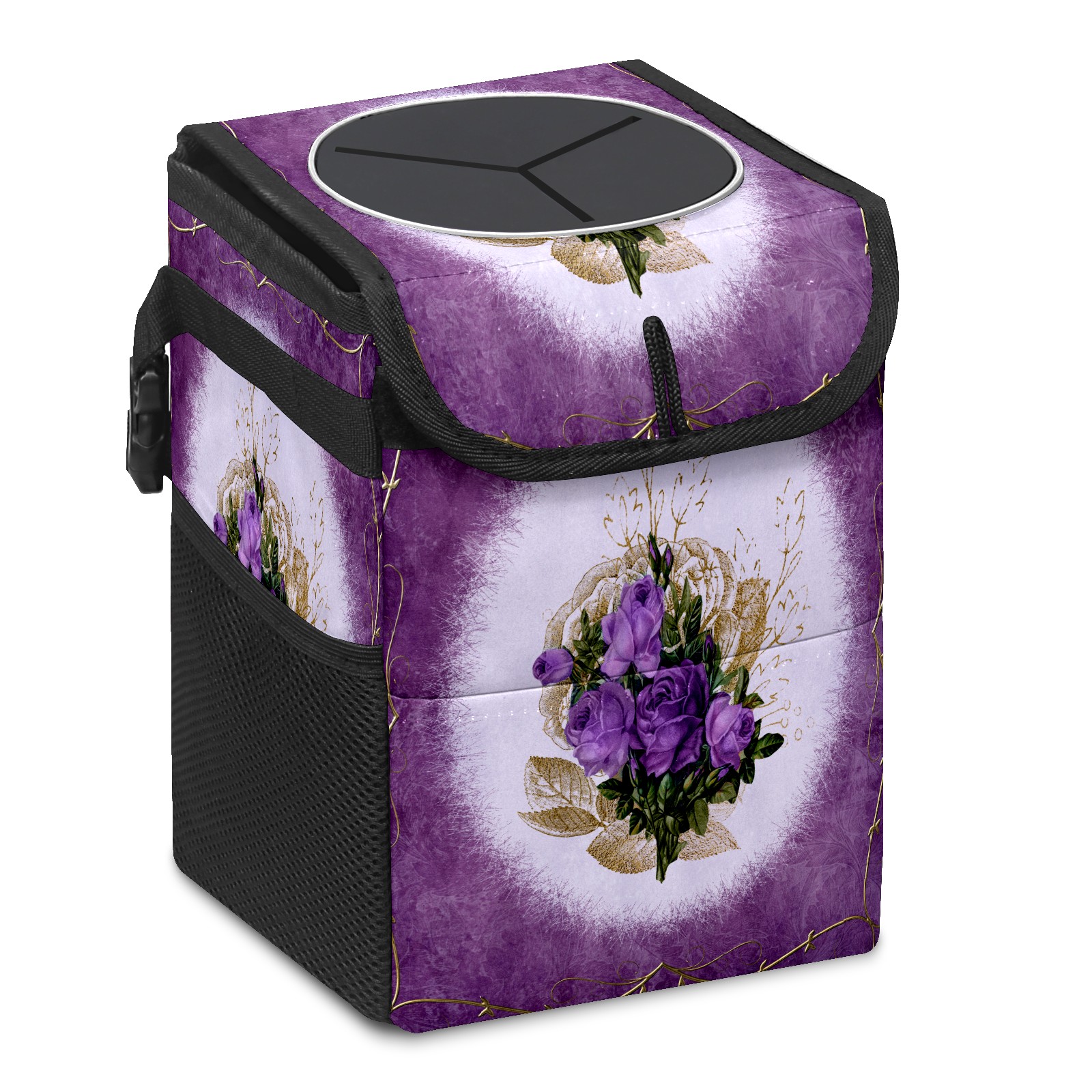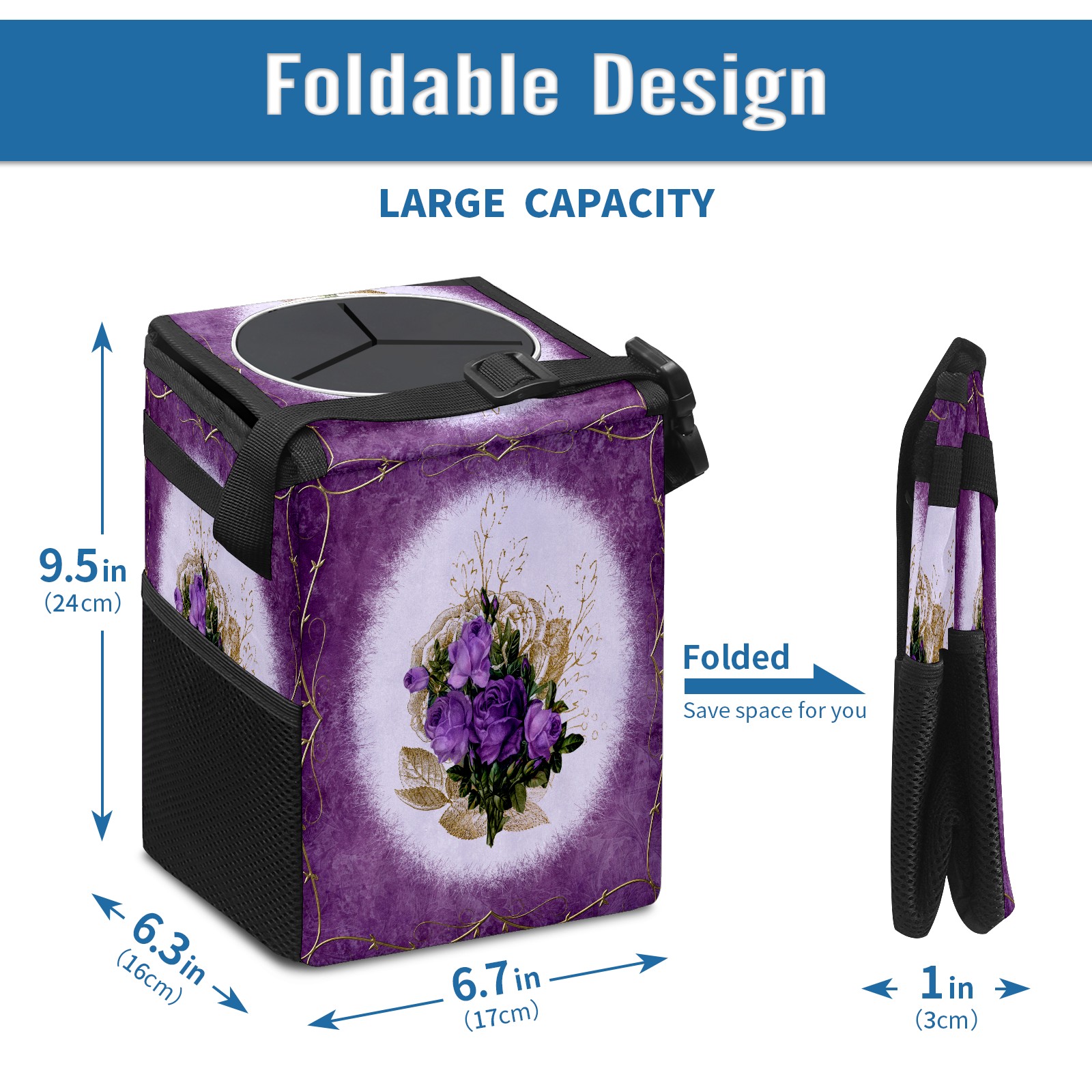 Car Garbage Can — Multi-functional, Lightweight Portable, Reusable Vehicle Trash Can, Waterproof with Sufficient Storage Capacity Vintage Purple Floral