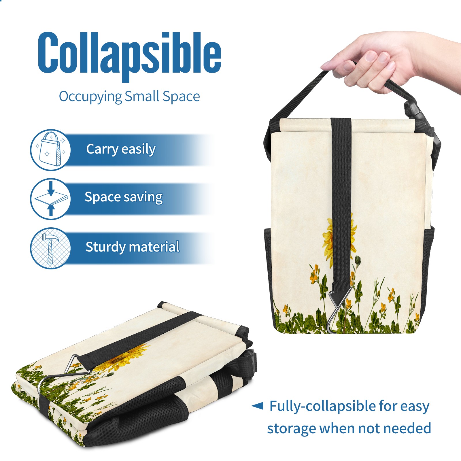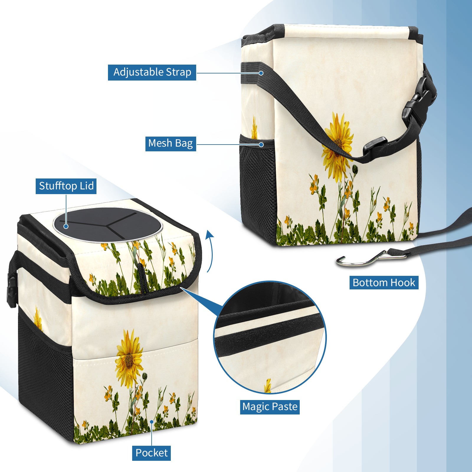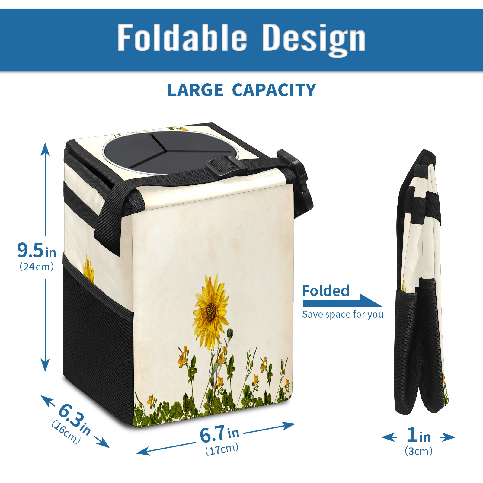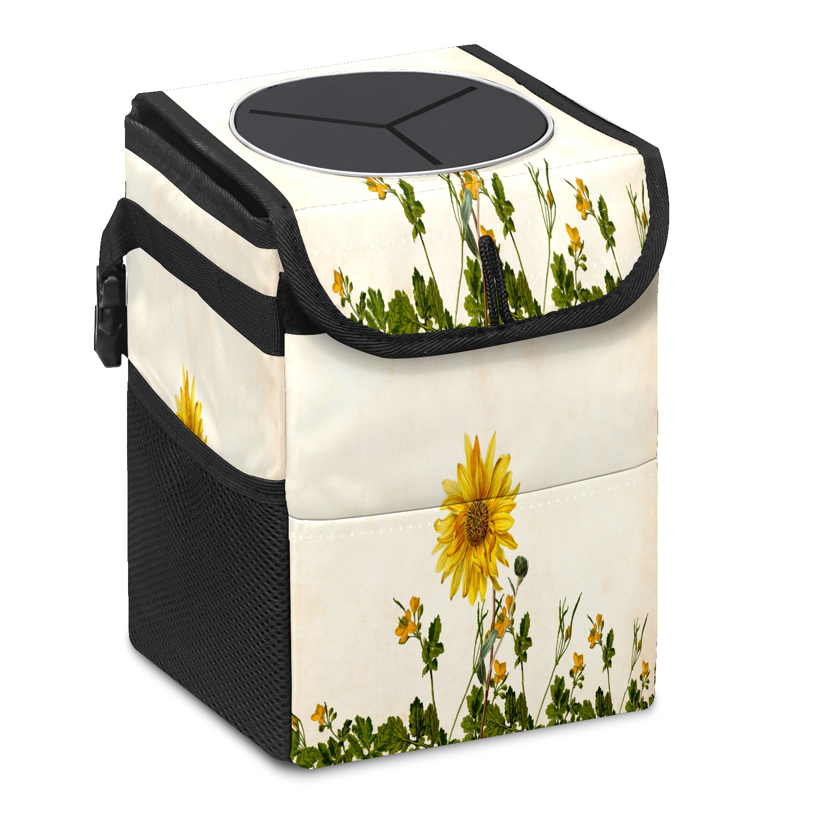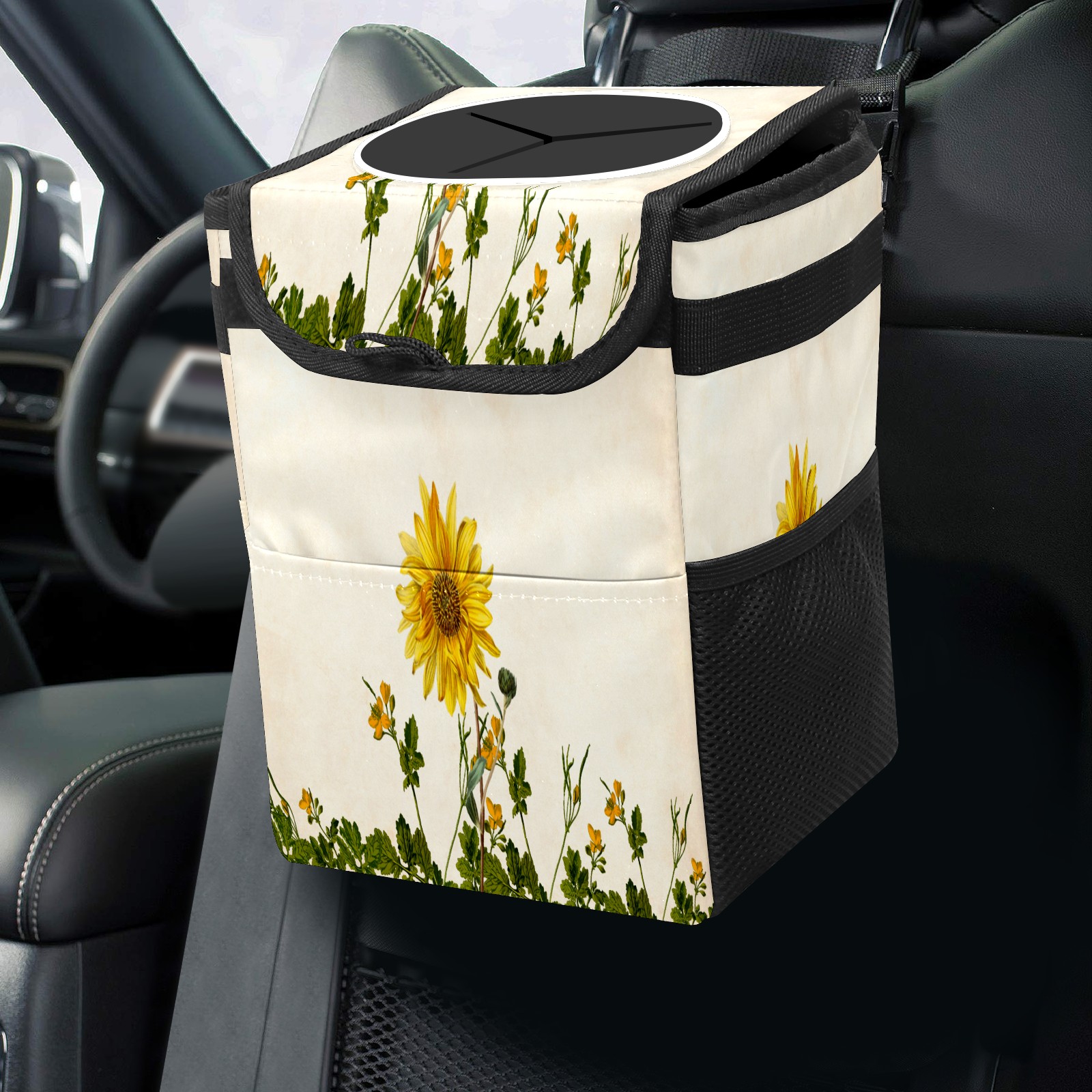 Car Garbage Can — Multi-functional, Lightweight Portable, Reusable Vehicle Trash Can, Waterproof with Sufficient Storage Capacity Sunflower Tropical Floral