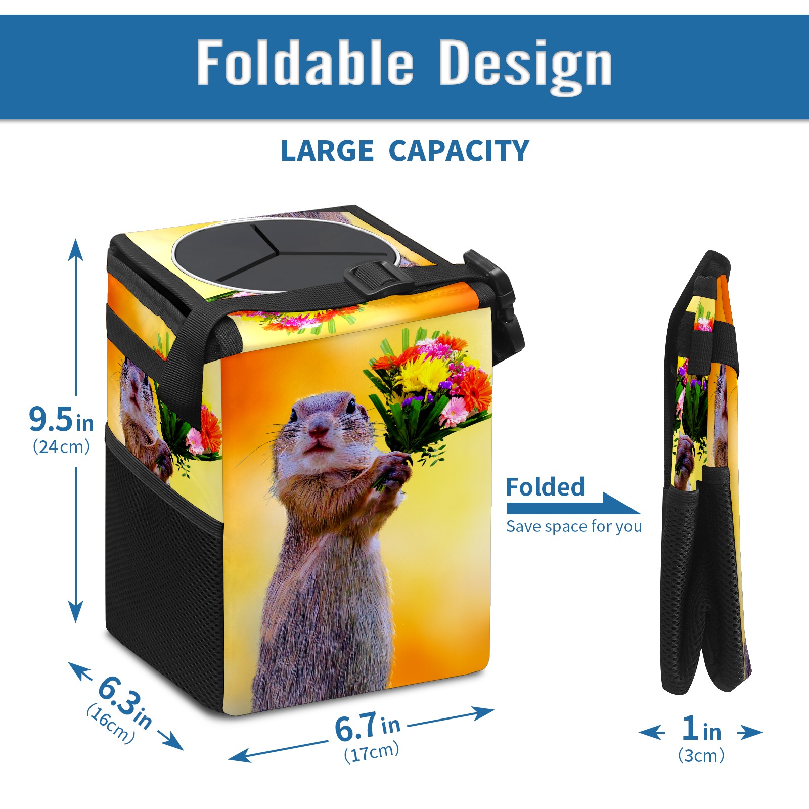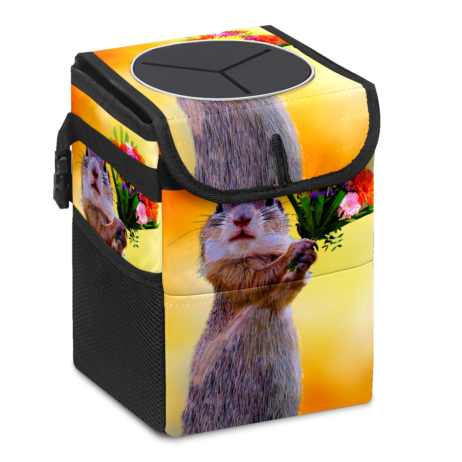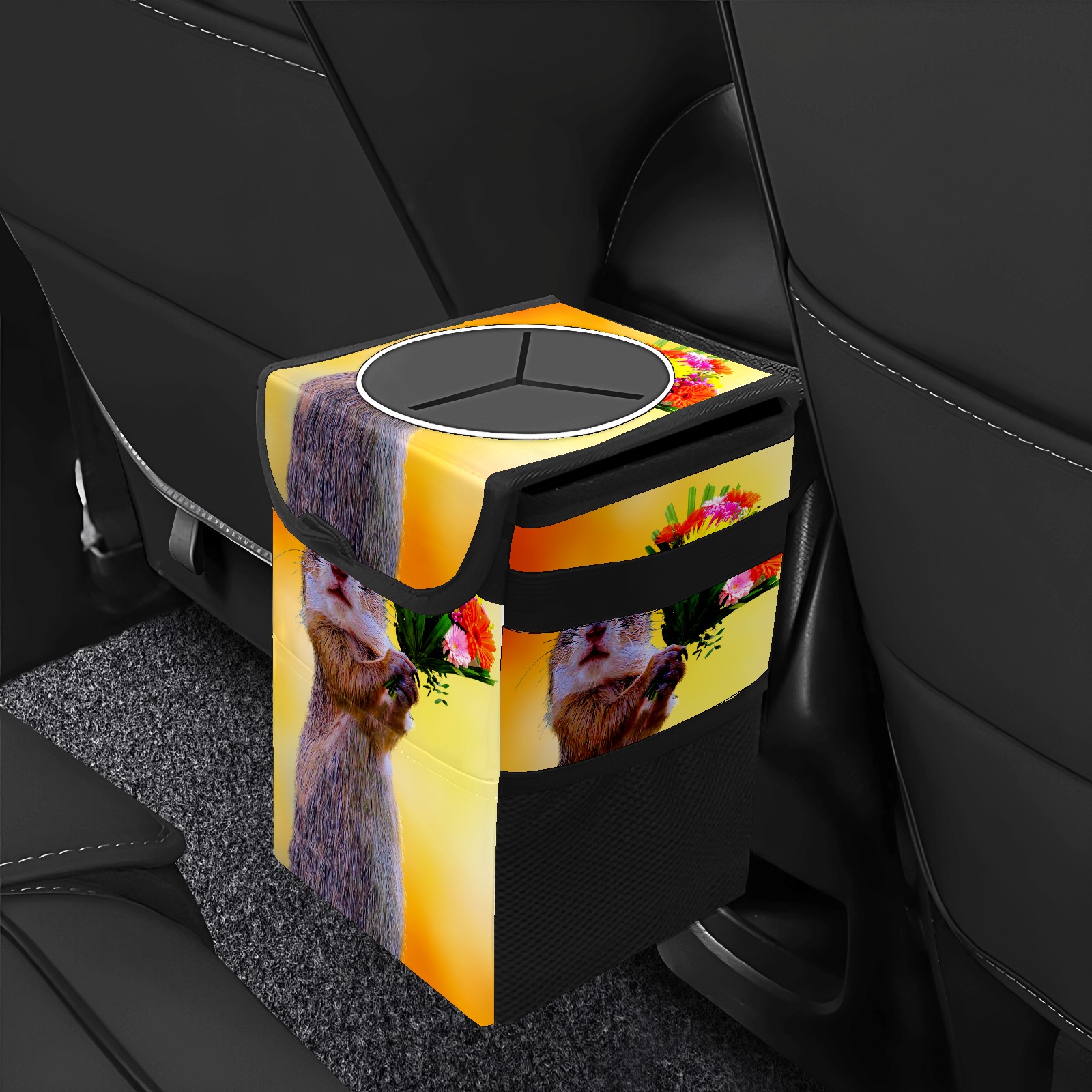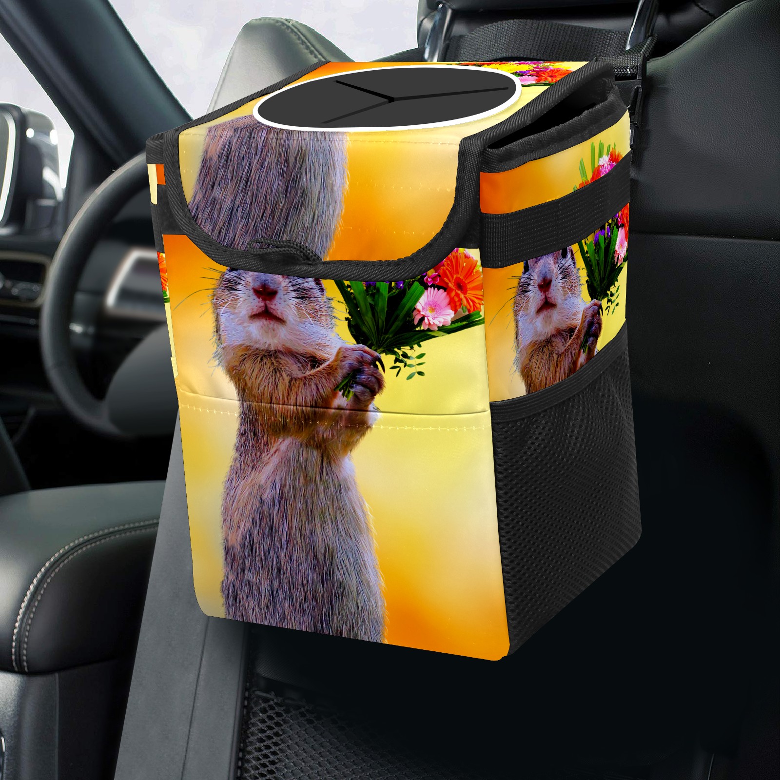 Car Garbage Can — Multi-functional, Lightweight Portable, Reusable Vehicle Trash Can, Waterproof with Sufficient Storage Capacity Squirrel And Flowers Bloom