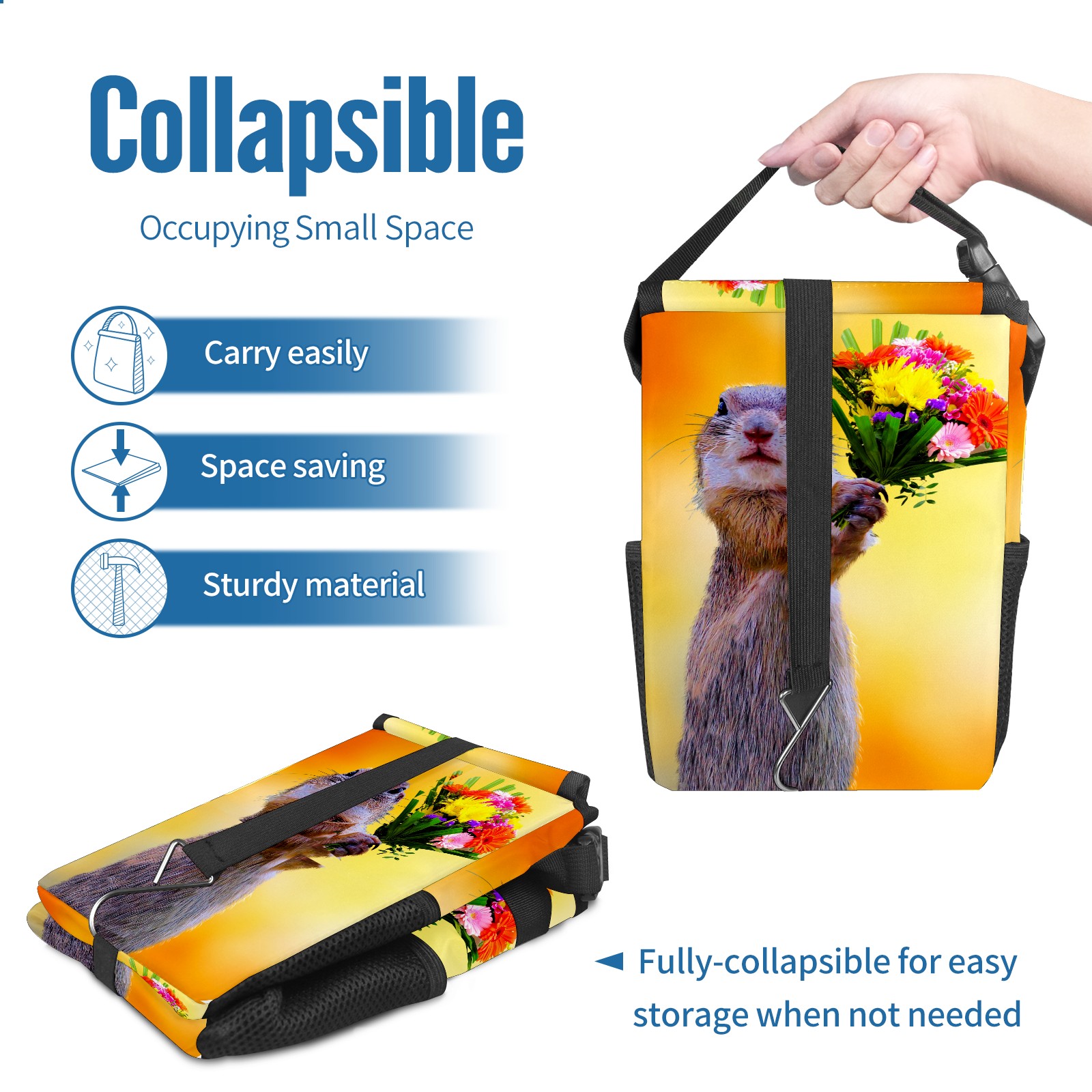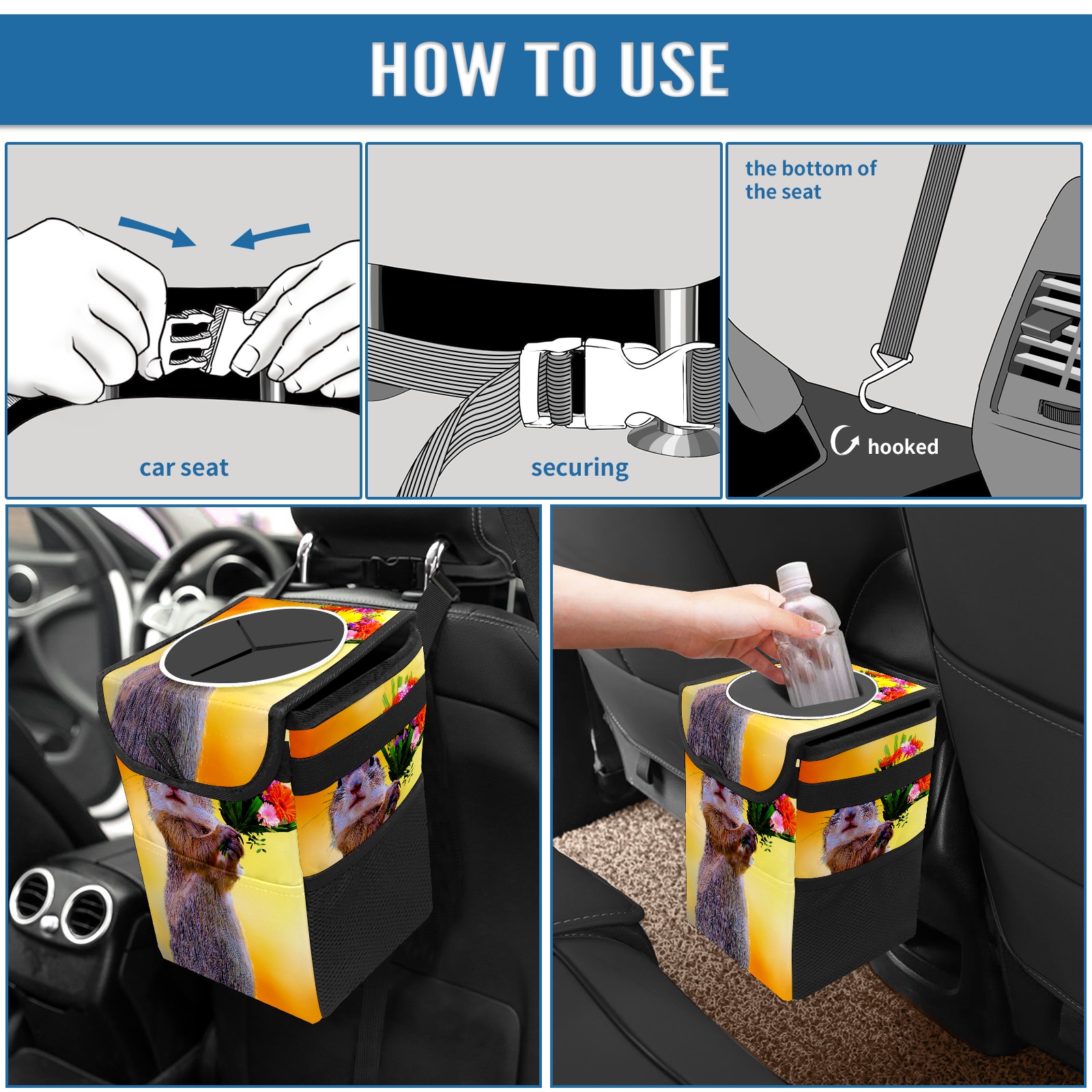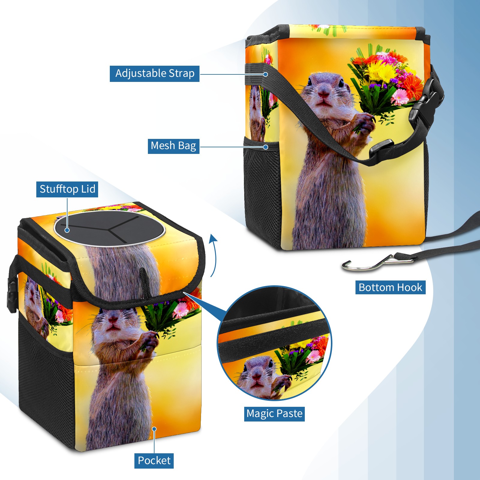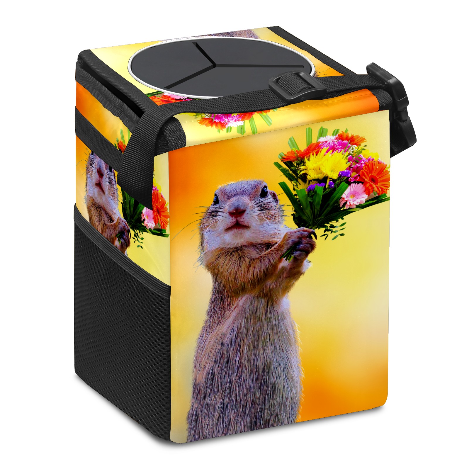 Car Garbage Can — Multi-functional, Lightweight Portable, Reusable Vehicle Trash Can, Waterproof with Sufficient Storage Capacity Squirrel And Flowers Bloom