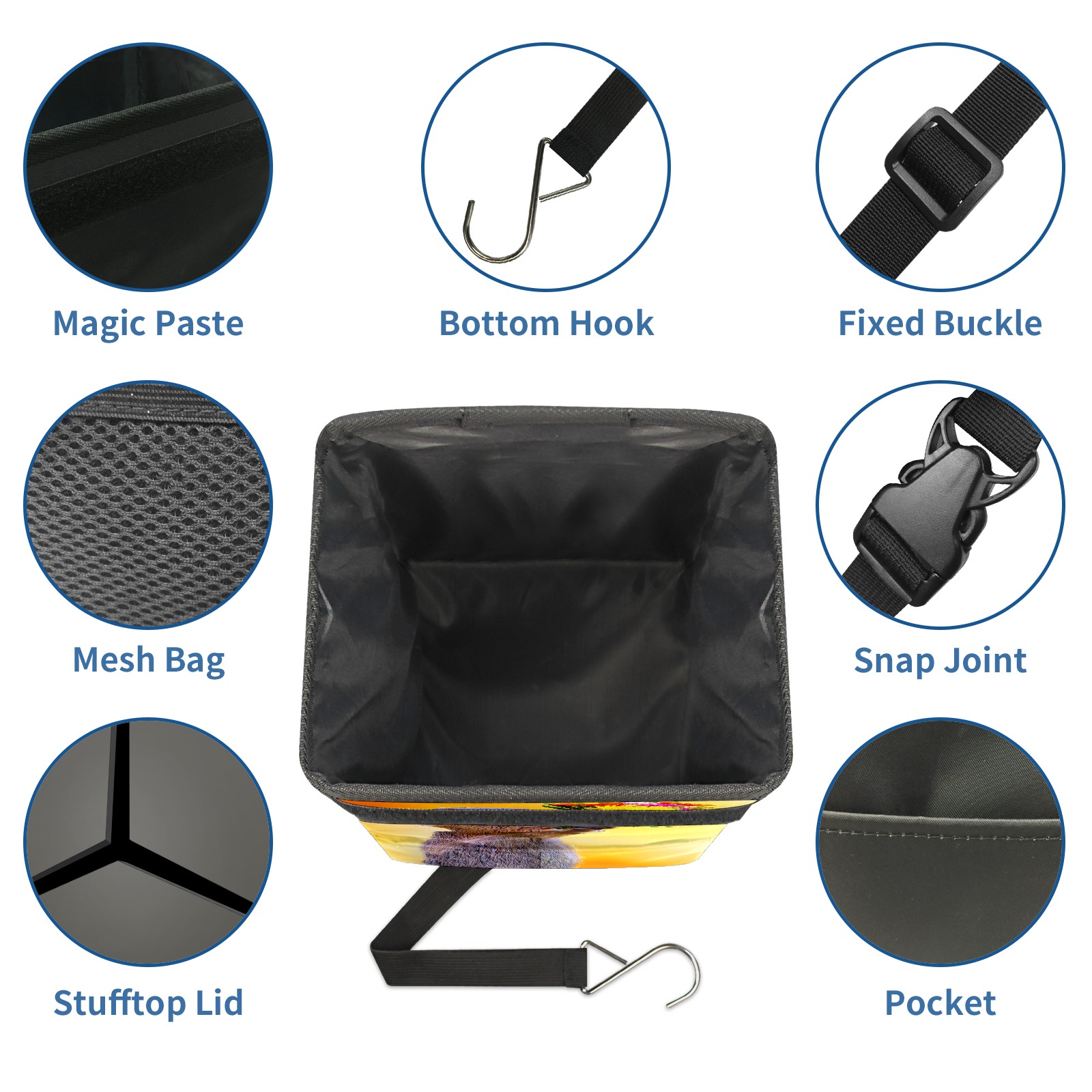 • <p>Keep your car neat with this practical car trash can—built for durability, versatility, and on-the-go convenience! Crafted from quality twill fabric with a waterproof lining, it prevents leaks, keeping seats/floors clean. Clean easily: empty directly or secure a disposable bag with side clips. Adjustable pull cord fits floor, seat, or headrest. 9.5x6.3x6.7 inches, ample space for daily trash, folds flat for storage. More than a trash can, it doubles as a storage bag for cups, toys, docs, and small gadgets—must-have car interior accessory. Installs in seconds on seats, console, or gear shift; adjustable straps keep it stable, no slipping on bumpy roads. Perfect gift for new car owners!</p>