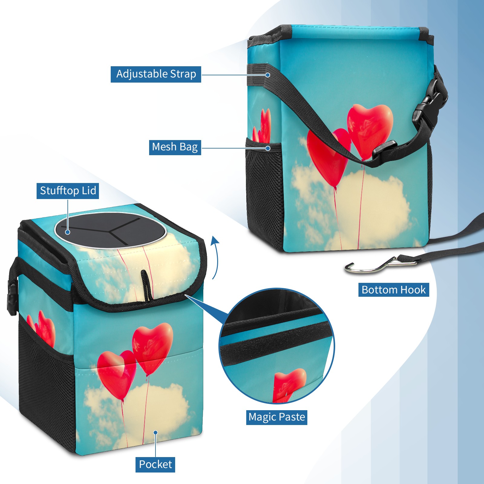 Car Garbage Can — Multi-functional, Lightweight Portable, Reusable Vehicle Trash Can, Waterproof with Sufficient Storage Capacity Red Heart Balloon