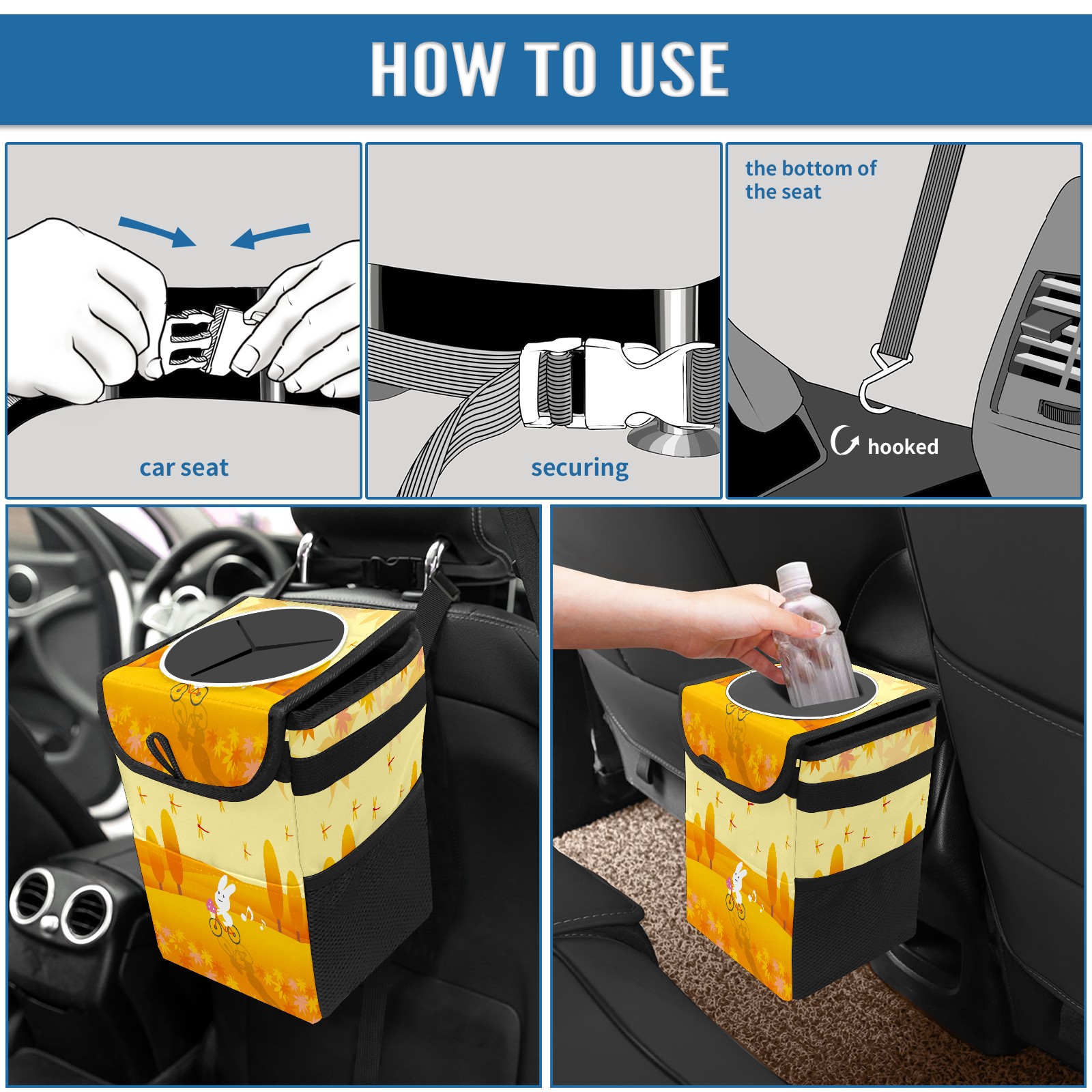 Car Garbage Can — Multi-functional, Lightweight Portable, Reusable Vehicle Trash Can, Waterproof with Sufficient Storage Capacity Cute Rabbit Dragonfly