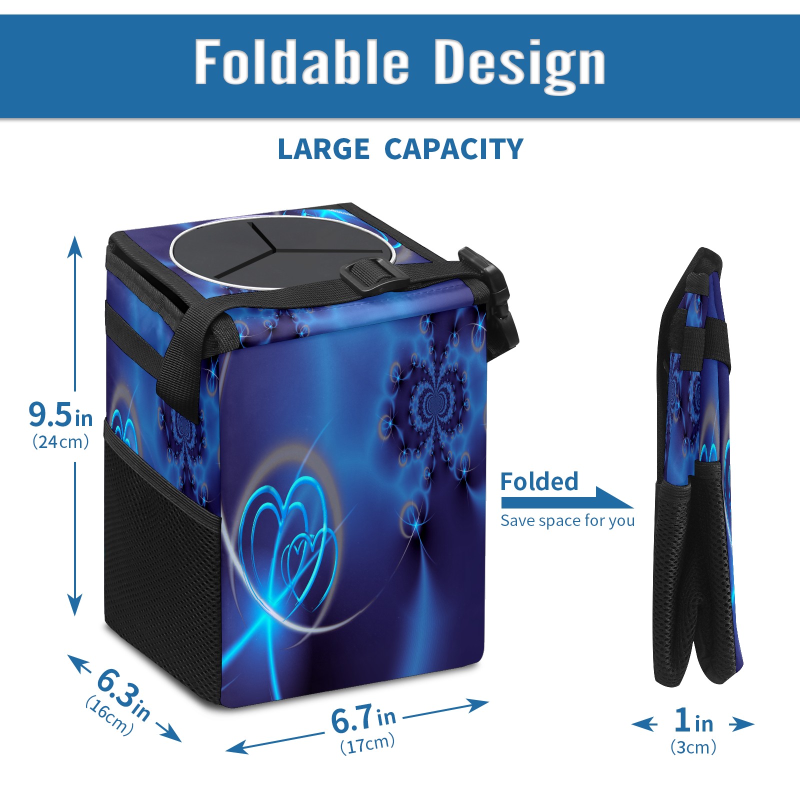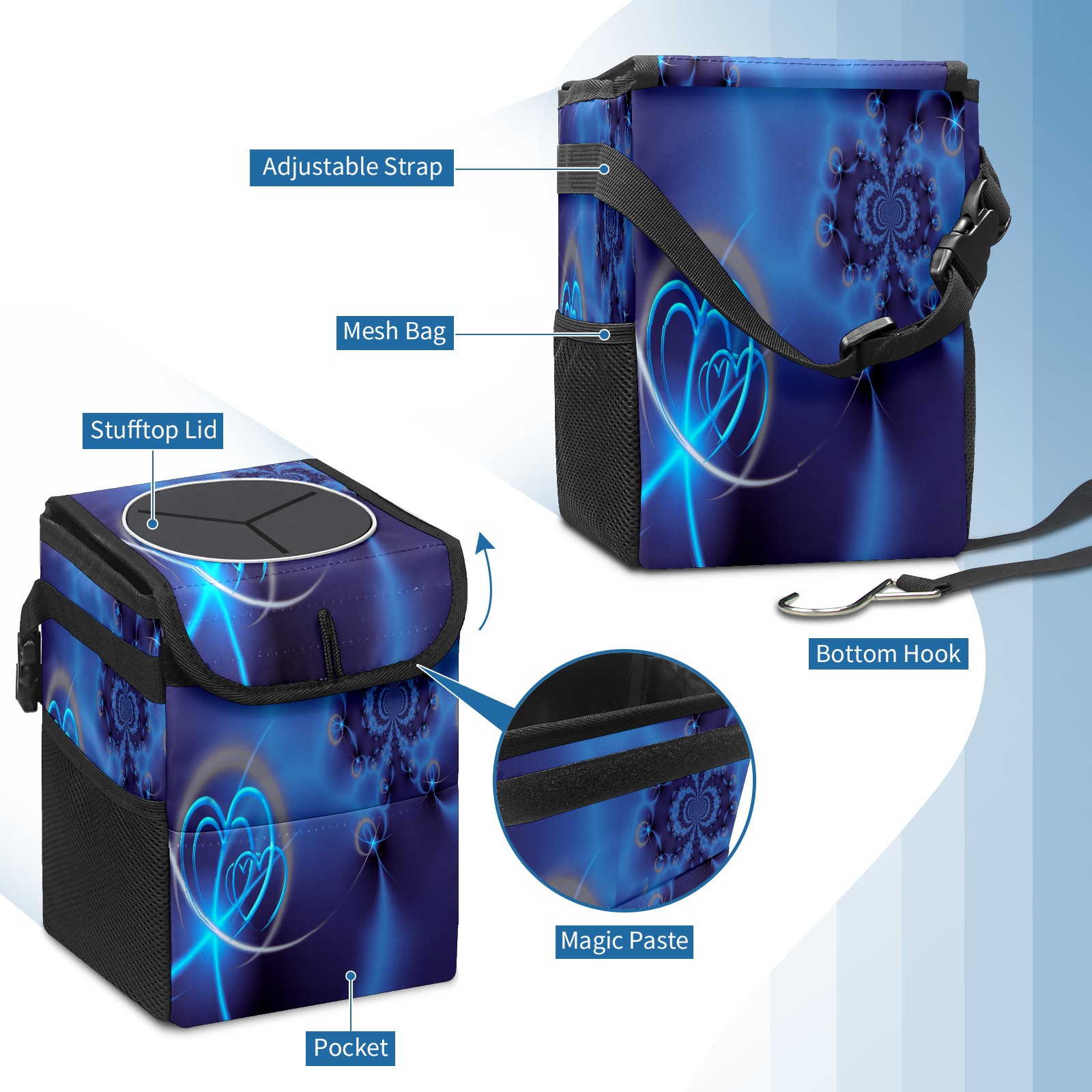 Car Garbage Can — Multi-functional, Lightweight Portable, Reusable Vehicle Trash Can, Waterproof with Sufficient Storage Capacity Purple Fractal Abstract Heart