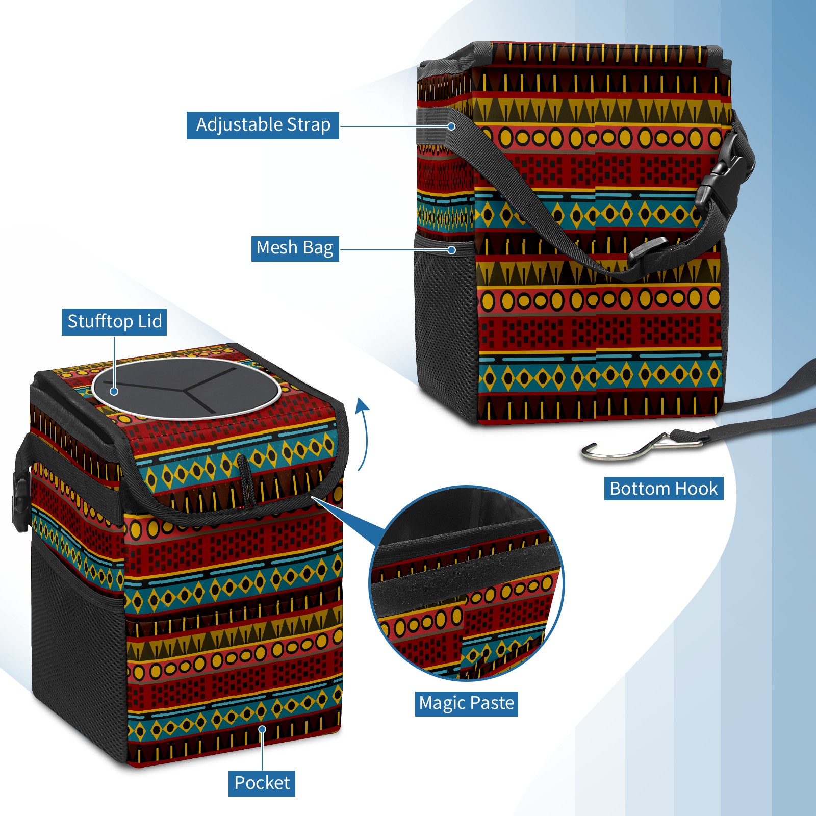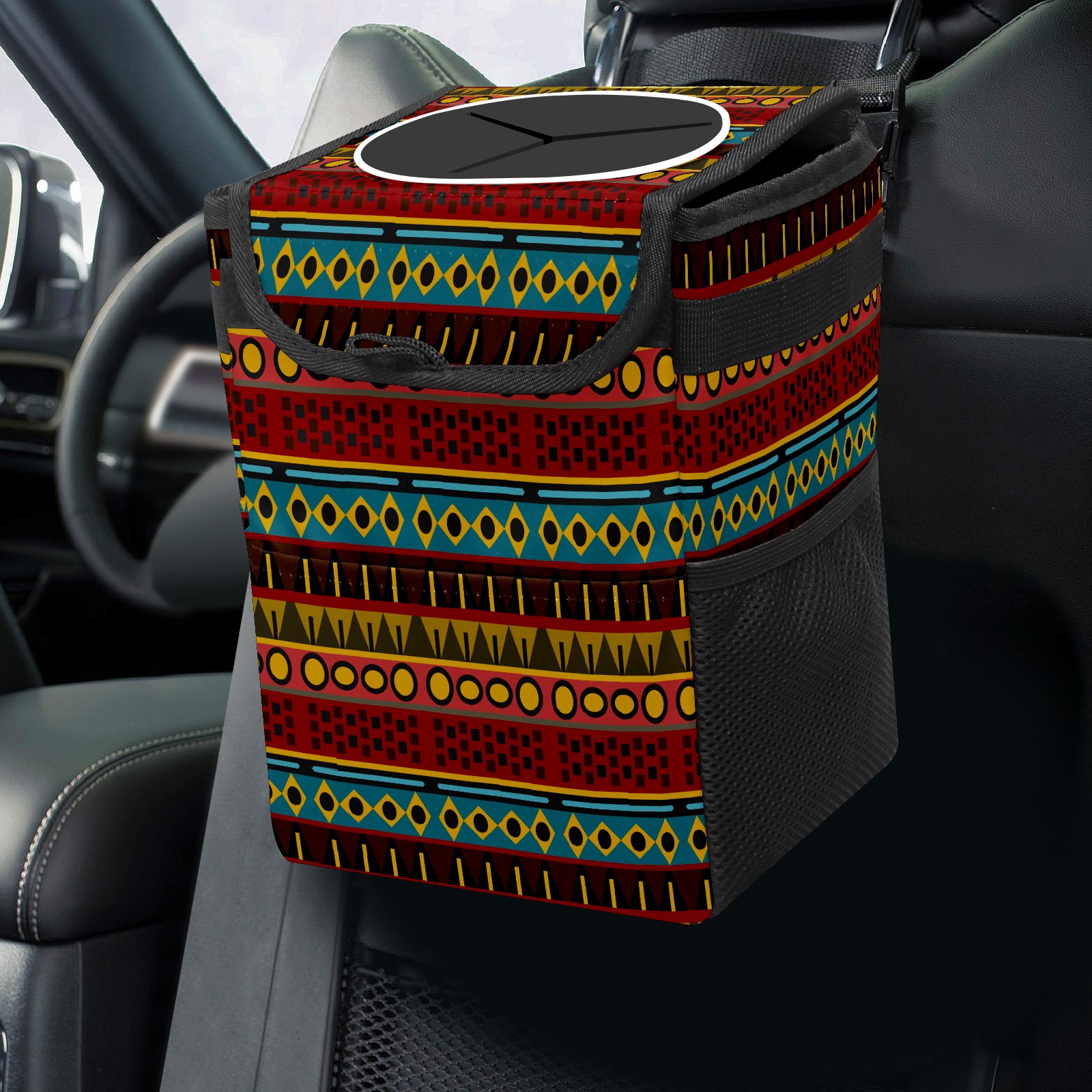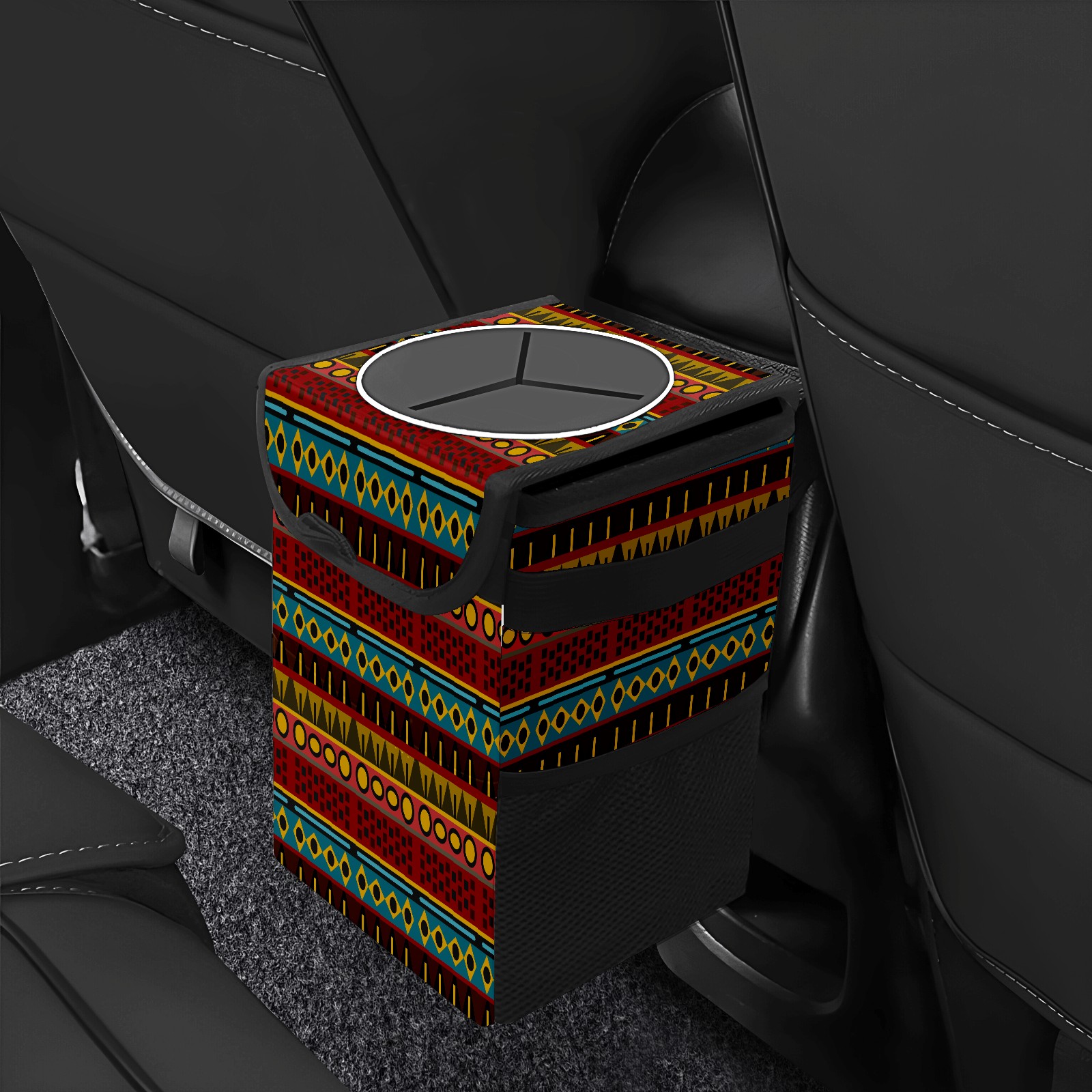 Car Garbage Can — Multi-functional, Lightweight Portable, Reusable Vehicle Trash Can, Waterproof with Sufficient Storage Capacity Native Tribal Floral