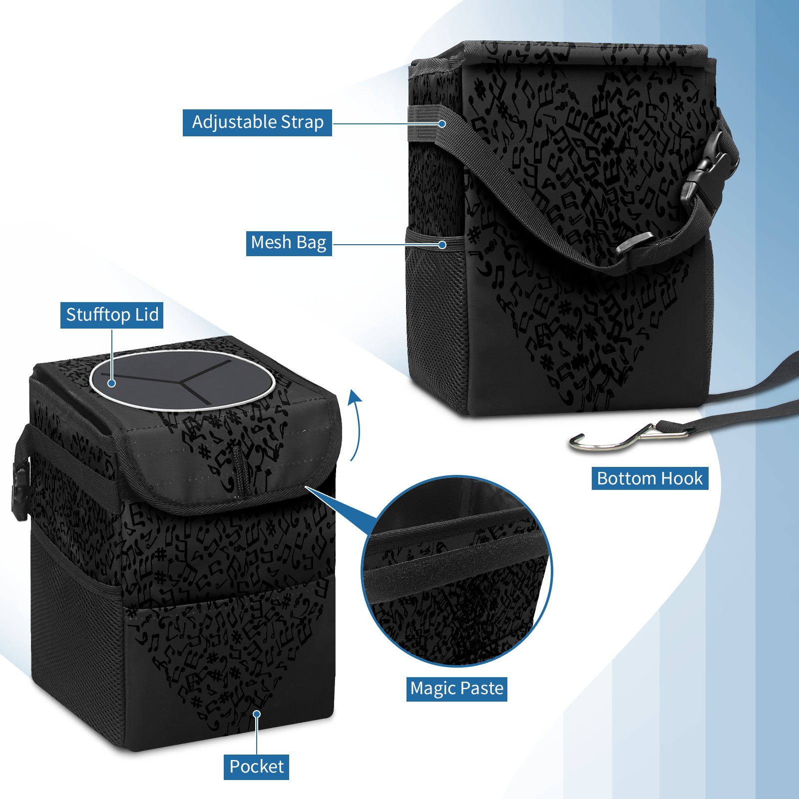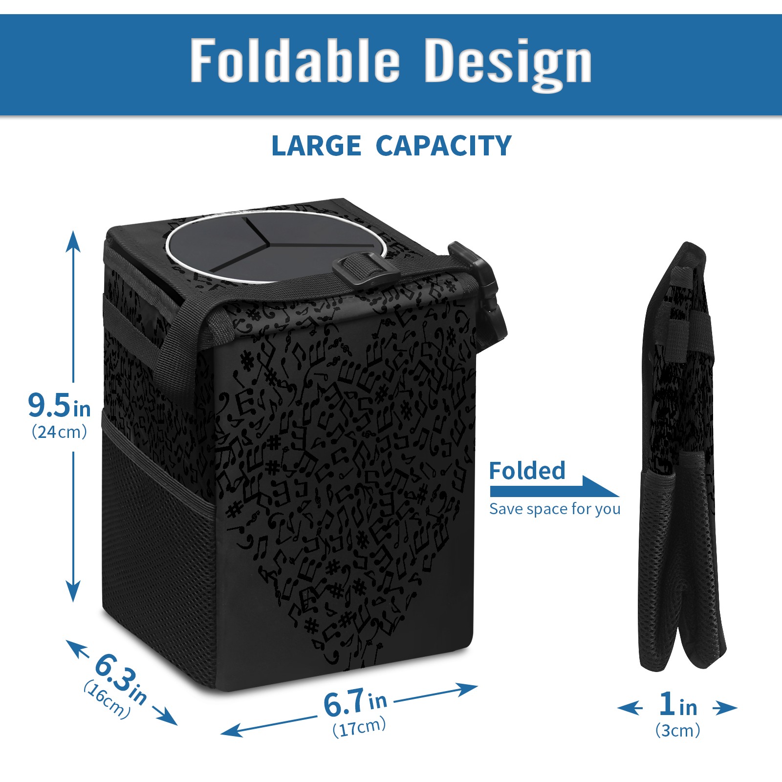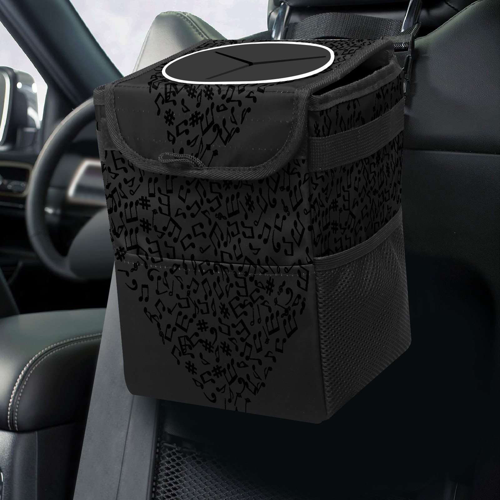 Car Garbage Can — Multi-functional, Lightweight Portable, Reusable Vehicle Trash Can, Waterproof with Sufficient Storage Capacity Music Heart Art