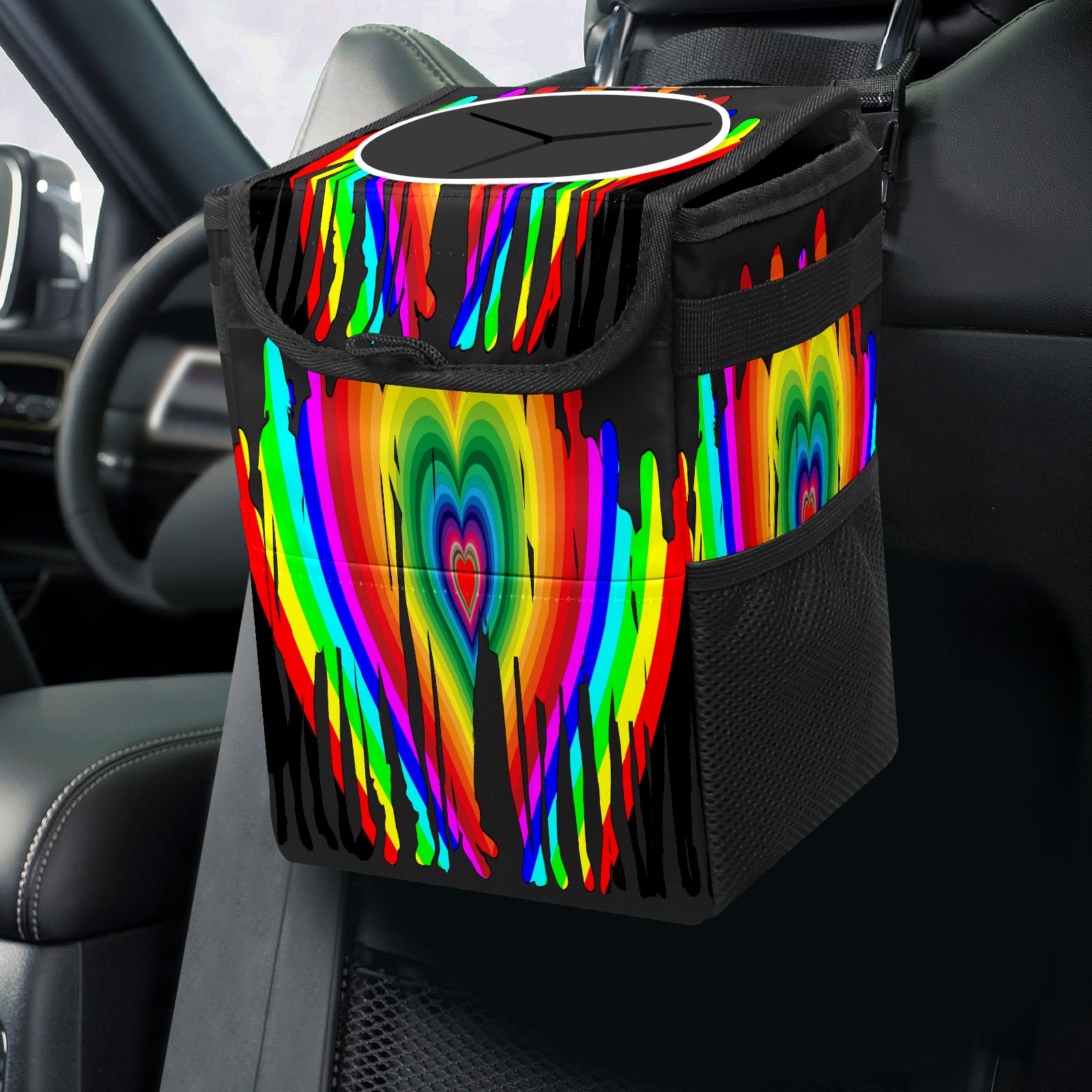 Car Garbage Can — Multi-functional, Lightweight Portable, Reusable Vehicle Trash Can, Waterproof with Sufficient Storage Capacity Love Family Rainbow